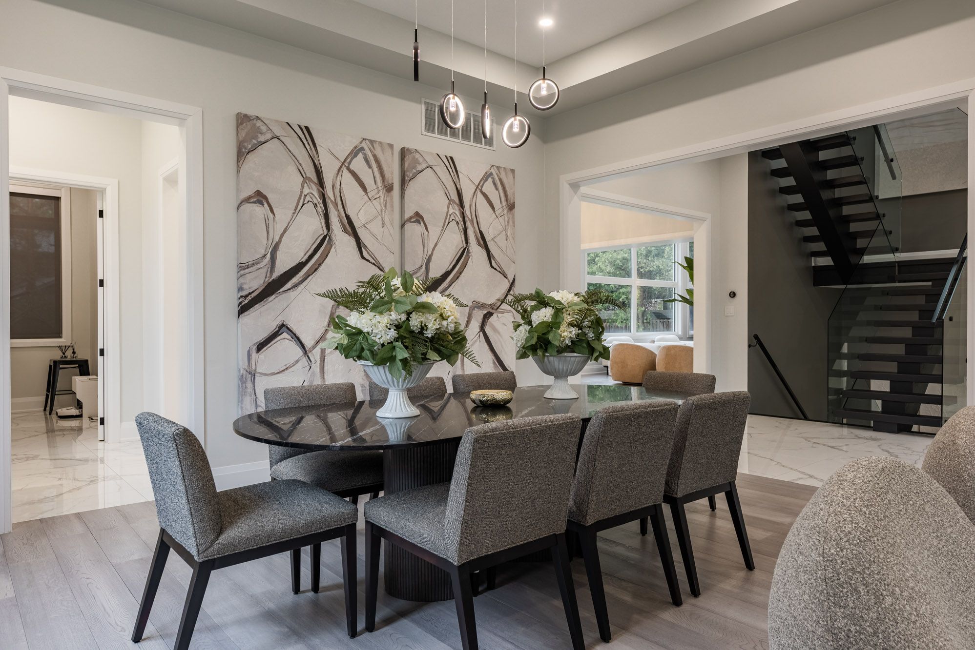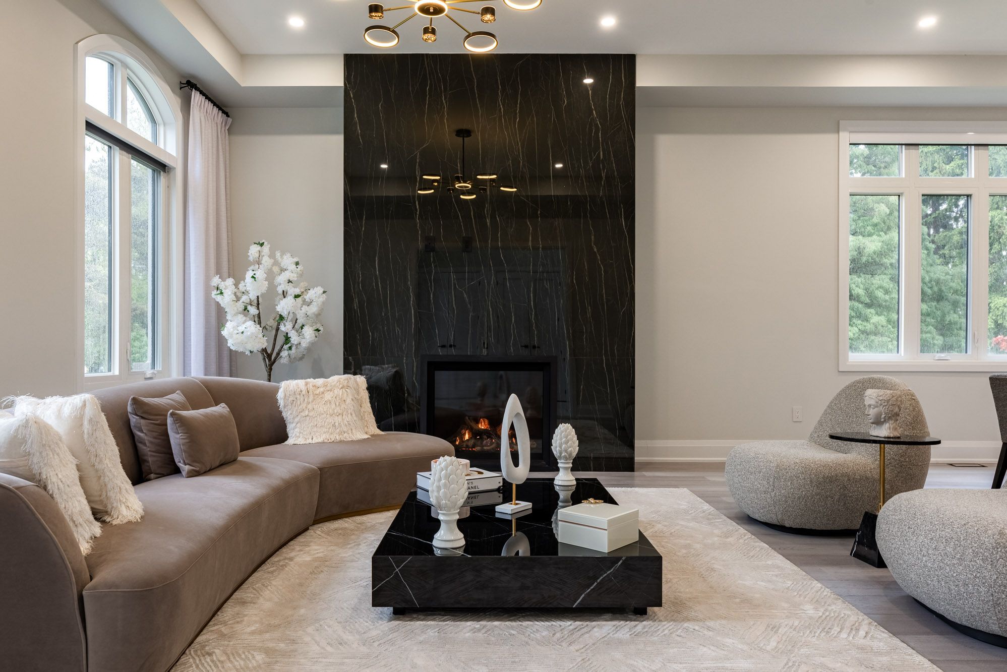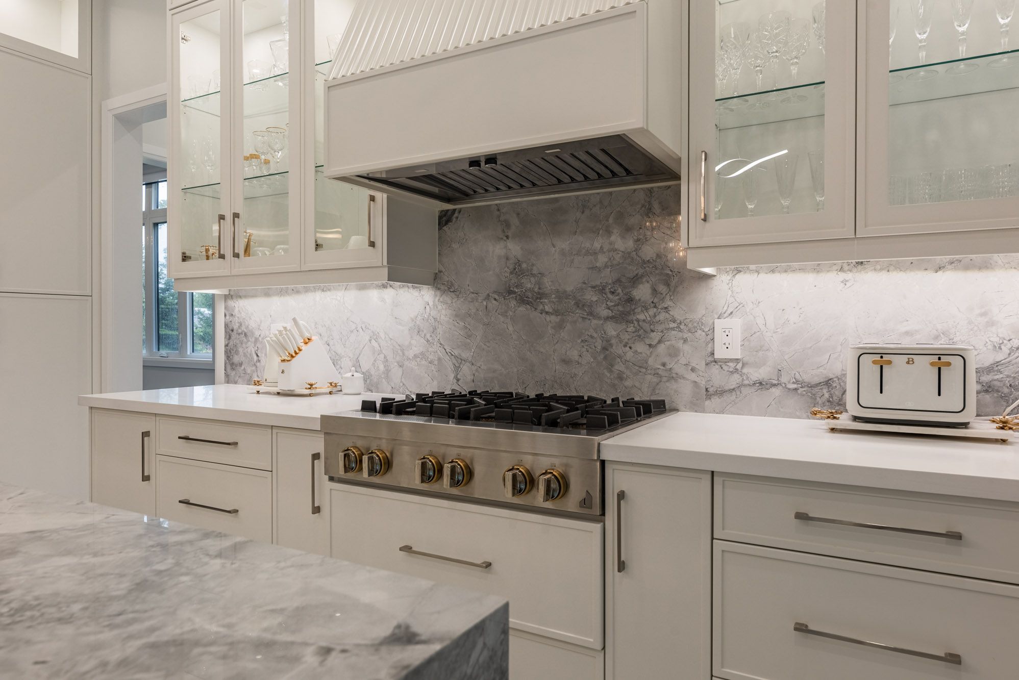 • Chef-inspired kitchen with high-end appliances and waterfall island.