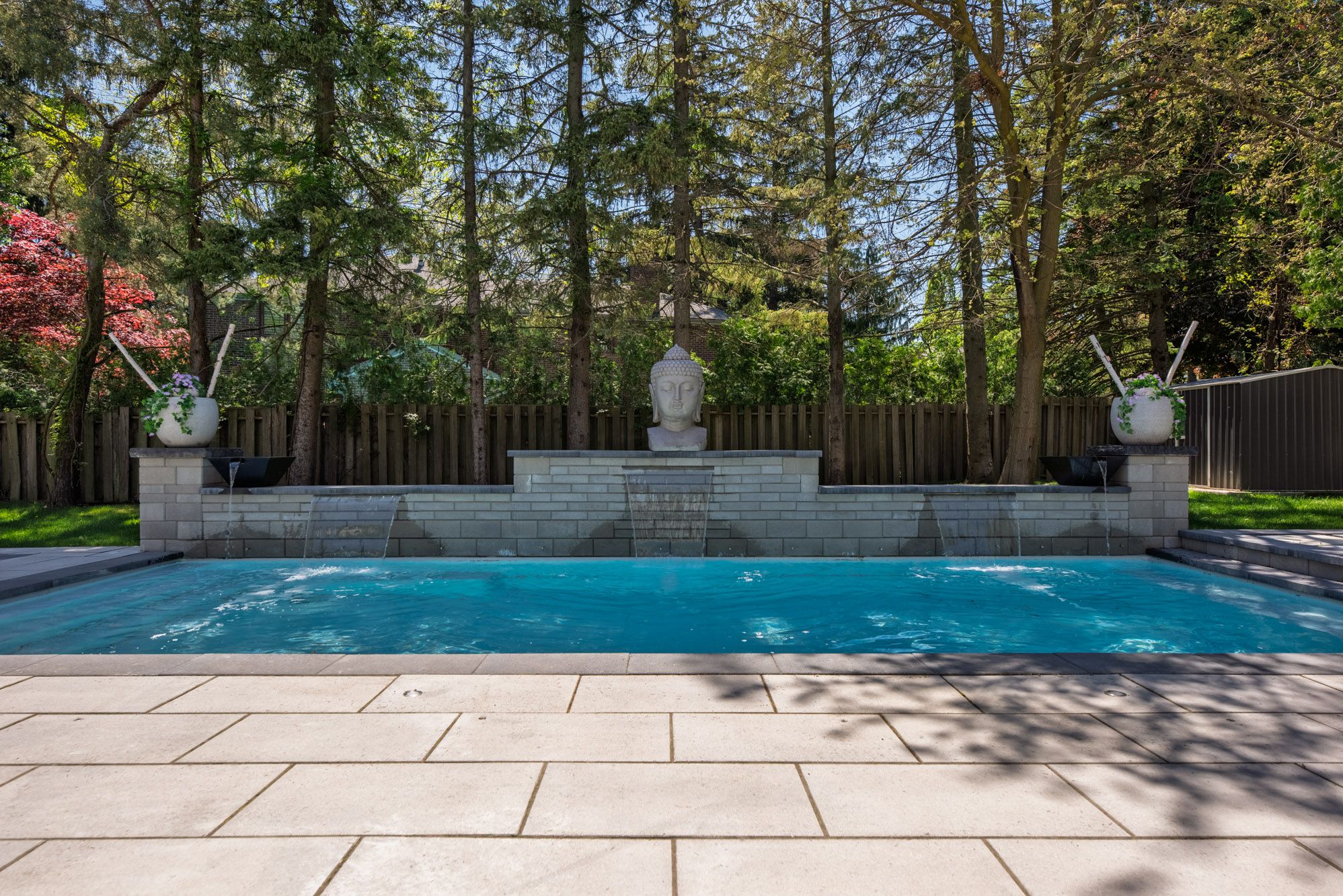 • Outdoor space features a saltwater pool, hot tub, and natural stone patio.