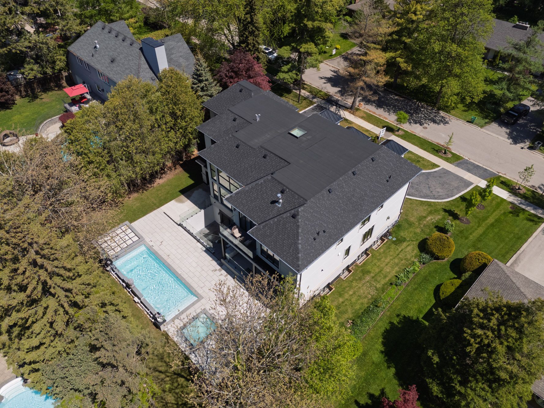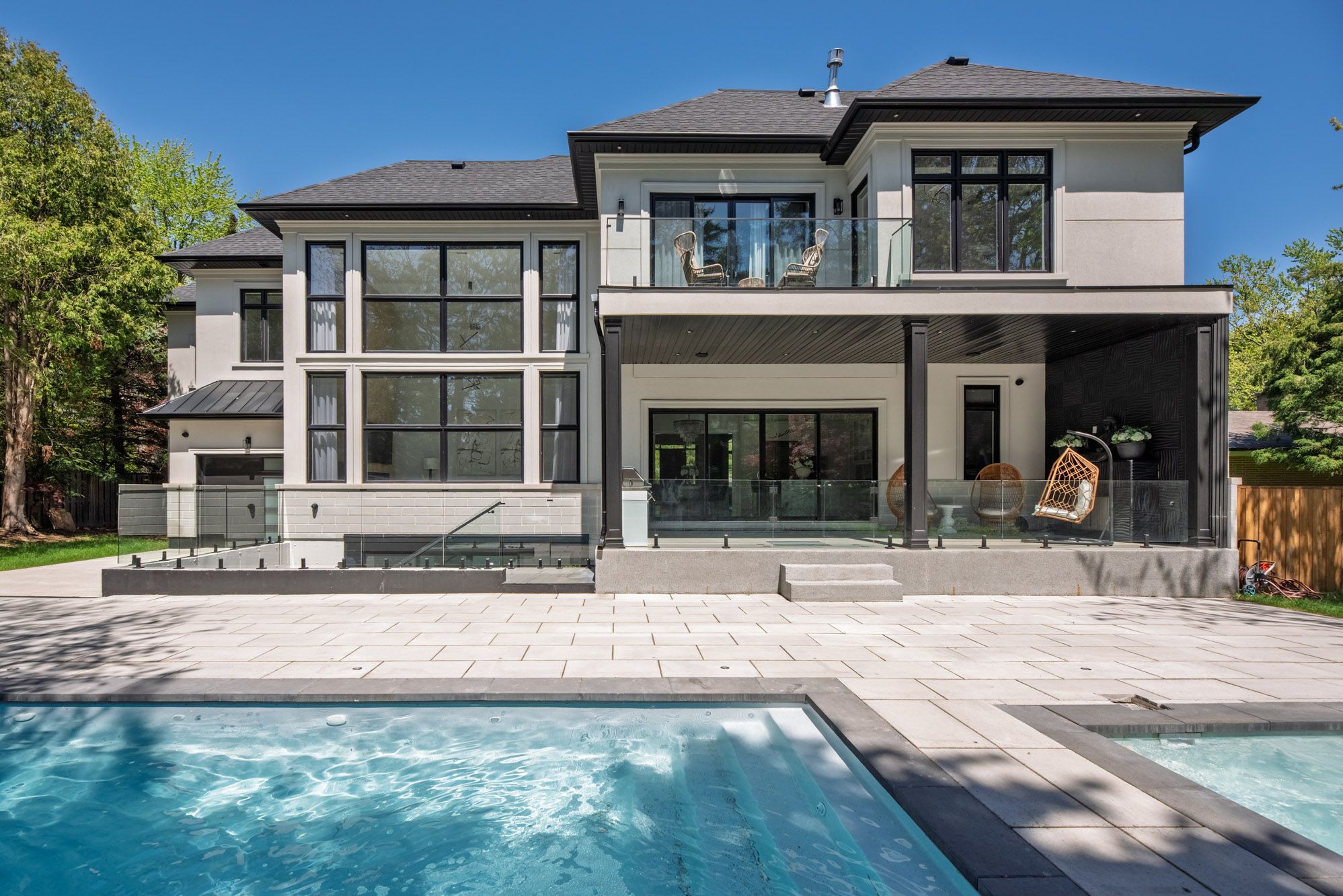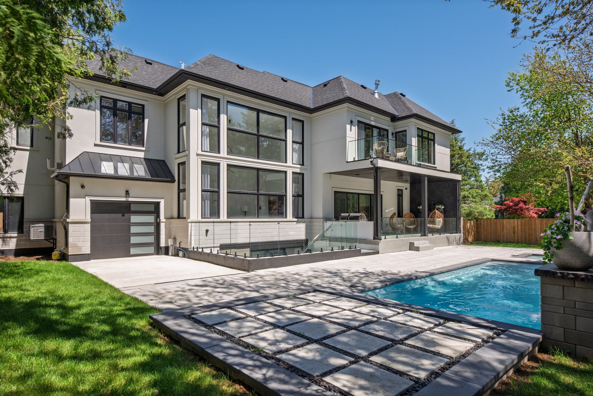 This exquisite custom-built estate in mississauga's sheridan neighbourhood offers over 8,000 sq. Ft. Of refined living space, combining elegance, comfort, and modern convenience. With 6+1 bedrooms and 7 bathrooms, this home is designed for upscale family living and grand entertaining. A dramatic foyer with 22-foot ceilings sets a striking first impression. The great room also features soaring ceilings and expansive windows that flood the space with natural light. The chef-inspired kitchen is equipped with high-end appliances, quartz countertops, a marble backsplash, and a stunning waterfall island opening to a breakfast area with walkout access to the landscaped backyard. Outdoor features include a saltwater in-ground pool, a hot tub, a natural stone patio, and built-in napoleon bbqs perfect for summer entertaining. The primary suite is a luxurious retreat with a gas fireplace, a balcony overlooking the backyard, and a spa-like six-piece ensuite. The finished lower level offers a home gym, a sauna, a wet bar, and a theatre with seating for ten. Additional highlights include a three-car garage, smart thermostat, integrated elevator, and professionally maintained landscaping. Ideally located near top schools, parks, and major highways, this luxury certified home is a rare offering in sheridan.