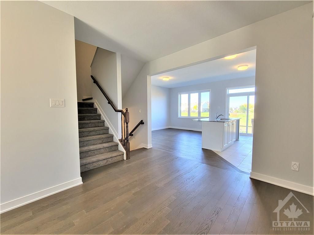 Welcome to 2112 winsome terrace, a cozy 3-bedroom townhouse situated in the sought-after jardin crossing community located in orléans, ontario. Located near trim road and innes road, this house has convenient access to schools, public transit, local shopping centers and major roads and highways, being a 20 minute drive from downtown ottawa. This mattamy homes fir model features a smart, modern layout with sleek finishes throughout the house. Some key highlights of this property are the presence of hardwood floors on the main level, quartz kitchen countertops, an upgraded kitchen backsplash, and enhanced large windows that fill the house with an abundance of natural light. Enjoy added privacy on this premium lot backing onto protected natural space with no rear neighbours. The fully finished basement features a spacious recreation room, offering endless possibilities for entertaining, a home office, a gym, or a play area.