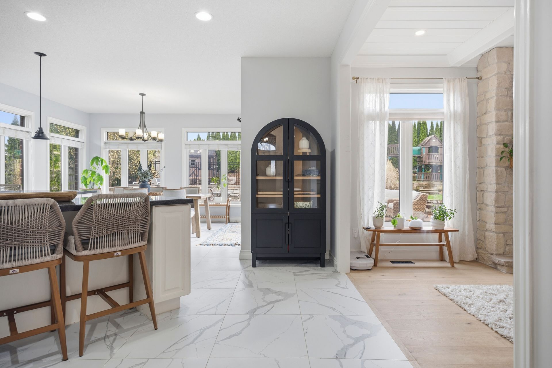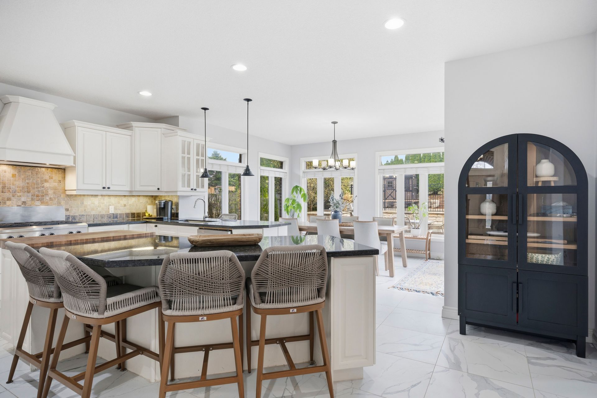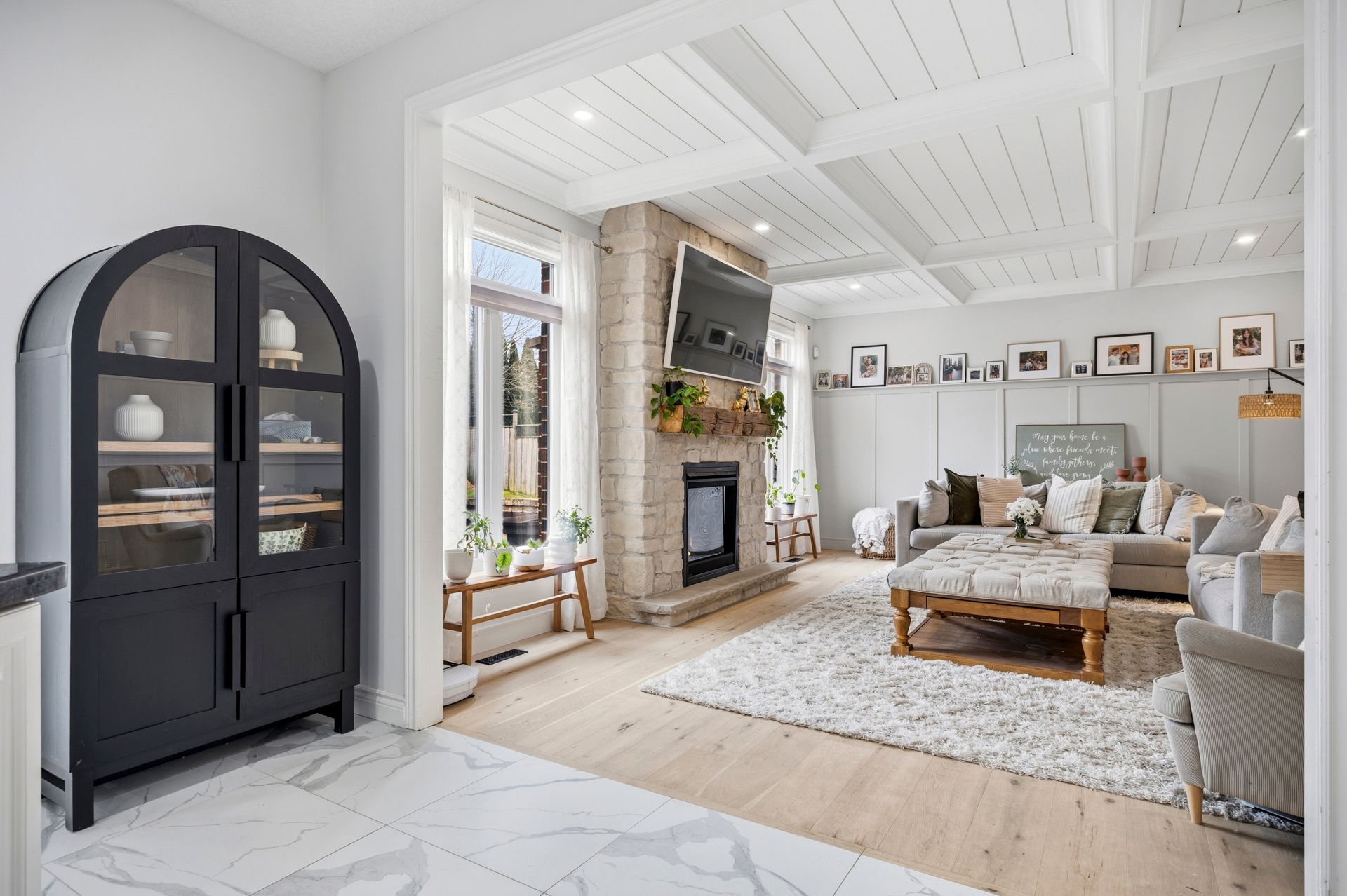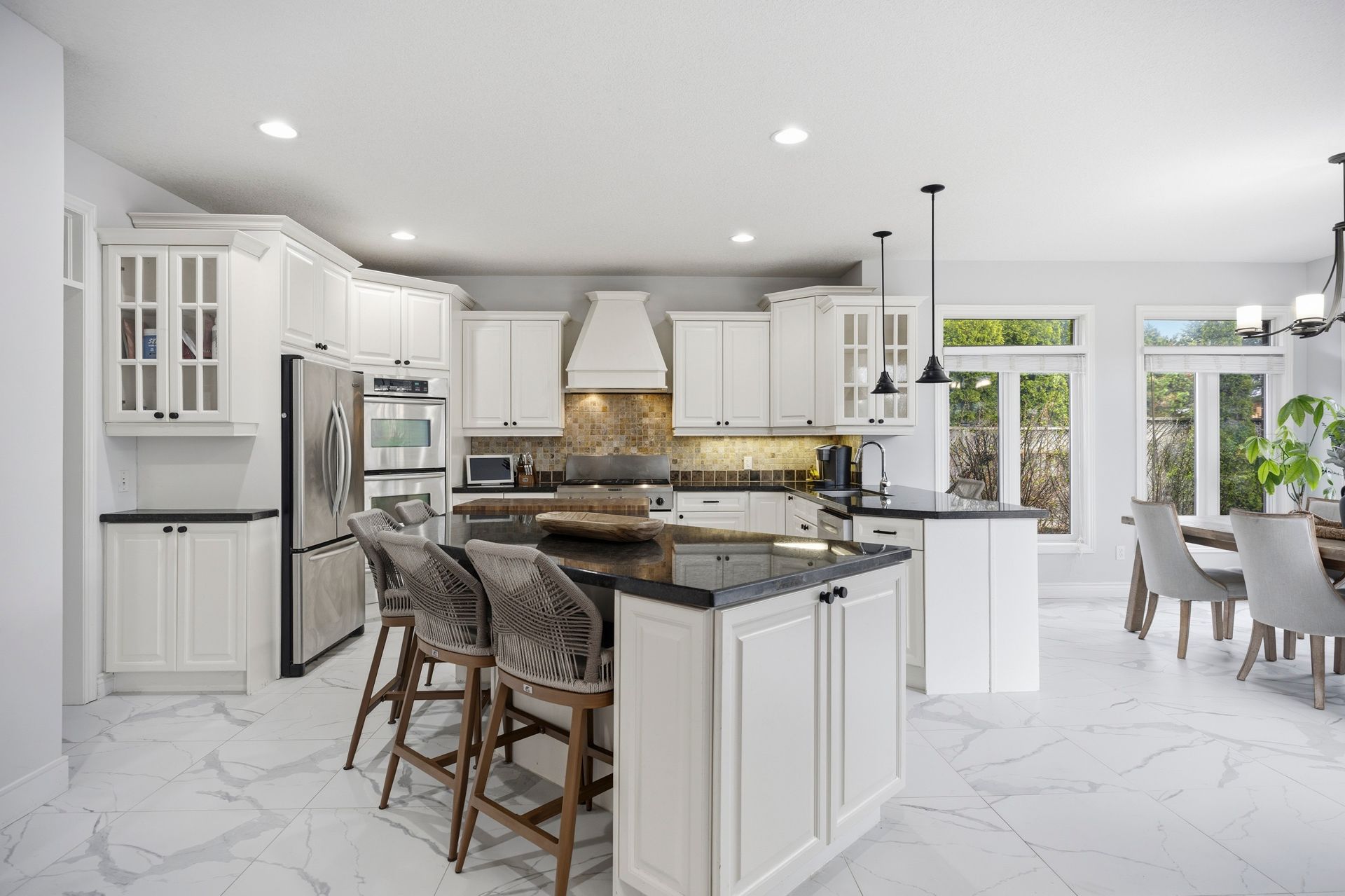 Located in one of london's most family-friendly neighbourhoods, just steps to riverbend park and a short walk to the vibrant west 5 district, this stunning estate home offers the perfect blend of lifestyle and convenience. Thoughtfully designed for both entertaining and everyday living, this impressive 4+1 bedroom, 3. 5 bathroom home with a heated 3-car garage delivers exceptional space and functionality. Step inside to soaring 18ft ceilings and a striking new white oak staircase. The main level offers incredible versatility, featuring a custom office with built-in cabinetry and quartz countertops ideal as a workspace or formal dining room alongside a secondary office and a powder room. The oversized living room is complete with a new gas fireplace, stone surround, and custom millwork. The open-concept kitchen and dining area seamlessly combine style and function, offering ample prep space, a walk-in pantry, a professional-grade gas range, and a built-in double oven. Flooded with natural light, the dining area overlooks a private backyard oasis featuring a spacious composite deck with a custom outdoor kitchen, a heated in-ground pool, concrete lounging area, armour stone accents, and mature trees with no rear neighbours. Upstairs, the spacious primary retreat offers a private ensuite, complemented by three additional bedrooms and a beautifully updated main bathroom with double sinks and a tiled shower. The fully finished basement adds versatility with a fifth bedroom, second kitchen, 3-piece bath, and a family/games room ideal for entertaining or extended family living. Extensive updates of close to $100,000 over the past year include a new white oak staircase, custom millwork, lvp flooring throughout, second-floor bathroom, fresh paint, gas fireplace with stone surround, dishwasher, furnace, custom office cabinetry, and landscaping. Enjoy access to top-rated schools offering the best of city living, all set on a quiet, family-oriented street.
