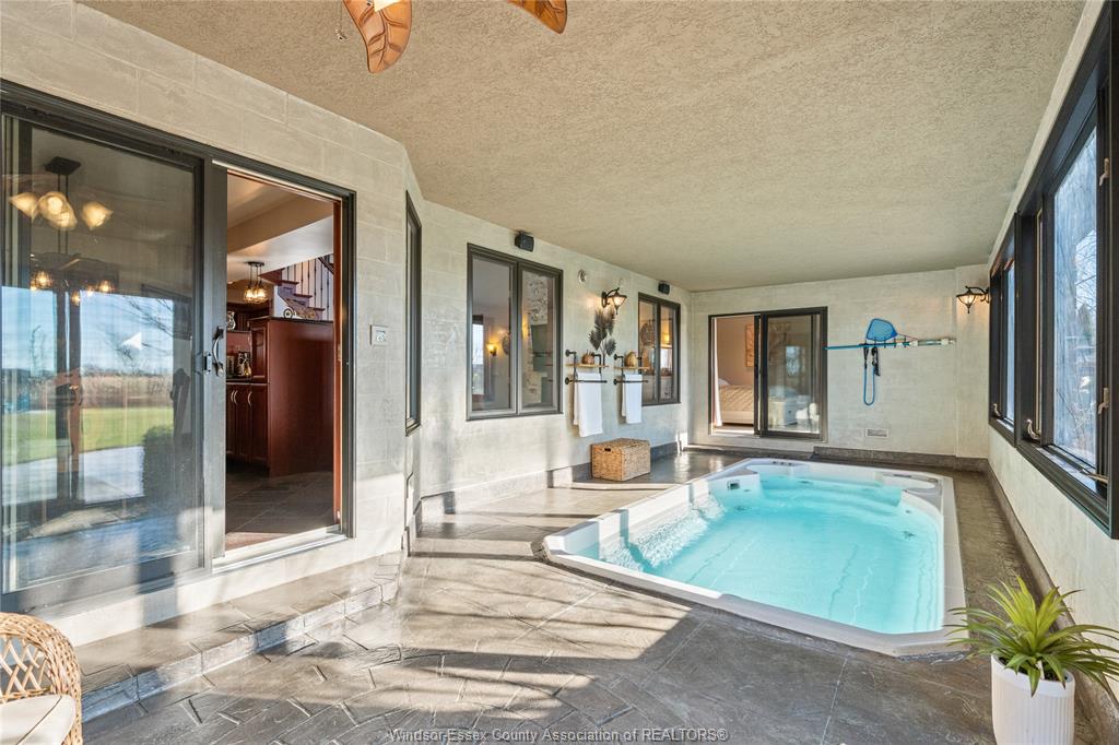 Experience elevated living at 2116 front rd. N in amherstburg, a truly timeless, unique, and elegant estate designed for comfort, luxury, and modern functionality. Offering over 4,300 sq ft of beautifully finished living space, this impressive home features 6 spacious bedrooms, 3. 5 bathrooms, and a spectacular grand great room perfect for entertaining. The primary suite is a private retreat with a steam shower, jacuzzi walkout, and balcony access, while the home is equipped with full smart-home integration including security cameras, alarm system, sound systems, sprinklers, and garage controls all accessible by phone. Enjoy year-round wellness with the incredible indoor lap pool and hot tub, plus added peace of mind from a natural gas backup generator. Outdoors, the property shines with a landscaped fenced yard, fire pit area, sunroom, concrete patio, bbq gas lines, and tranquil canal water access, all with no rear neighbours and unobstructed horizon views. With a heated epoxy-floored 2. 5 car garage, abundant storage, and high-efficiency dual-zone hvac, this extraordinary property blends luxury, privacy, and smart living into one unforgettable dream home.