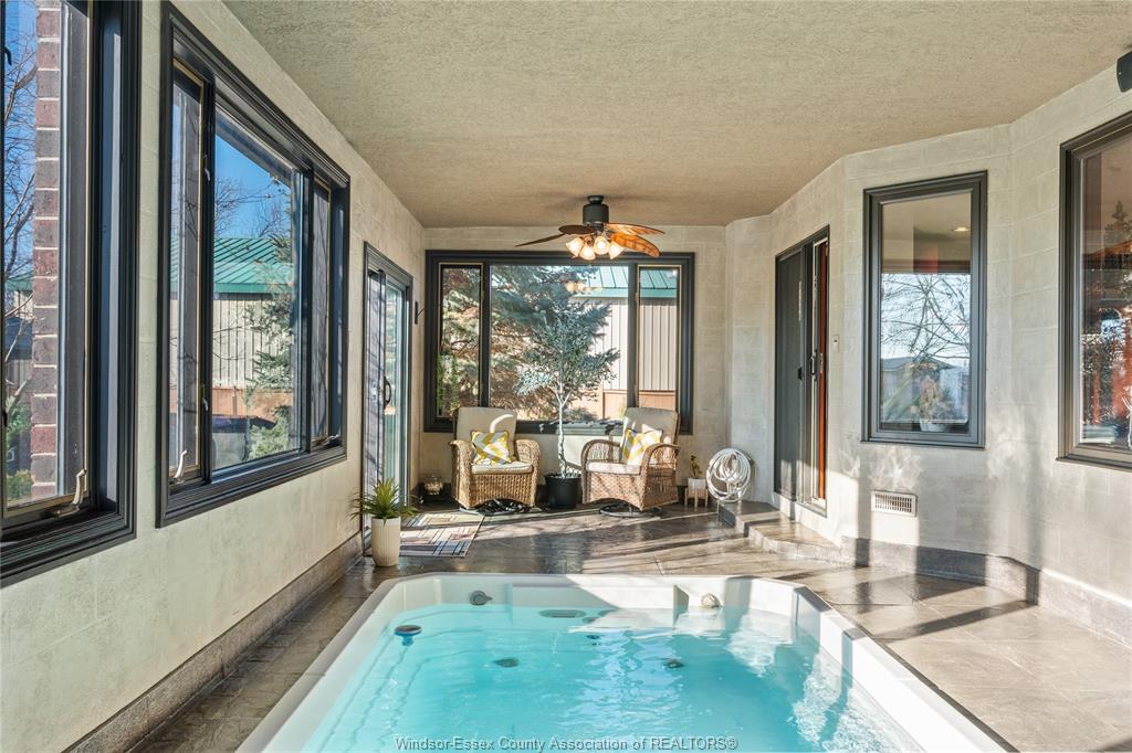 Experience elevated living at 2116 front rd. N in amherstburg, a truly timeless, unique, and elegant estate designed for comfort, luxury, and modern functionality. Offering over 4,300 sq ft of beautifully finished living space, this impressive home features 6 spacious bedrooms, 3. 5 bathrooms, and a spectacular grand great room perfect for entertaining. The primary suite is a private retreat with a steam shower, jacuzzi walkout, and balcony access, while the home is equipped with full smart-home integration including security cameras, alarm system, sound systems, sprinklers, and garage controls all accessible by phone. Enjoy year-round wellness with the incredible indoor lap pool and hot tub, plus added peace of mind from a natural gas backup generator. Outdoors, the property shines with a landscaped fenced yard, fire pit area, sunroom, concrete patio, bbq gas lines, and tranquil canal water access, all with no rear neighbours and unobstructed horizon views. With a heated epoxy floored 2. 5 car garage, abundant storage, and high-efficiency dual-zone hvac, this extraordinary property blends luxury, privacy, and smart living into one unforgettable dream home.