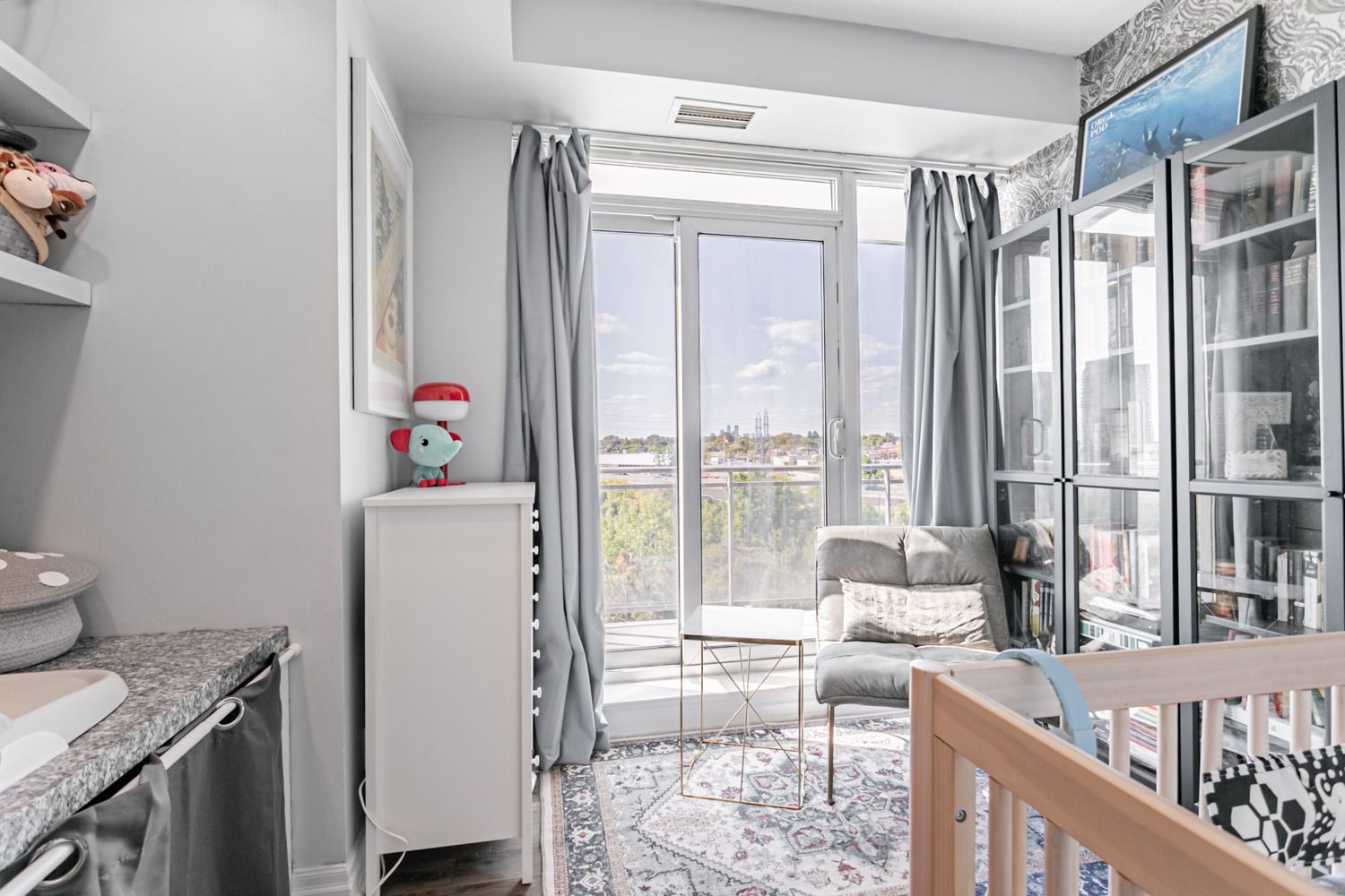 • Bright open-concept layout featuring 9-foot ceilings and laminate floors.