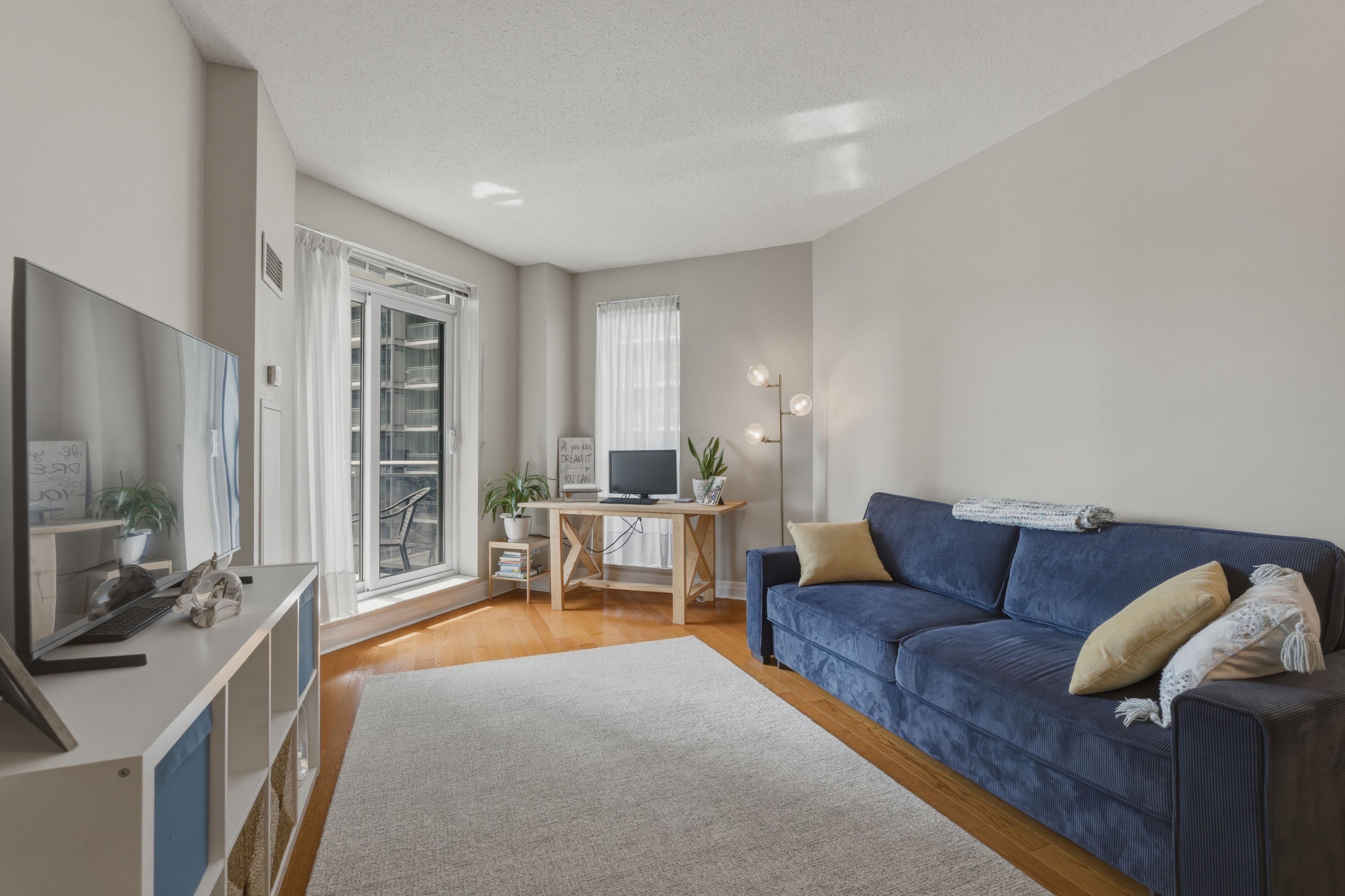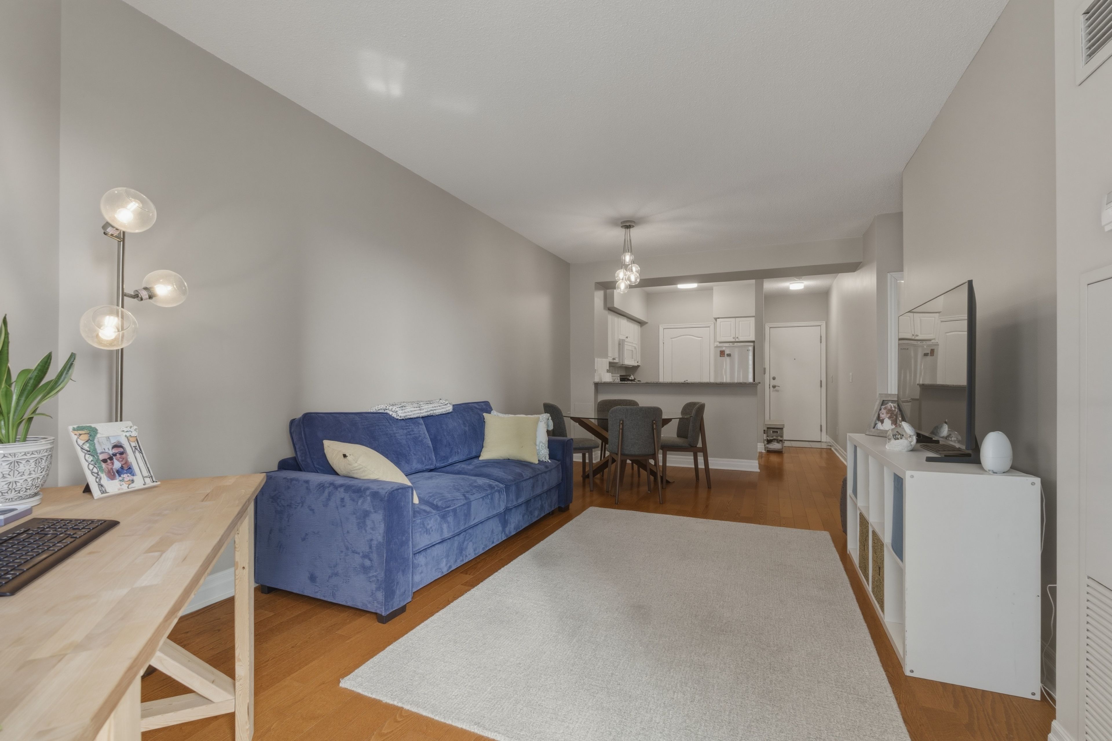 Stylish, bright, and just moments from the waterfront, this thoughtfully designed 1-bedroom offers the perfect balance of comfort and city living. The open layout makes the most of the space, highlighted by sleek flooring and 9-foot ceilings. A well-appointed kitchen features granite countertops, a modern backsplash, and an l-shaped design that's ideal for both everyday use and entertaining. The bedroom is generously sized with a custom closet for added functionality. Complete with parking and a locker, and set in a vibrant neighbourhood surrounded by cafés, restaurants, and lakeside paths-this is easy urban living at its best. All utilities are included.