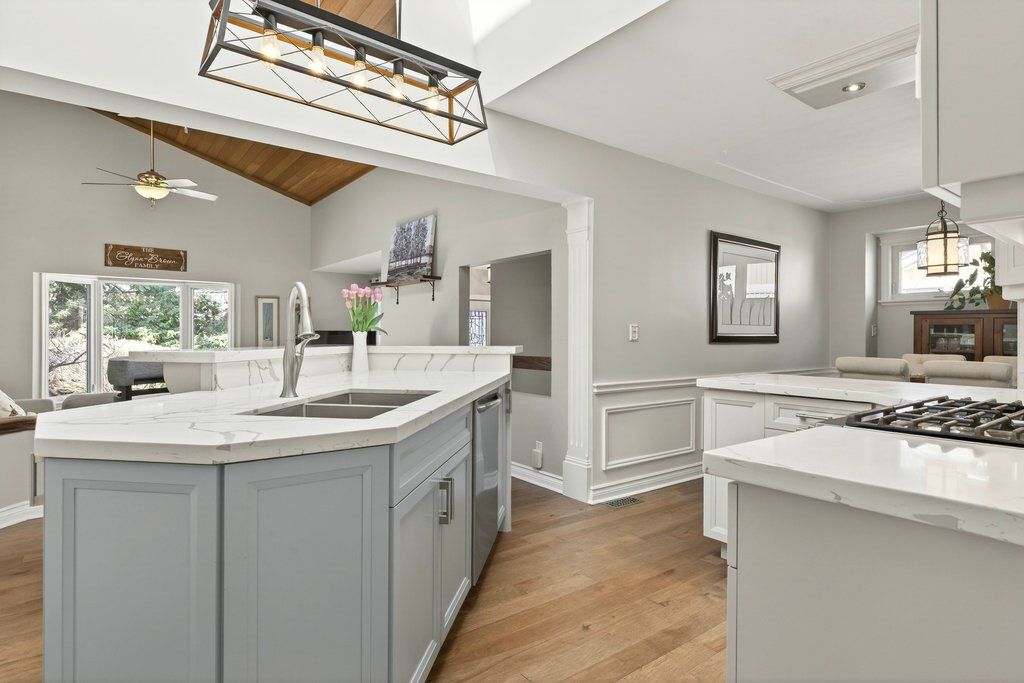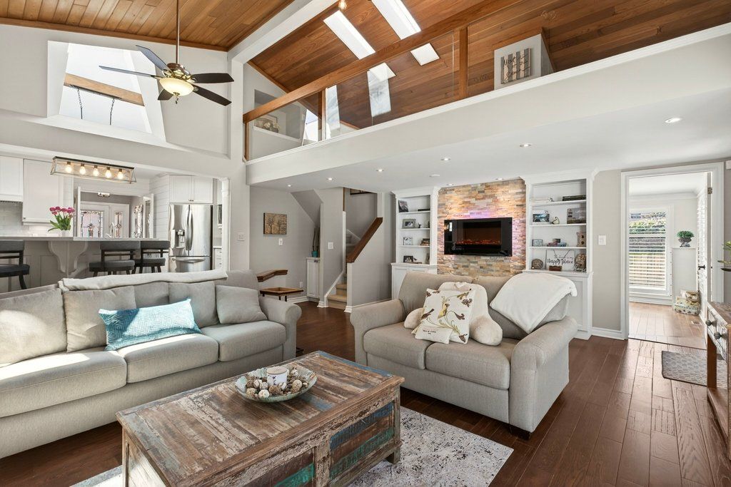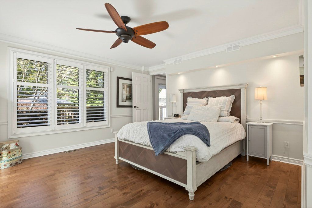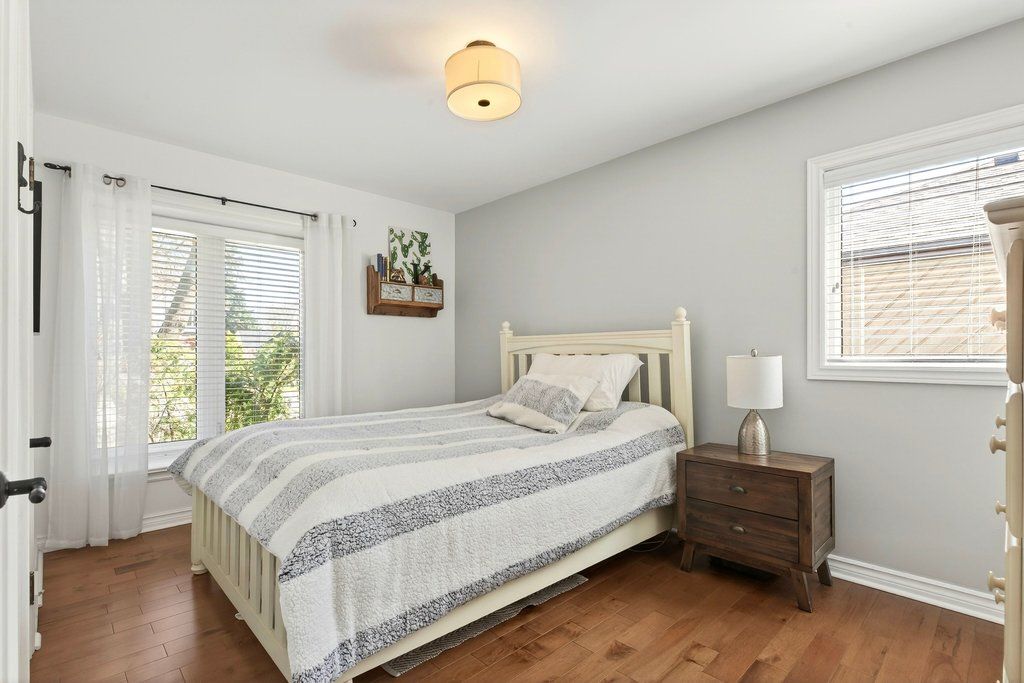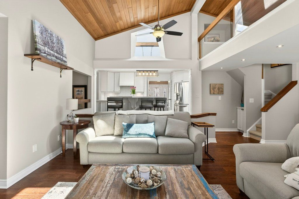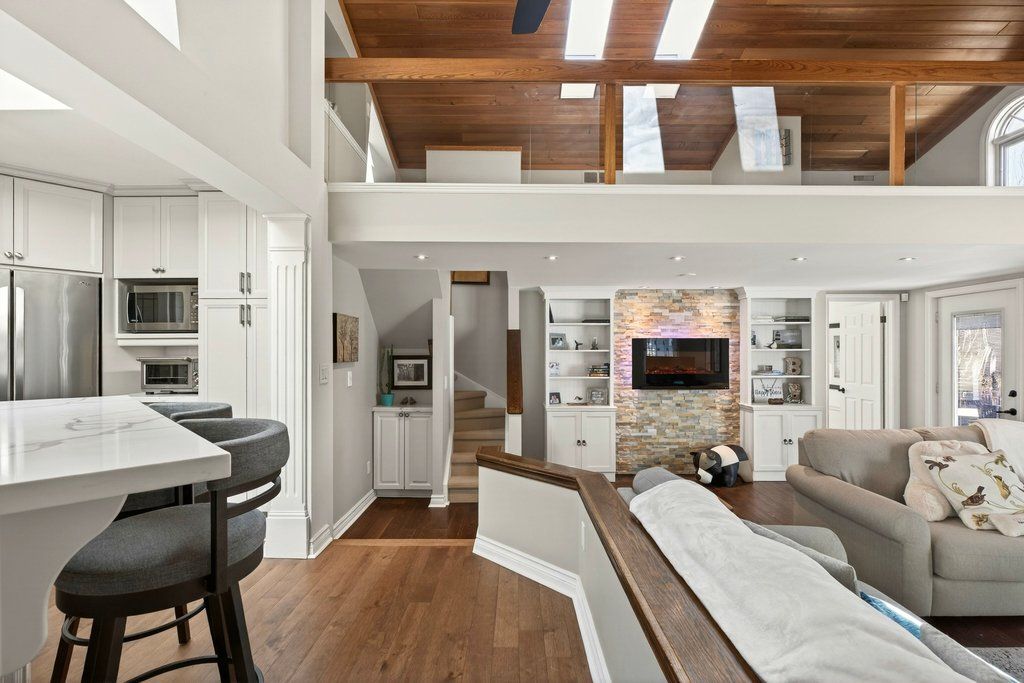 Updated bungalow in highly sought-after downtown core location on prime 65' x 135' lot! Quiet street just steps from schools, parks, restaurants, shopping, the lake, highway access and the go station! 2,448 sq. Ft. Main level with loft + a professionally finished lower level. Main level primary suite with walk-in closet and gorgeous 5-piece ensuite. Updated kitchen with stainless steel appliances (including gas stove), quartz countertops, island and subway tile backsplash opens to a stunning family room with vaulted ceiling, loft and walkout to deck/professionally landscaped private yard with water feature. Main level also includes a formal living room with gas fireplace, separate dining room, an office/den, two additional bedrooms and a second full bathroom. Hardwood floors, crown moulding, wainscoting, california shutters, multiple skylights and an oversized detached garage with loft/storage area, potting shed and heating/air conditioning. 3+1 bedrooms and 3 bathrooms.