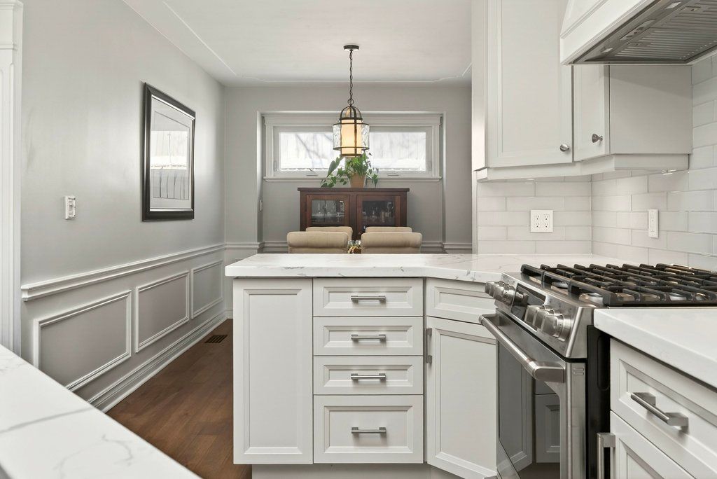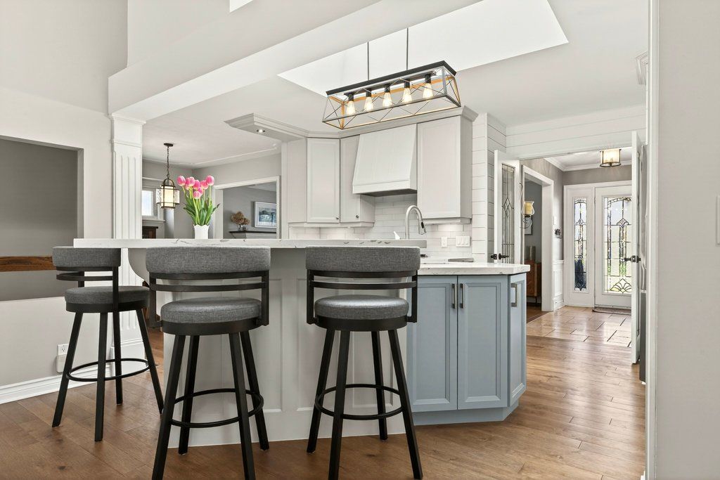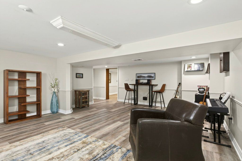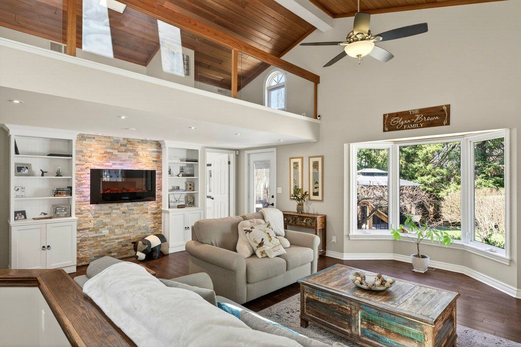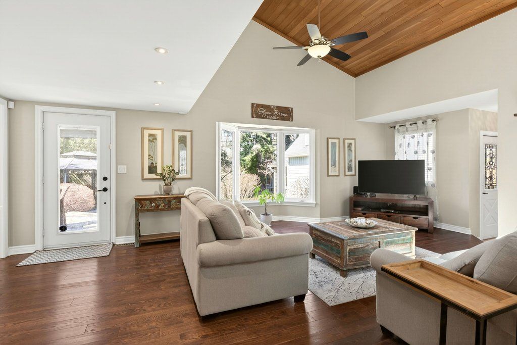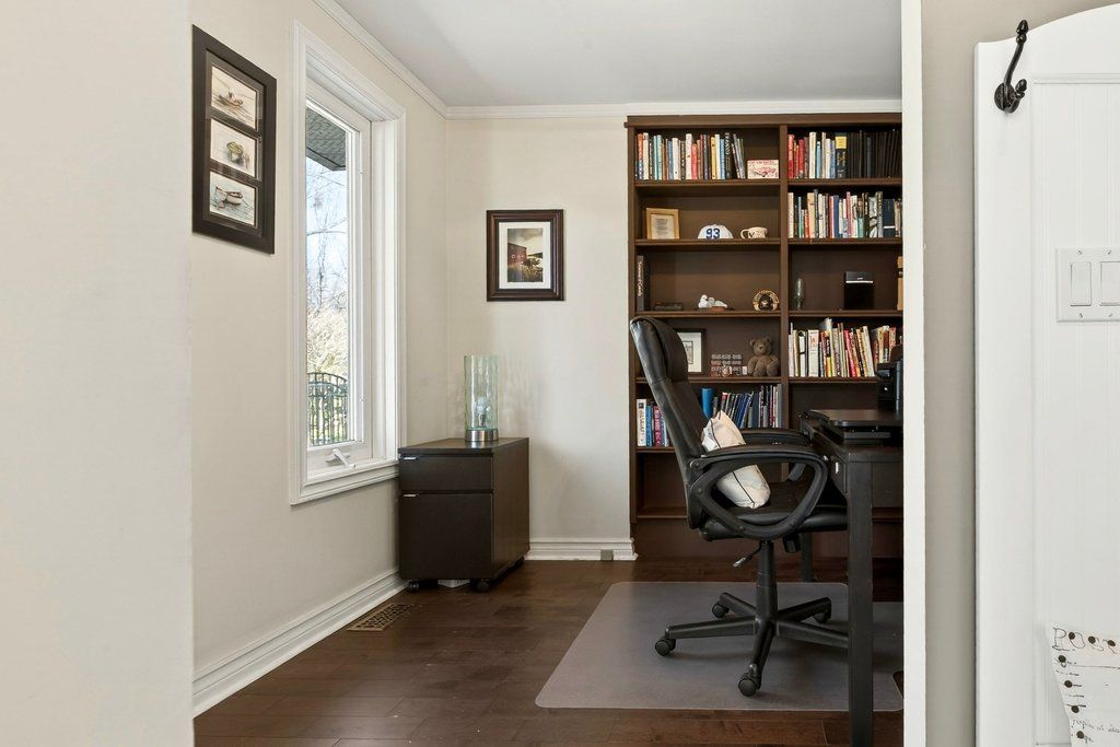 Updated bungalow in highly sought-after downtown core location on prime 65' x 135' lot! Quiet street just steps from schools, parks, restaurants, shopping, the lake, highway access and the go station! 2,448 sq. Ft. Main level with loft + a professionally finished lower level. Main level primary suite with walk-in closet and gorgeous 5-piece ensuite. Updated kitchen with stainless steel appliances (including gas stove), quartz countertops, island and subway tile backsplash opens to a stunning family room with vaulted ceiling, loft and walkout to deck/professionally landscaped private yard with water feature. Main level also includes a formal living room with gas fireplace, separate dining room, an office/den, two additional bedrooms and a second full bathroom. Hardwood floors, crown moulding, wainscoting, california shutters, multiple skylights and an oversized detached garage with loft/storage area, potting shed and heating/air conditioning. 3+1 bedrooms and 3 bathrooms.