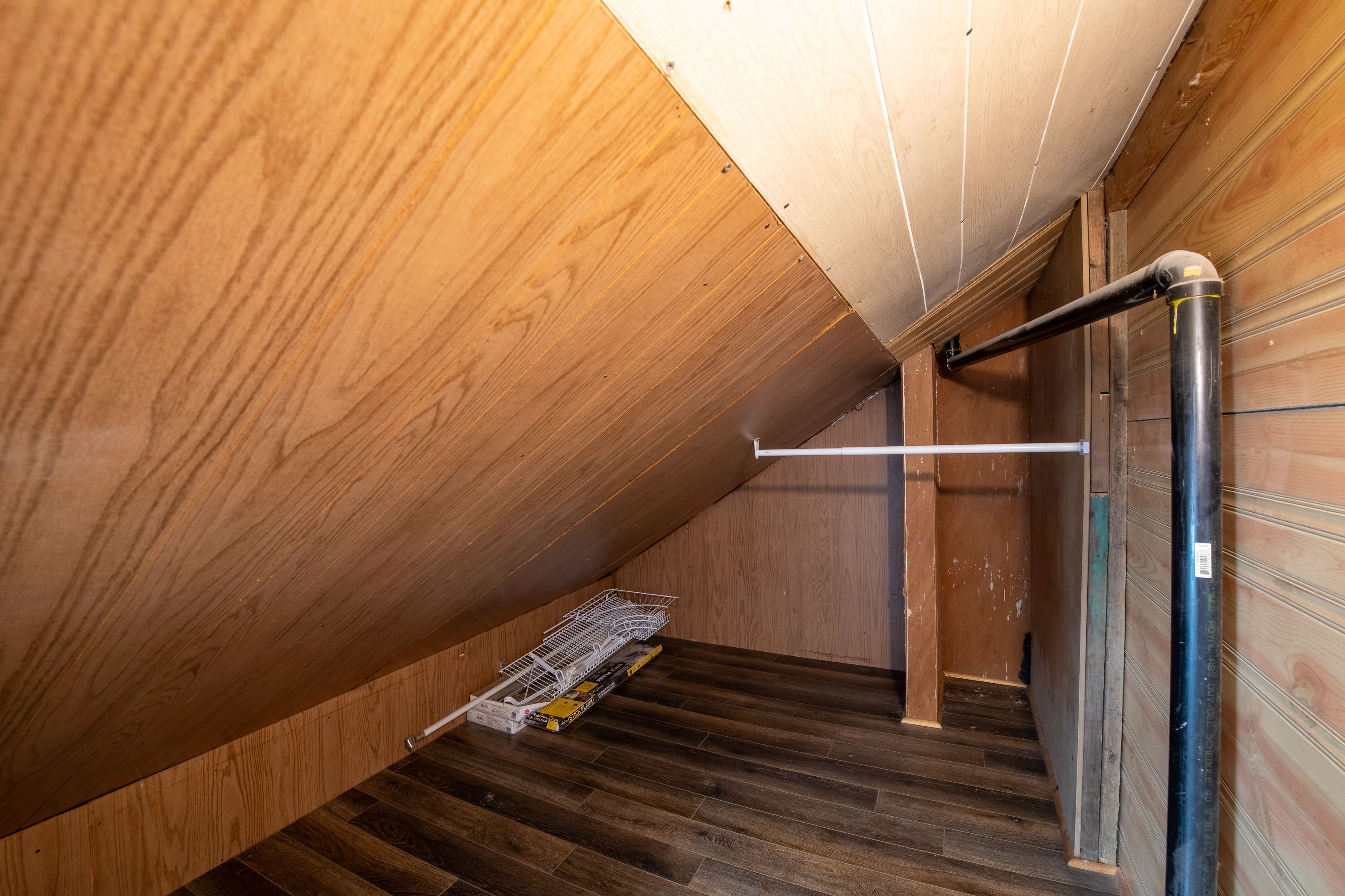 • Four dedicated parking spaces and a detached garage for storage or a workshop.