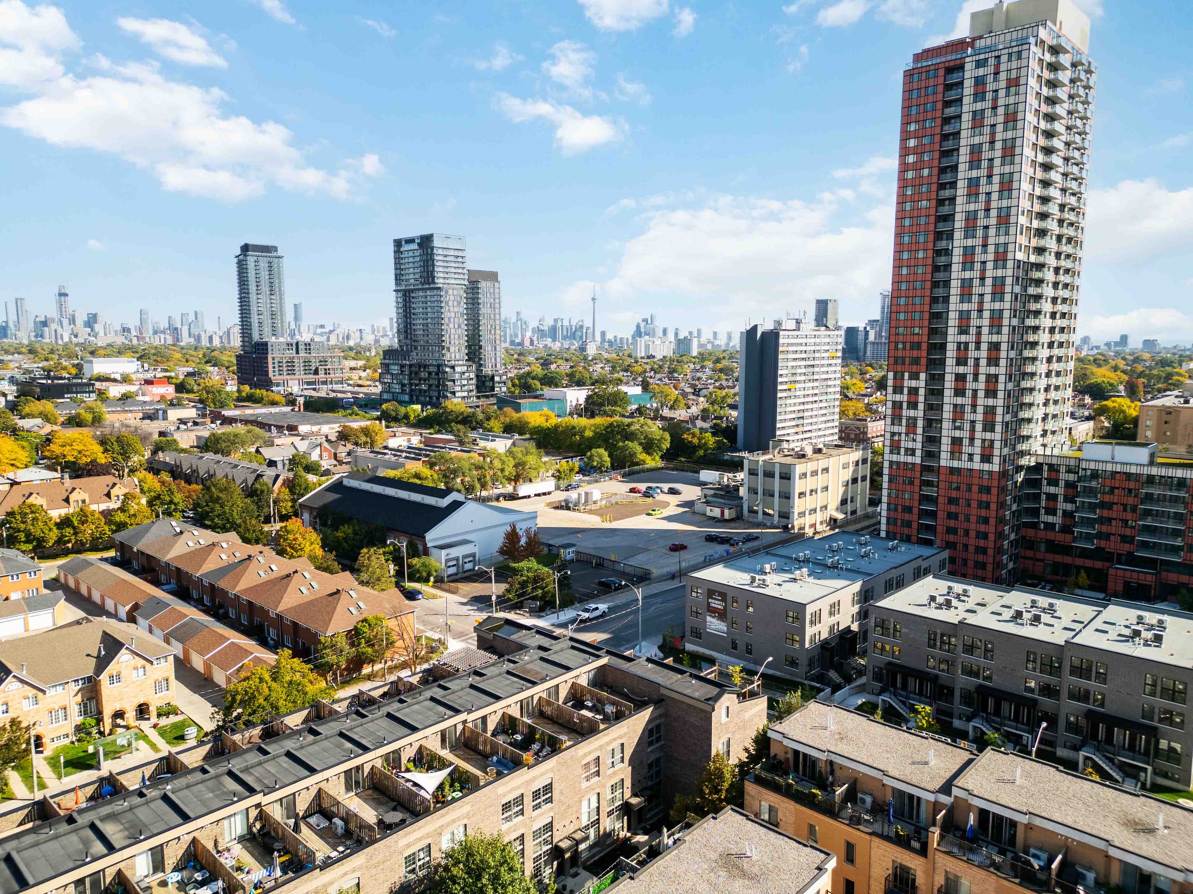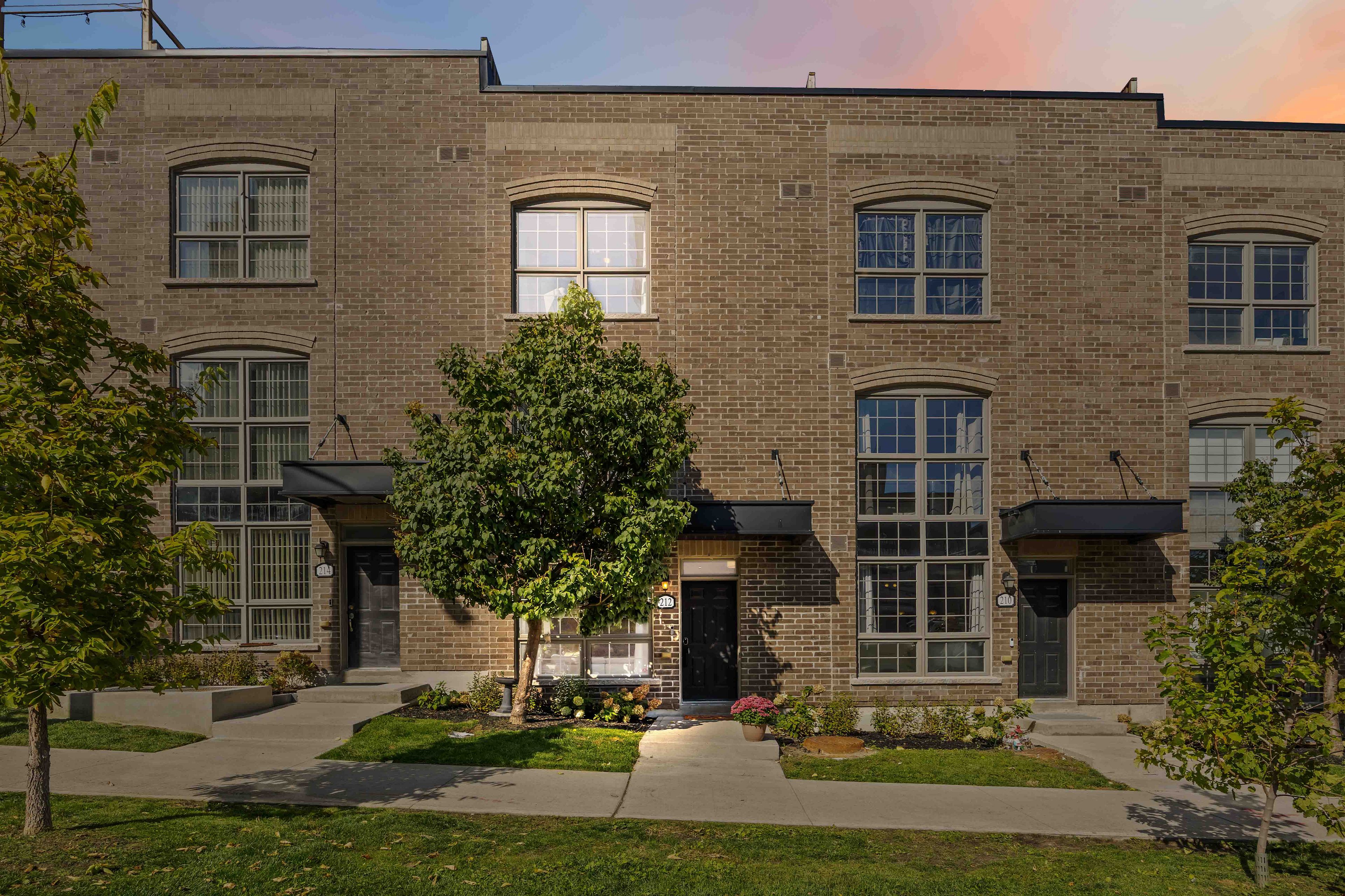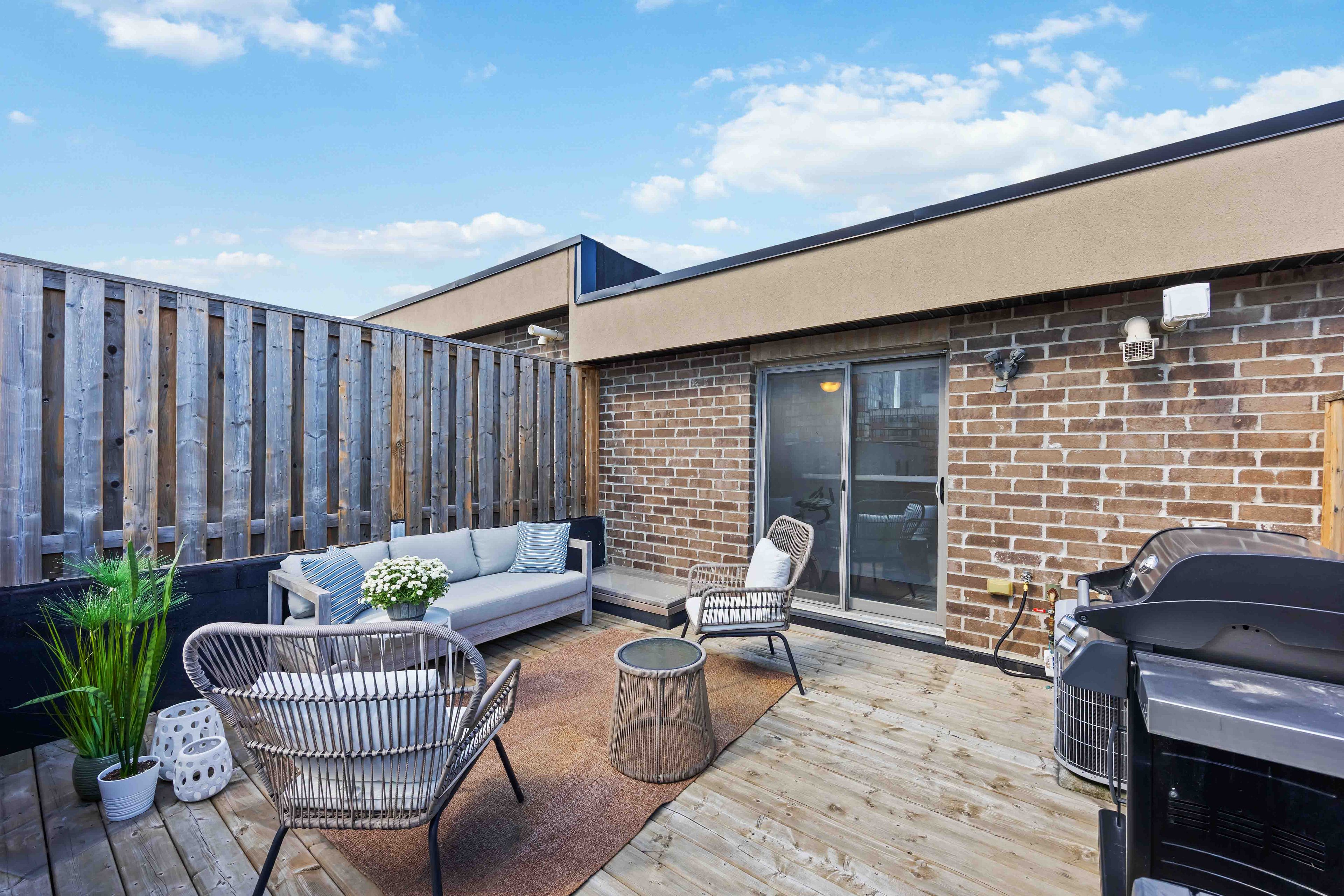 Discover elevated urban living in this spacious, sleek, and contemporary three-bedroom, three-bathroom home at heritage towns in davenport village. Located in toronto's highly sought-after west end, this well designed residence is thoughtfully laid out over 4 spacious levels. The home's rich-toned brick exterior and majestic windows exude curb appeal. Inside, the open-concept layout is bathed in natural light, thanks to soaring nine-foot ceilings and dramatic floor-to-ceiling windows. The gourmet kitchen is a chef's dream, featuring upgraded jenn-air appliances, premium quartz counters, and custom cabinetry. Luxurious engineered hardwood flooring runs throughout, complemented by a fresh, clean feel from the 2022 full-house paint and refreshed bathrooms. The luxurious master retreat boasts two large closets and a private ensuite. Two additional large bedrooms accompany a versatile den-perfect for a home office-which opens onto your massive, south-facing terrace. This private oasis features a gas connection for your bbq and offers a spectacular, unobstructed skyline and cn tower view. This incredible home includes two underground parking spaces (one being extra-wide/handicap accessible) and one storage locker. Situated perfectly, you'll enjoy unparalleled access to the west toronto rail-path, subway, ttc/streetcar, go train, and a vibrant neighbourhood with parks, top restaurants, and shopping-all within walking distance.