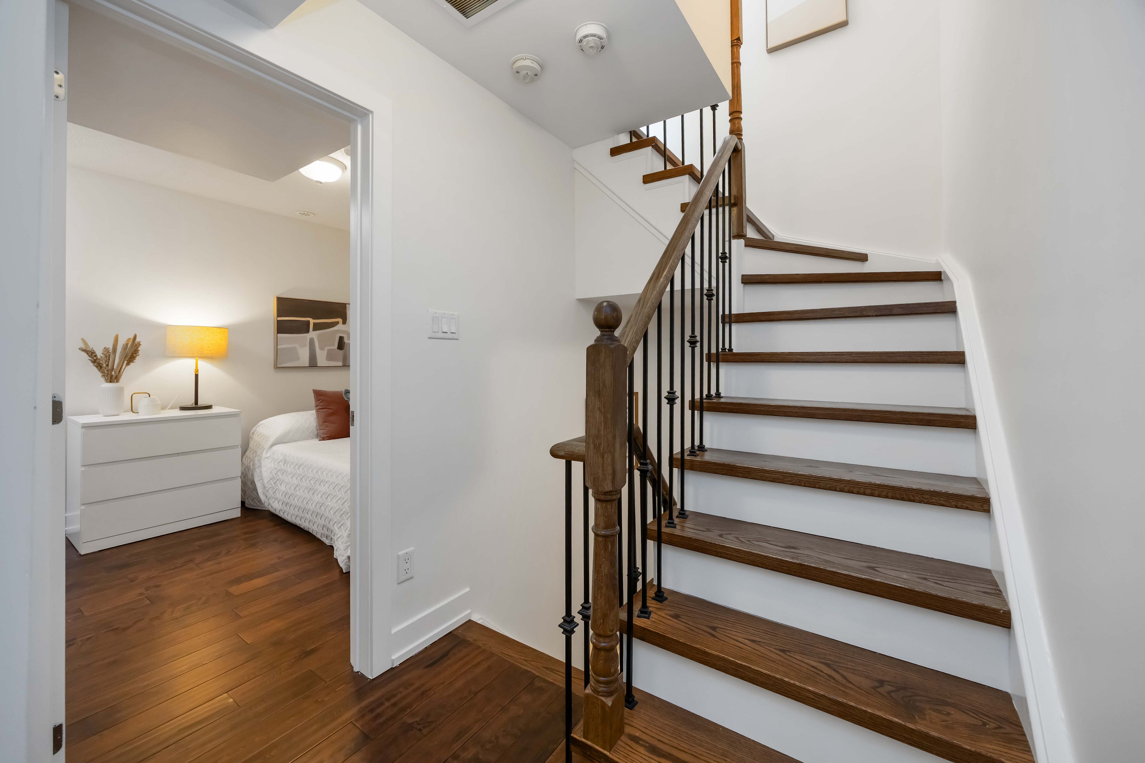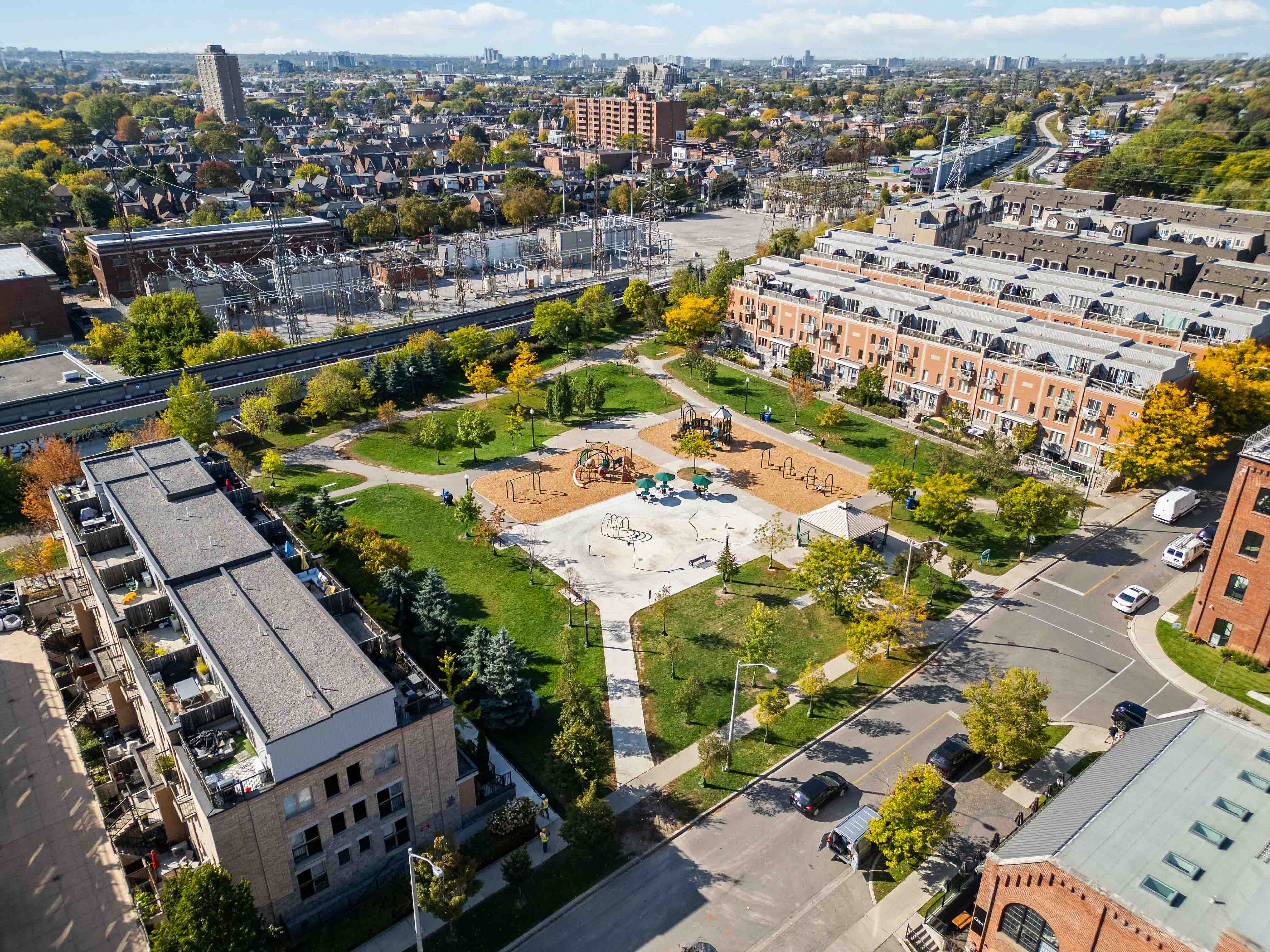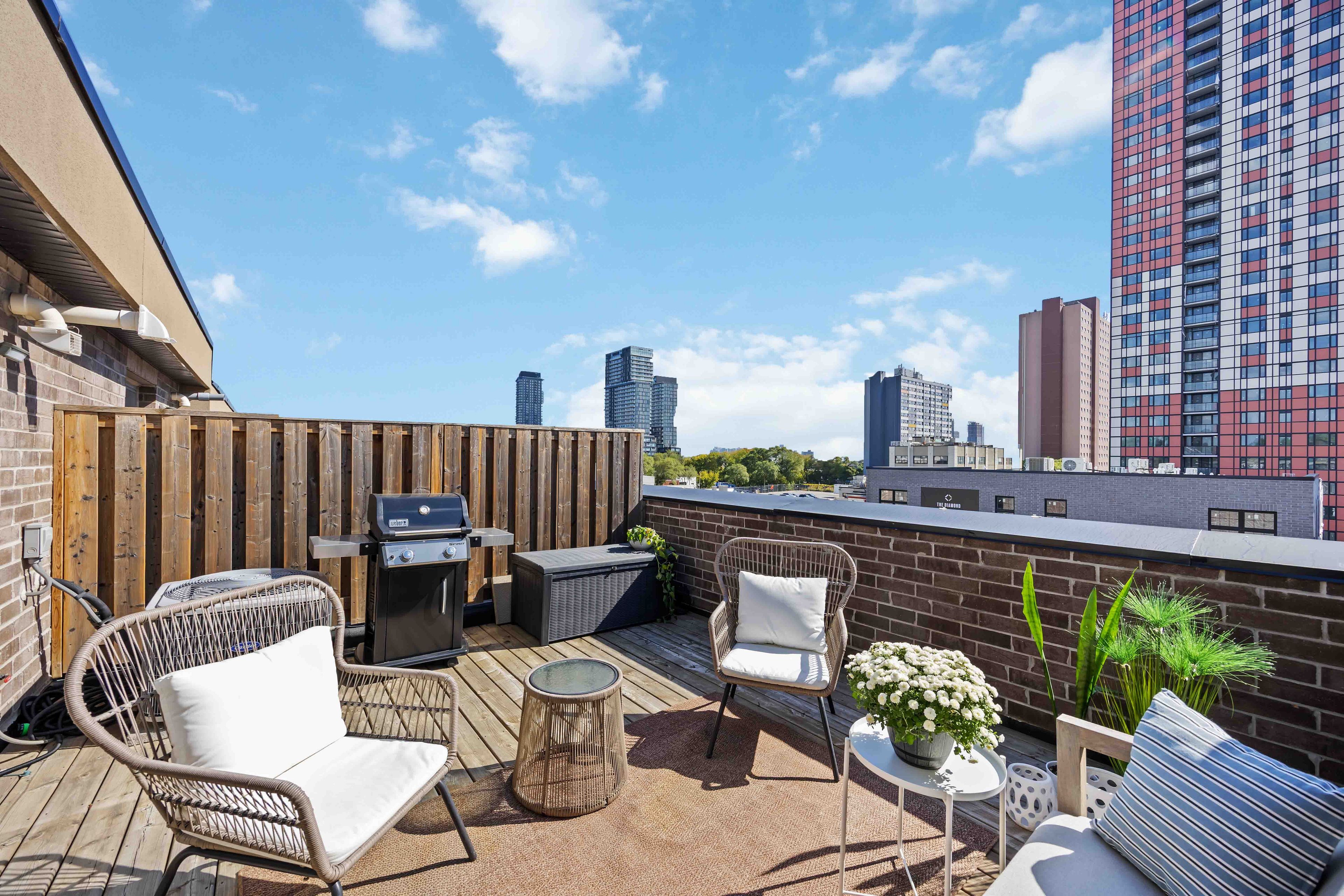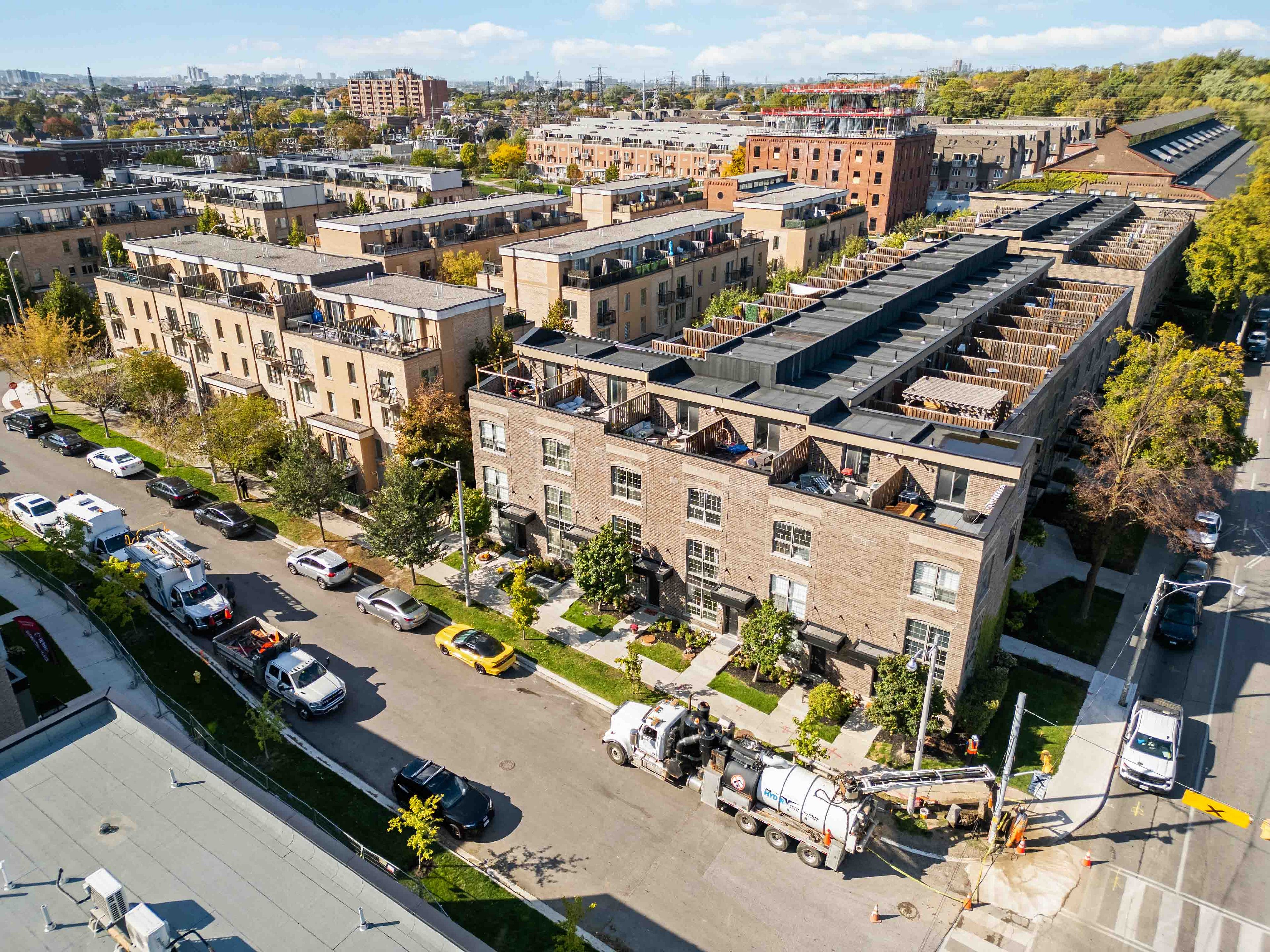 Discover elevated urban living in this spacious, sleek, and contemporary three-bedroom, three-bathroom home at heritage towns in davenport village. Located in toronto's highly sought-after west end, this well designed residence is thoughtfully laid out over 4 spacious levels. The home's rich-toned brick exterior and majestic windows exude curb appeal. Inside, the open-concept layout is bathed in natural light, thanks to soaring nine-foot ceilings and dramatic floor-to-ceiling windows. The gourmet kitchen is a chef's dream, featuring upgraded jenn-air appliances, premium quartz counters, and custom cabinetry. Luxurious engineered hardwood flooring runs throughout, complemented by a fresh, clean feel from the 2022 full-house paint and refreshed bathrooms. The luxurious master retreat boasts two large closets and a private ensuite. Two additional large bedrooms accompany a versatile den-perfect for a home office-which opens onto your massive, south-facing terrace. This private oasis features a gas connection for your bbq and offers a spectacular, unobstructed skyline and cn tower view. This incredible home includes two underground parking spaces (one being extra-wide/handicap accessible) and one storage locker. Situated perfectly, you'll enjoy unparalleled access to the west toronto rail-path, subway, ttc/streetcar, go train, and a vibrant neighbourhood with parks, top restaurants, and shopping-all within walking distance.