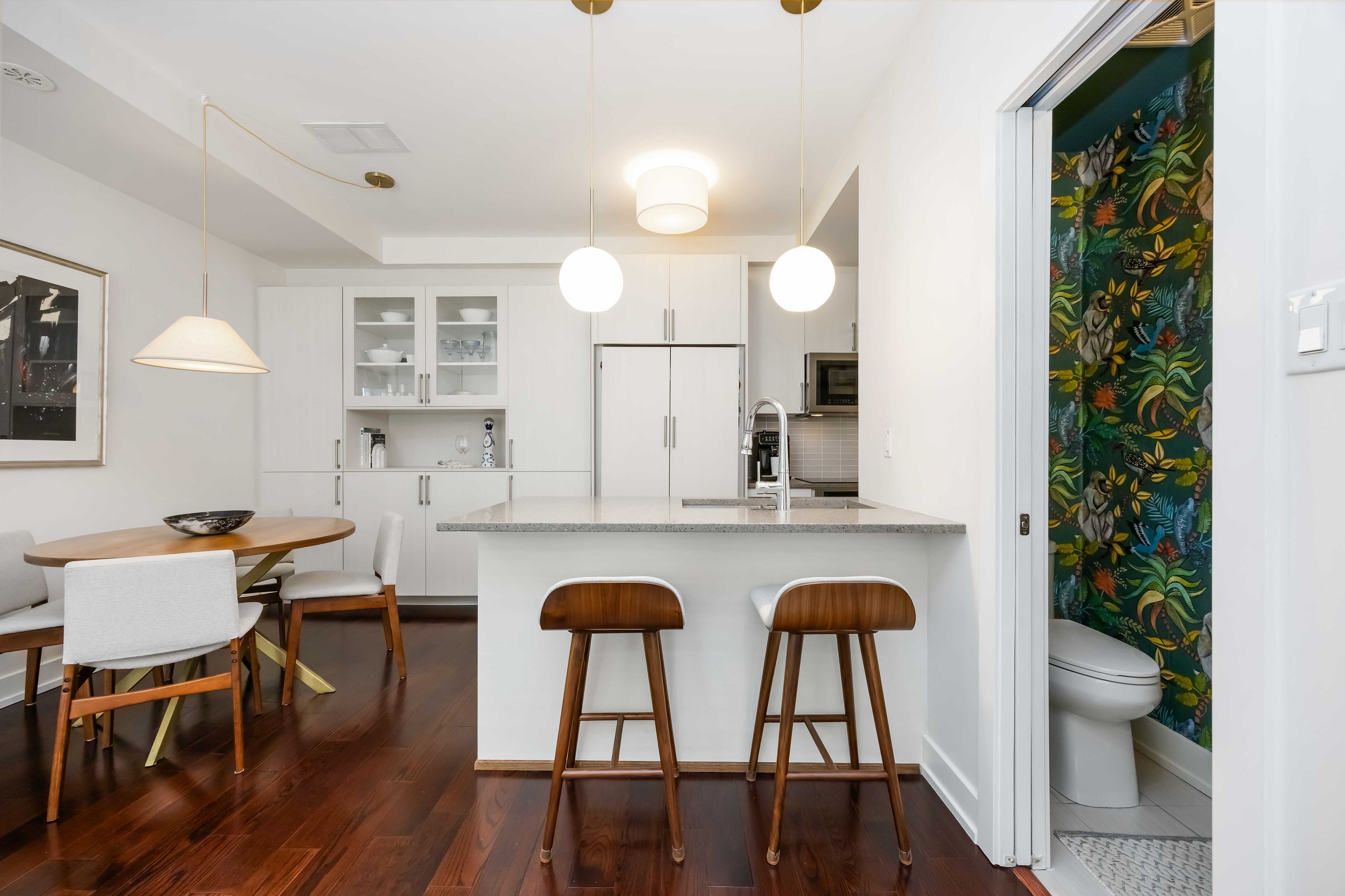 • Open-concept layout with nine-foot ceilings and floor-to-ceiling windows.