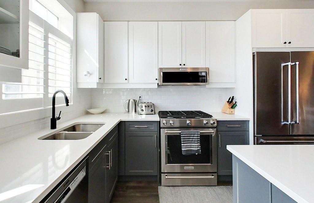 • Modern kitchen equipped with quality appliances and large island.