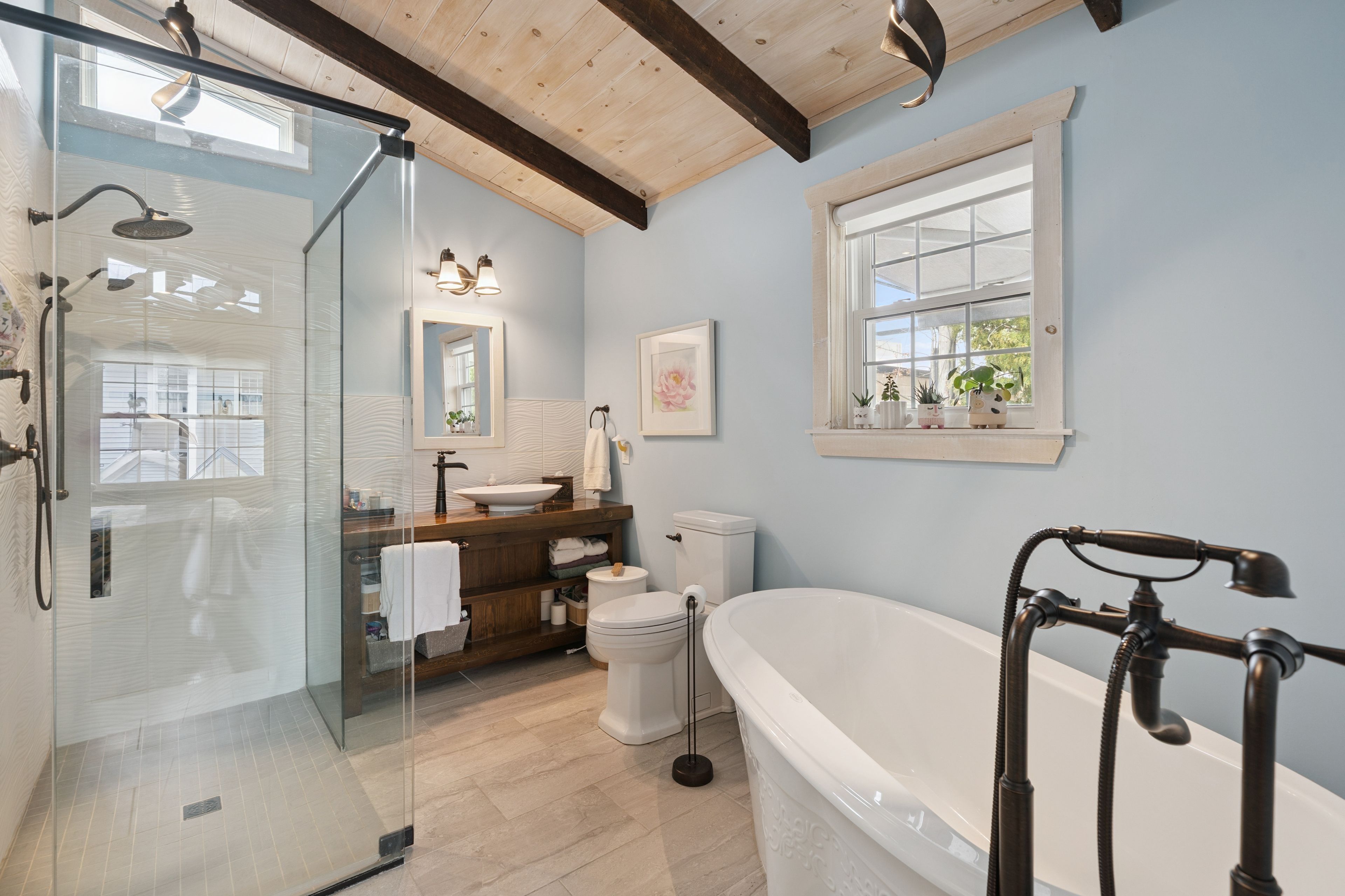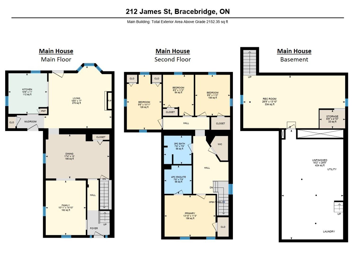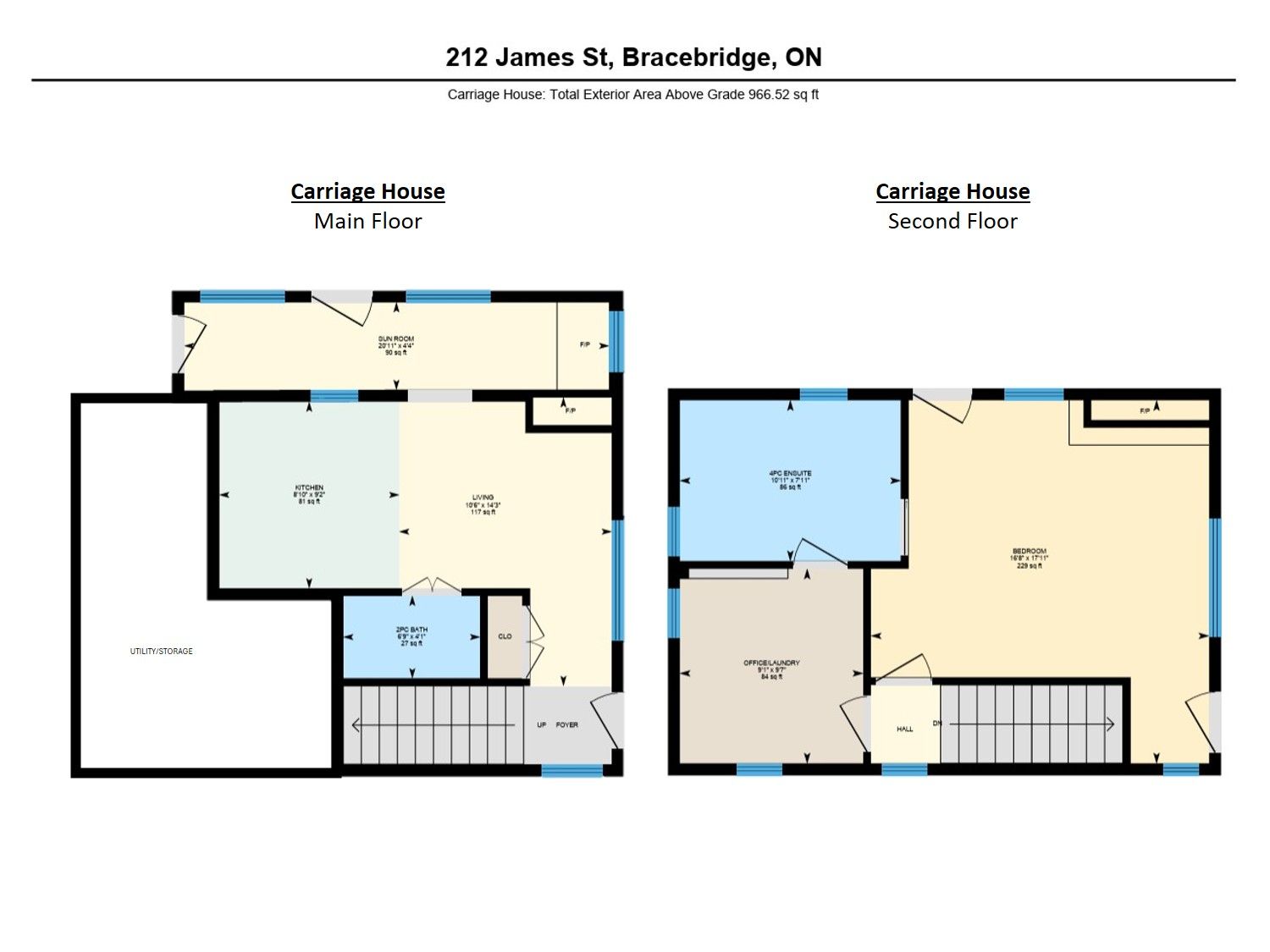 4-bdrm, 2-bath, 2240 sqft home plus 1-bdrm, 1. 5 bath, 860 sqft detached carriage house. **main house** the open-plan kitchen-lounge area has a gas fireplace flanked w/built-in shelving. Step out the front to the covered porch, or out back to a large deck over looking the expertly curated yard. The large formal dining room w/high coffered ceiling & recessed lighting connects w/ "century home character" to the living room featuring crown moulding & hardwood floors. Upstairs is the primary bdrm w/ a modern 4pc ensuite, 3 more bdrms w/ closets, & a recently renovated 3pc bath. The original basement offers laundry, plenty of storage & gas furnace. The addition (under the kitchen-lounge) in the basement is currently being finished to be used as a family room, fitness studio, hobby space, or for a home occupation, & offers an additional private entrance from the backyard. **carriage house** this 840 sqft, year-round home features in-floor hot water radiant heating, open-concept kitchen-living area w/ the 1st fireplace, & a main floor 2pc bath. There's a sitting room with the 2nd fireplace and patio doors to the backyard with a waterfall feature, low maintenance yard, and fenced area ideal for a loved pooch. On the second floor, you will find a spacious bdrm w/ the 3rd fireplace, two balconies, and an office with laundry. The 4pc modern ensuite offers a free-standing soaking tub & step-in glass wall shower. **outside** privacy is secured w/ 6-8' fences, plus 15-20' cedars lining both sides of the property. In addition, there is a gated backyard for family pets to run freely & safely. The landscaping has been expertly designed w/ easy maintenance, excellent drainage, & peace of mind as a primary focus. Found less than 1km from bass rock swimming spot (muskoka river), & south muskoka curling/golf club, 1. 5kms to bracebridge bay beach, & the new community centre. Centrally located near downtown, & within steps to shopping, dining, entertainment, public transit & medical care.