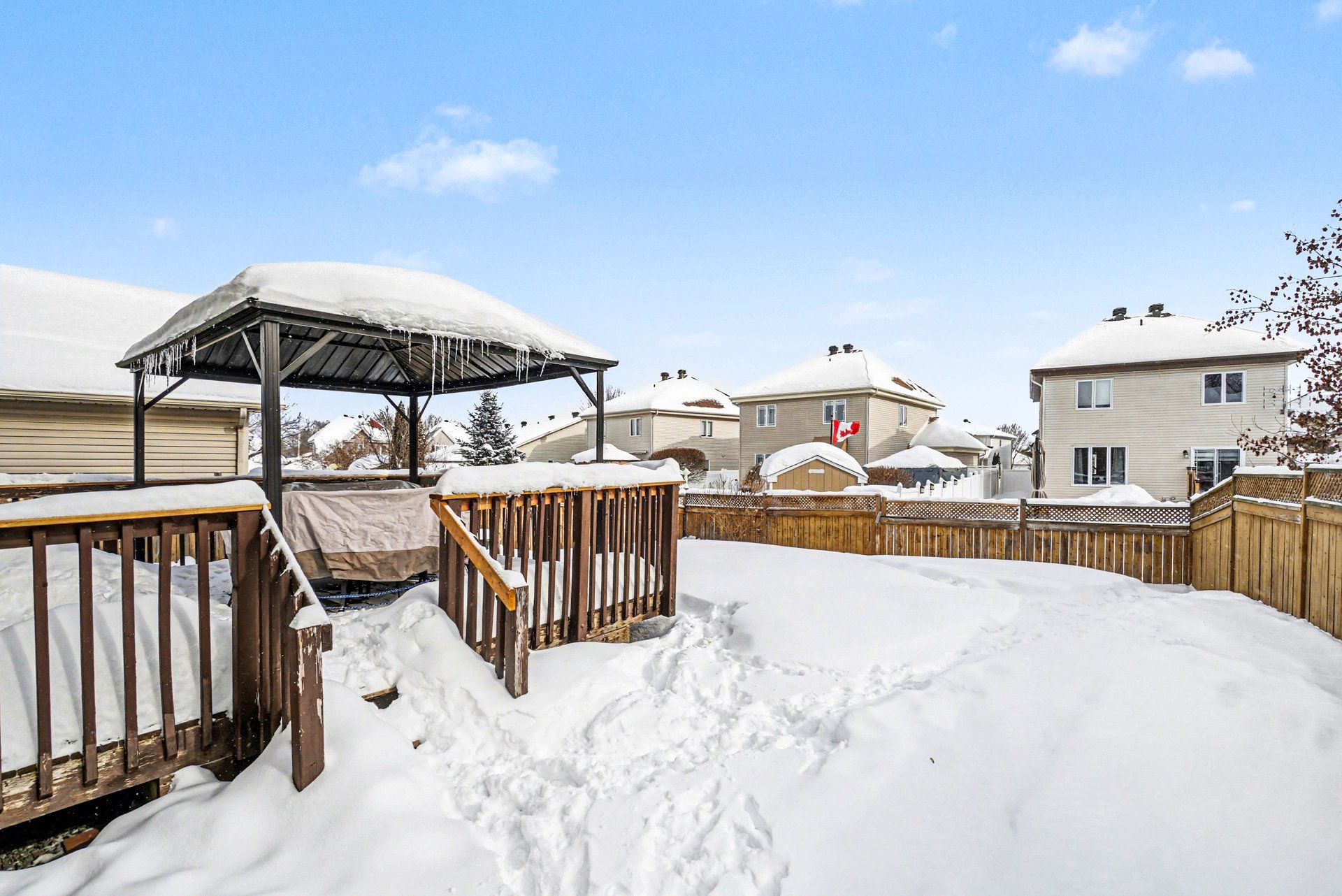 • Large deck and fenced backyard, perfect for outdoor gatherings.