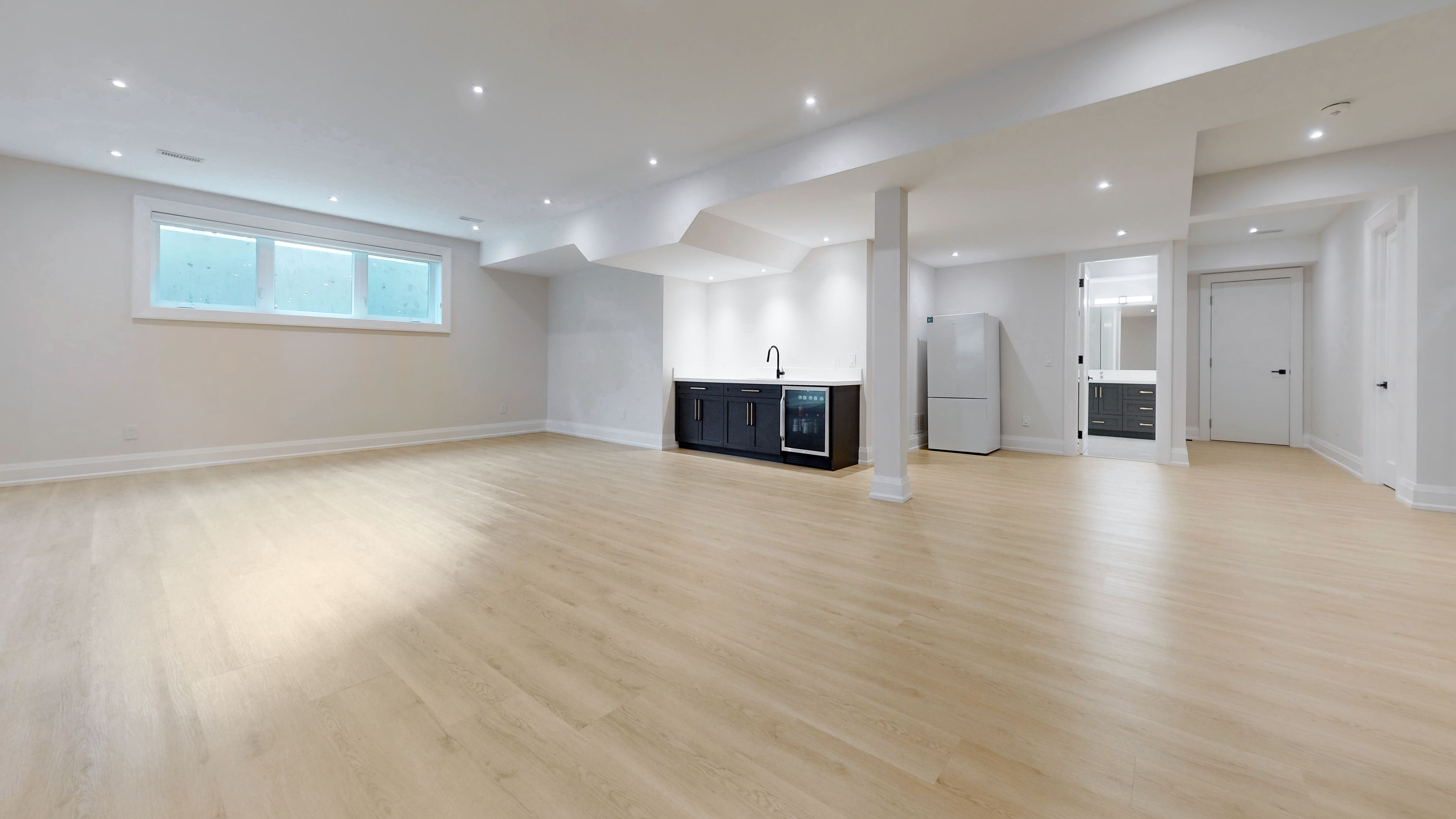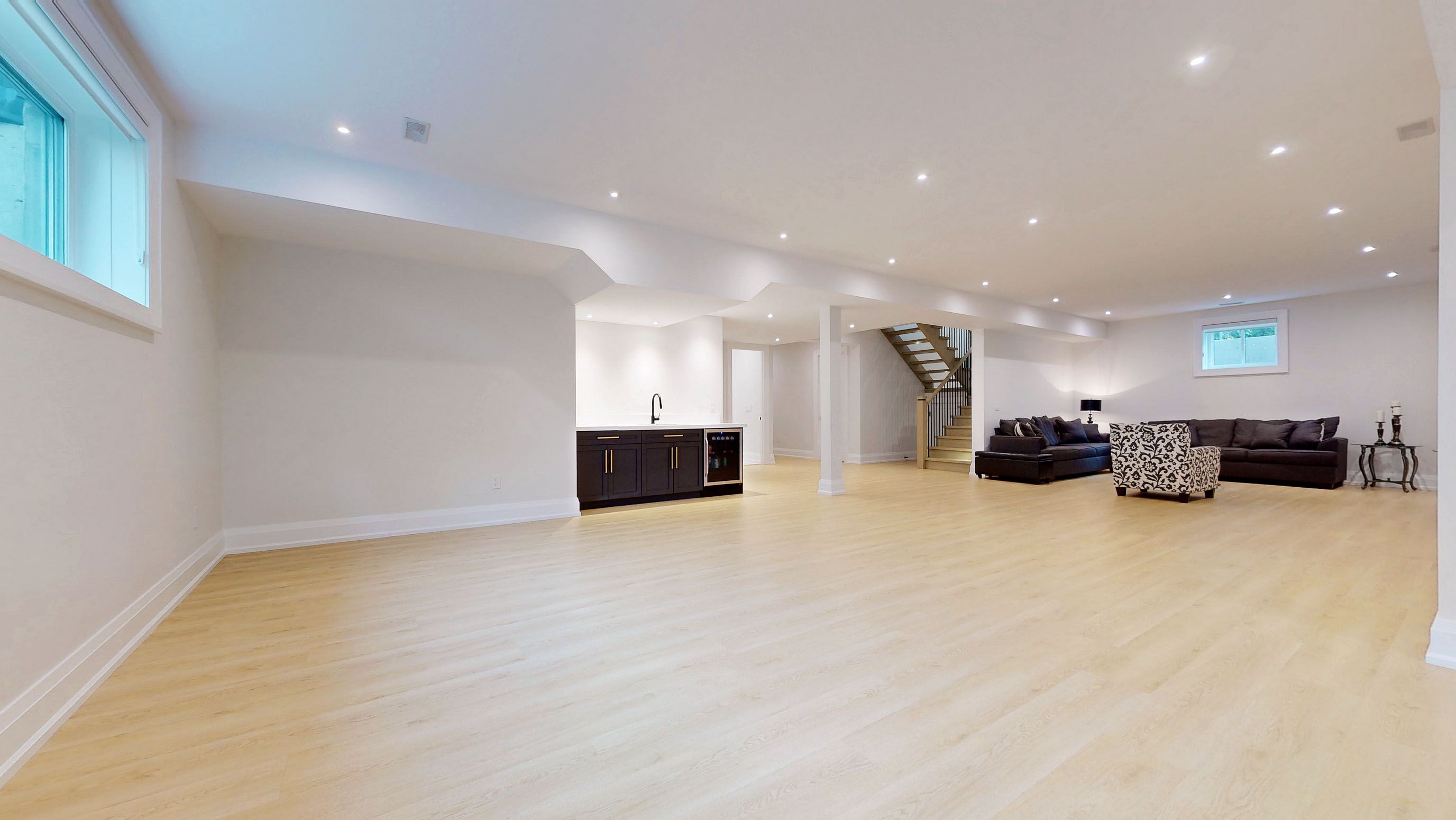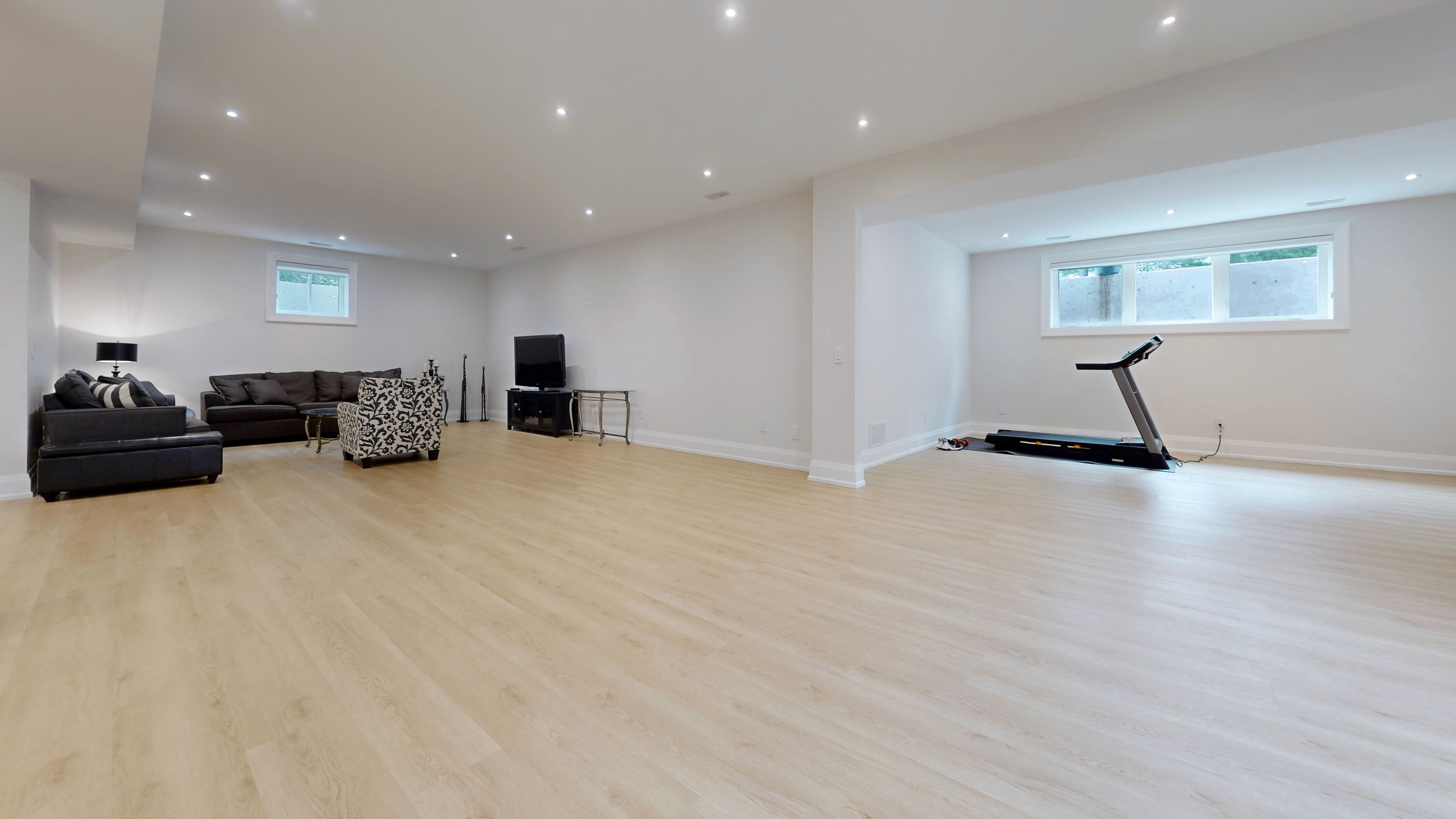 • Fully finished basement with a rec room, fifth bedroom, and exercise area.