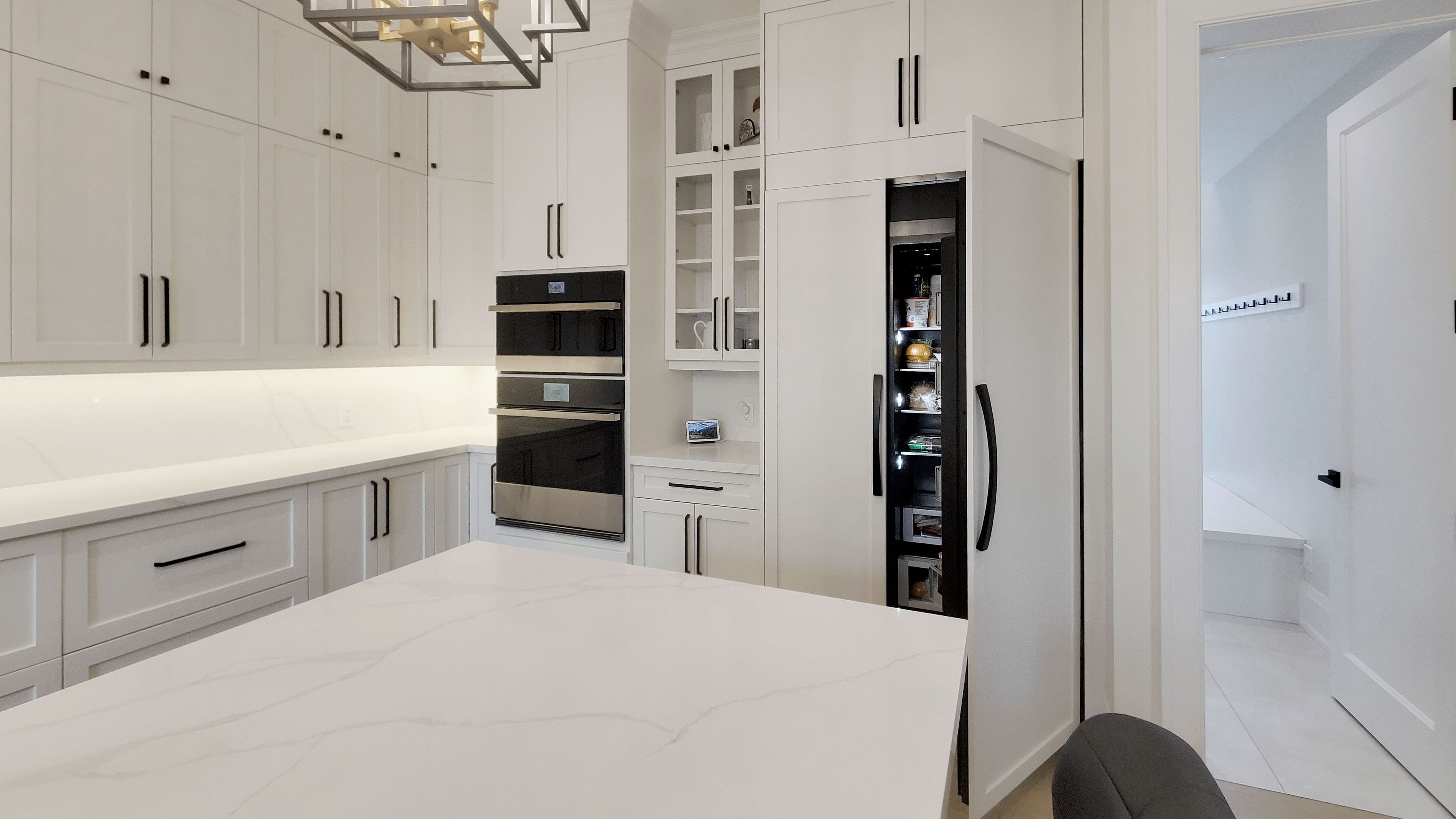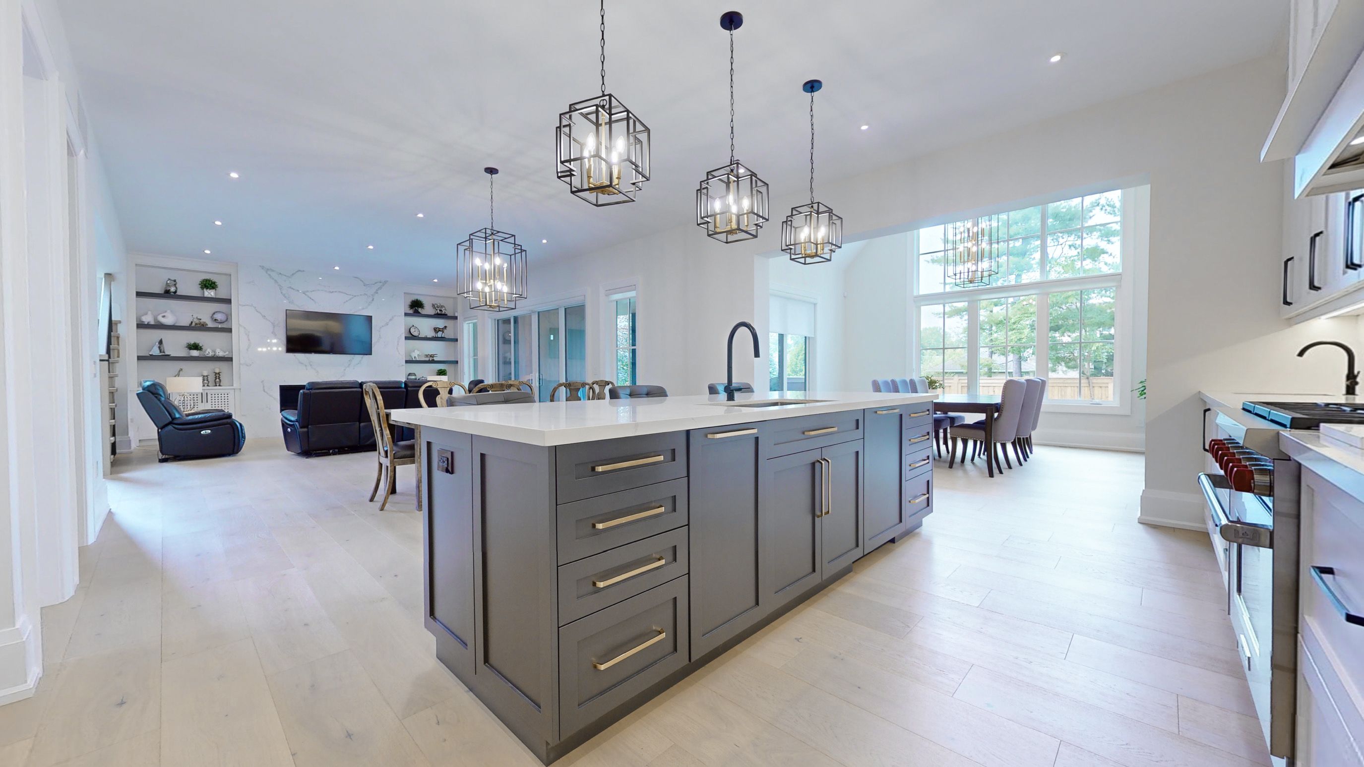 • Impressive kitchen featuring quartz countertops, large island, and built-in appliances.
