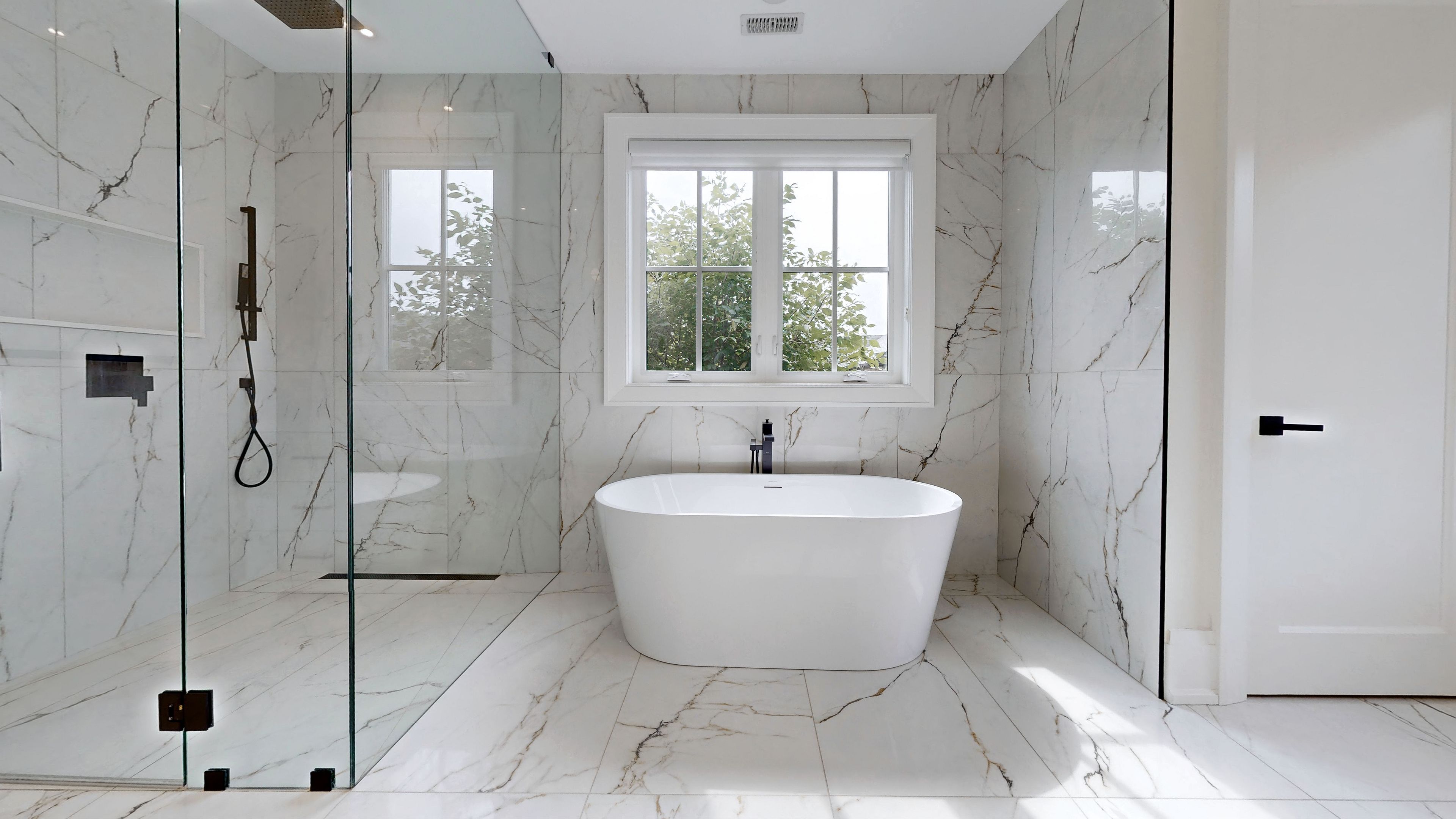 • Gorgeous interior with high-end finishes, including porcelain tiles and wood flooring.