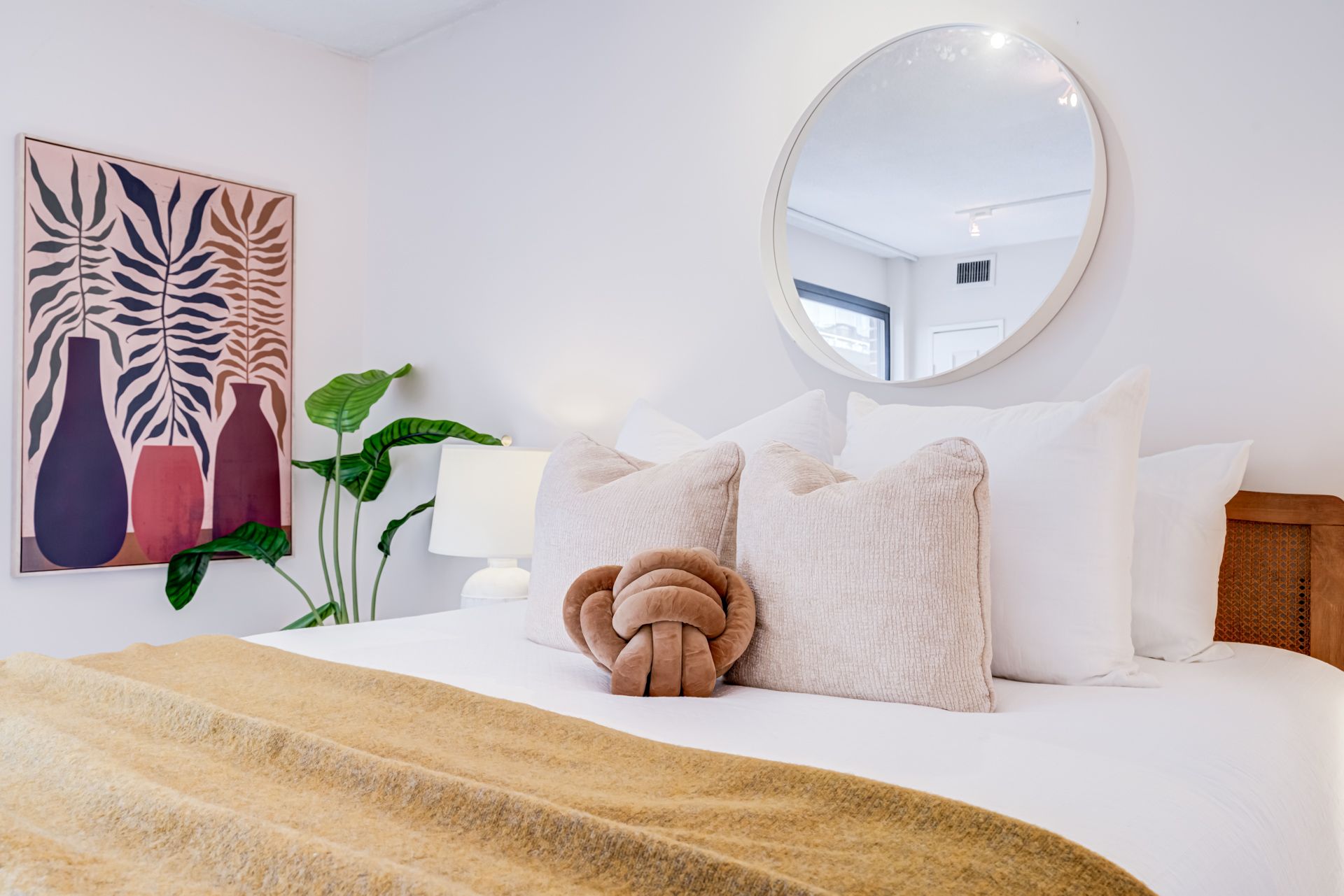 • Bright corner penthouse with high ceilings and spacious open-concept layout.