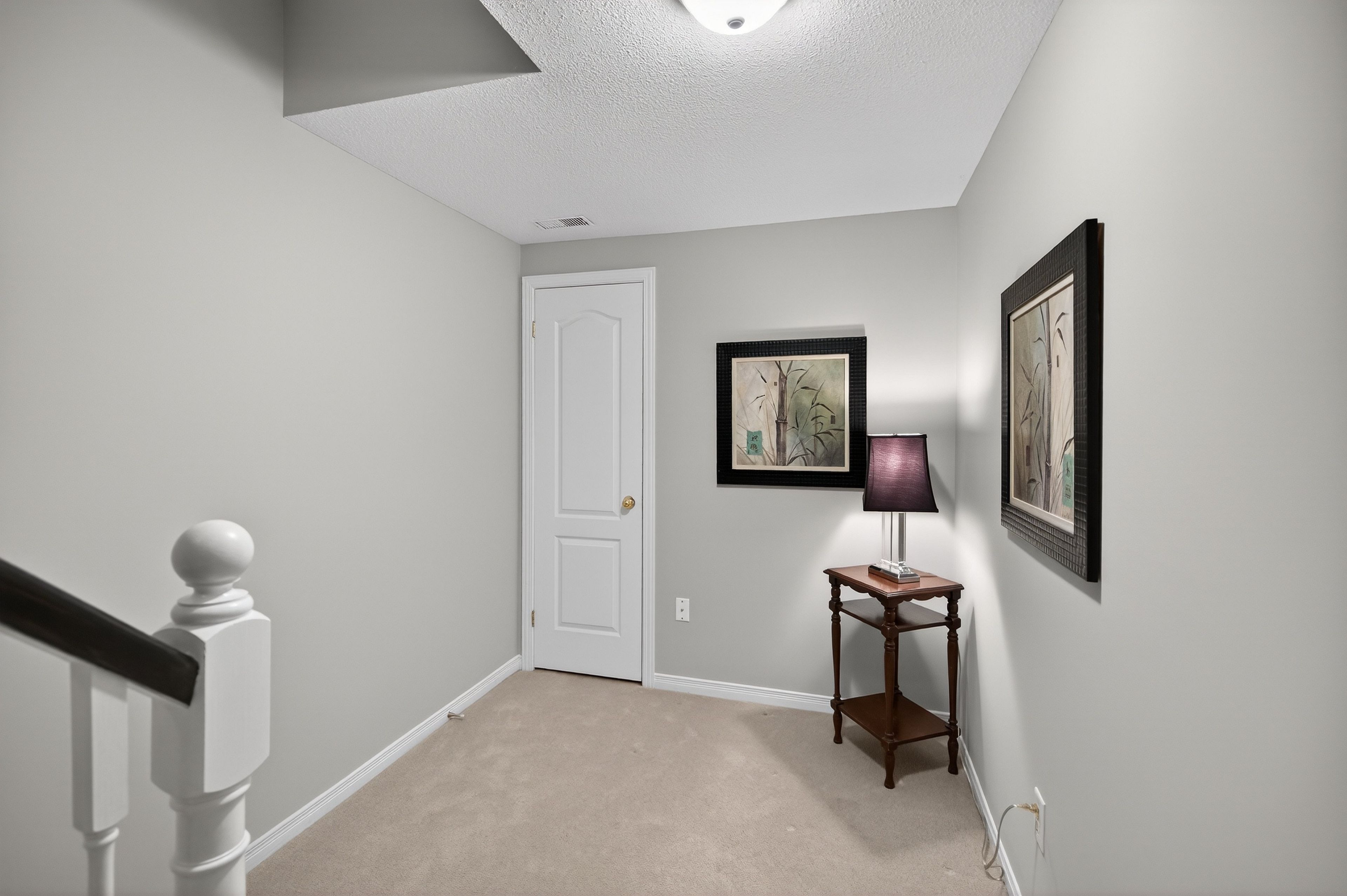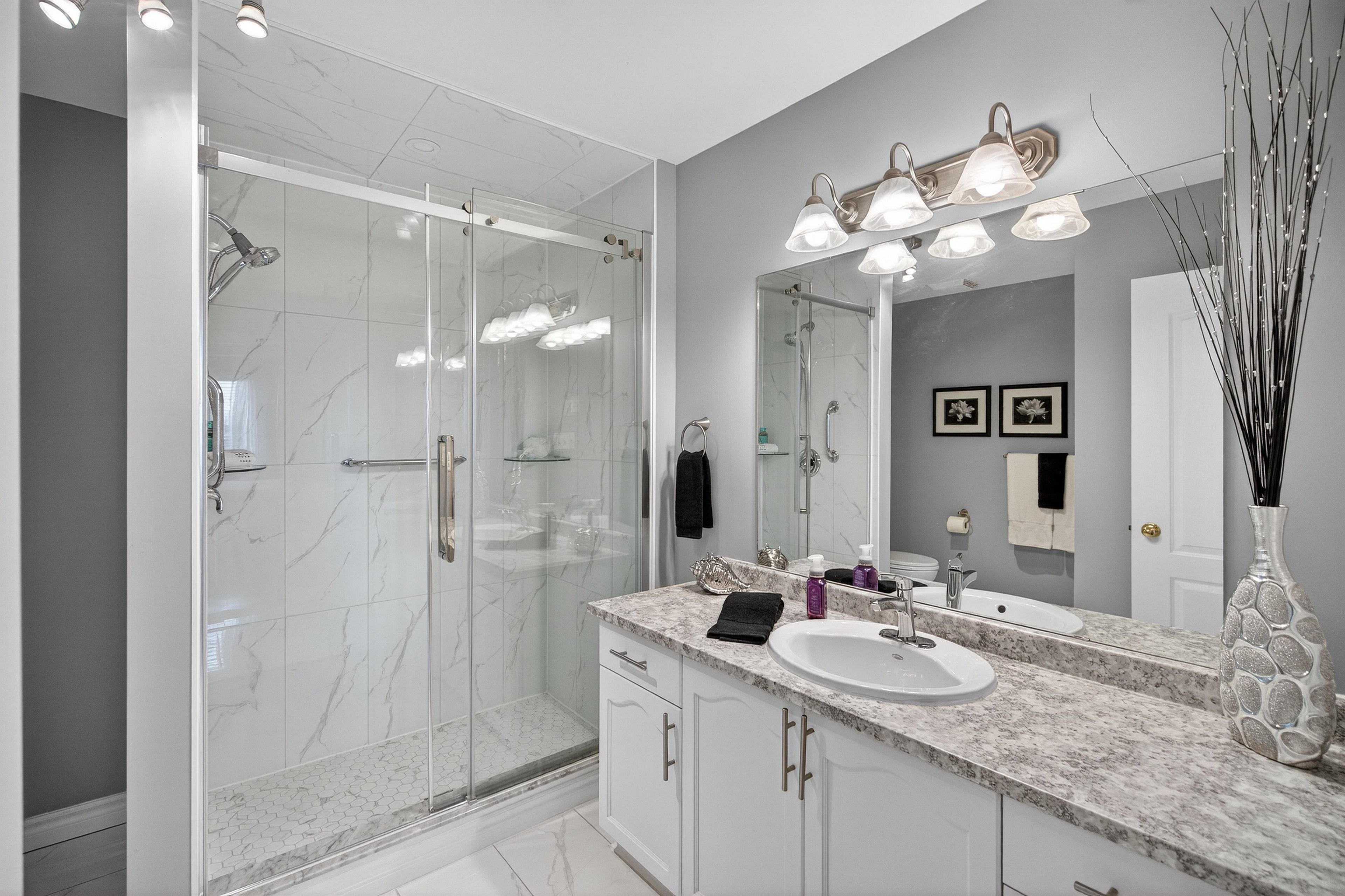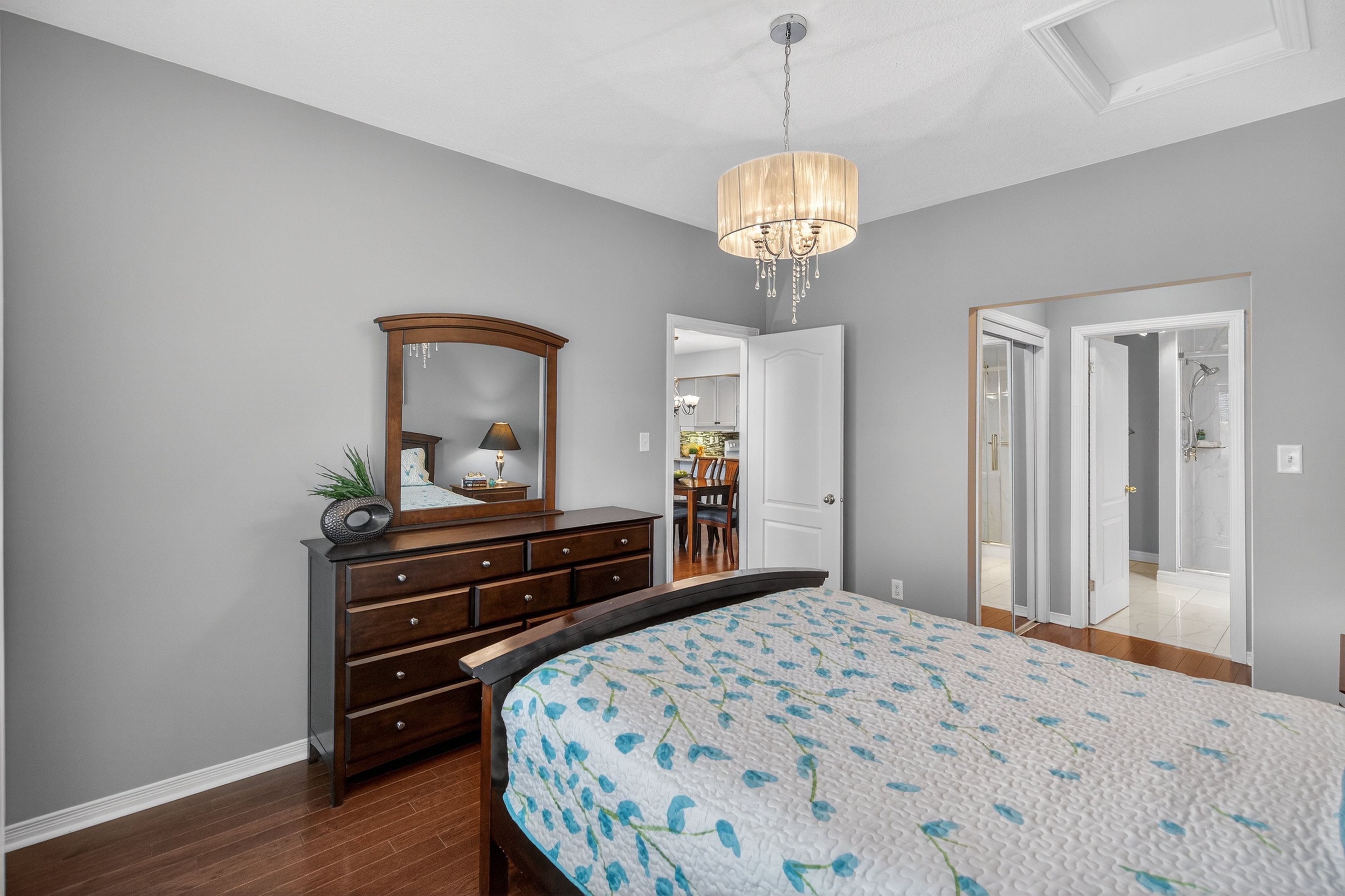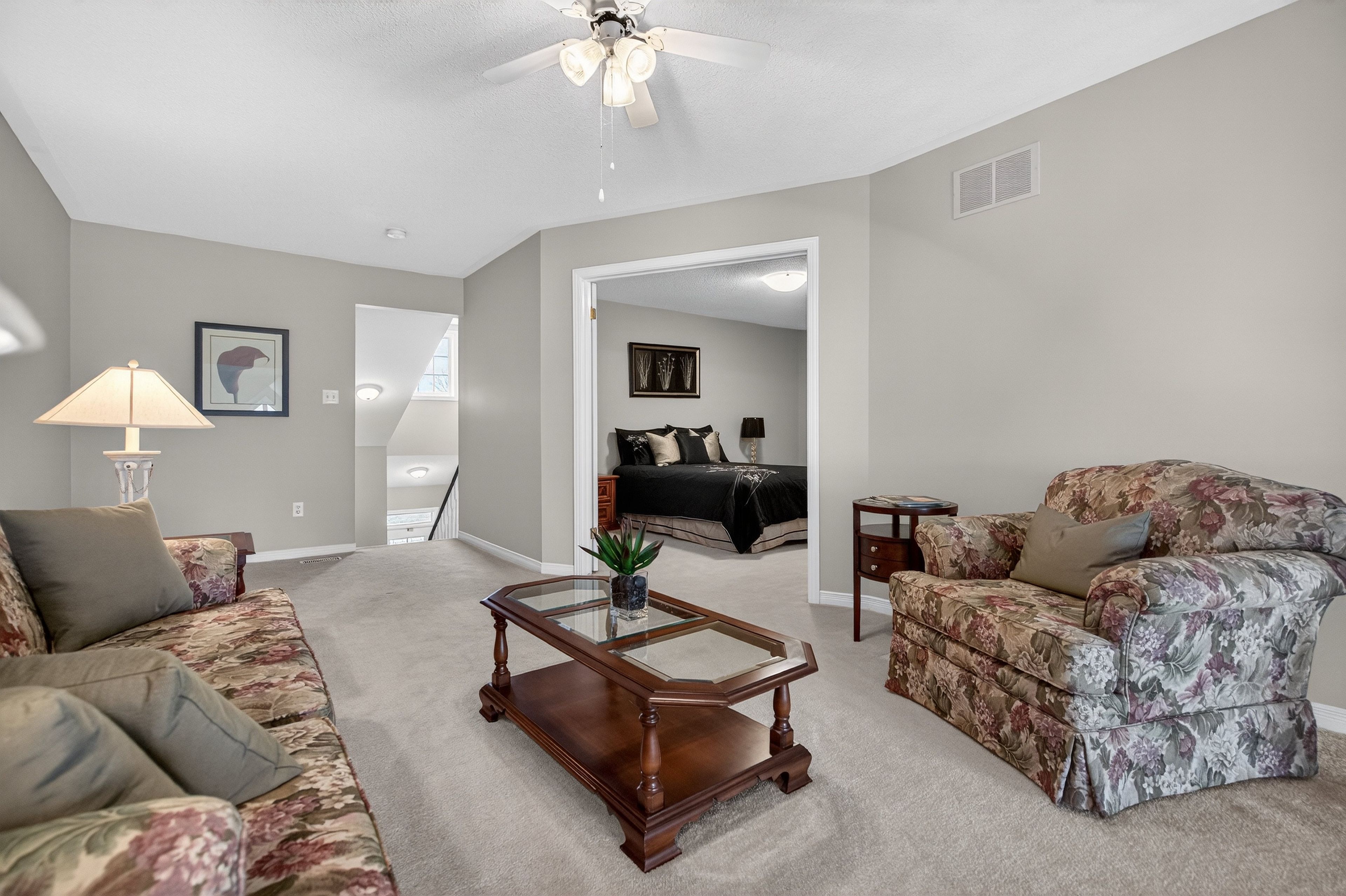 Located in a quiet, well-maintained and highly desirable complex, this 3 bdrm, 2. 5 bath executive bungaloft offers low-maintenance living in the coveted town of ancaster. The attractive ext showcases timeless stone accents, a charming bay window, a covered front porch, & an upper dormer. The property also feat surfaced parking plus a 1-car grg w/ inside entry. Stepping through the front door with bonus phantom screen, a bright & welcoming foyer leads to a thoughtfully designed open-concept layout, feat a well-appointed kitch w/ ample cabinetry & pot lighting. The kitch flows seamlessly into a spacious din area & the stunning liv rm w/ vaulted ceil & oversized windows, cali shutters, & a cozy corner gas fp. Sliding doors lead to a private interlock patio, offering a peaceful outdoor retreat. The main flr is designed for convenient 1 lvl living, feat a front bdrm w/ flex for guests or a home office, a powder rm, main flr laund, & a well-appointed primary w/ dbl closets and an updated 3-piece ensuite with an oversized glass walk-in shower and additional storage cabinetry. Upstairs, the open loft provides a versatile multi-purpose space overlooking the main level, perfect for a variety of purposes. A spacious second-level bedroom offers a walk-in closet and a full 4-piece ensuite, making it an ideal secondary primary suite. The bsmt lvl feat a finished hallway leading to an unspoiled area with a bathroom rough-in, offering excellent potential for future customization. Backing directly onto meadowlands community park with no immediate rear neighbours, this rare offering provides added privacy and a premium setting. Additional highlights include visitor parking, roof shingles replaced approximately 6 years ago, and updated furnace/central air conditioning. Enjoy the convenience of living just minutes to top-rated schools, shopping centres, restaurants, walking trails, parks, and major highway access - all within the highly sought-after meadowlands community of ancaster.