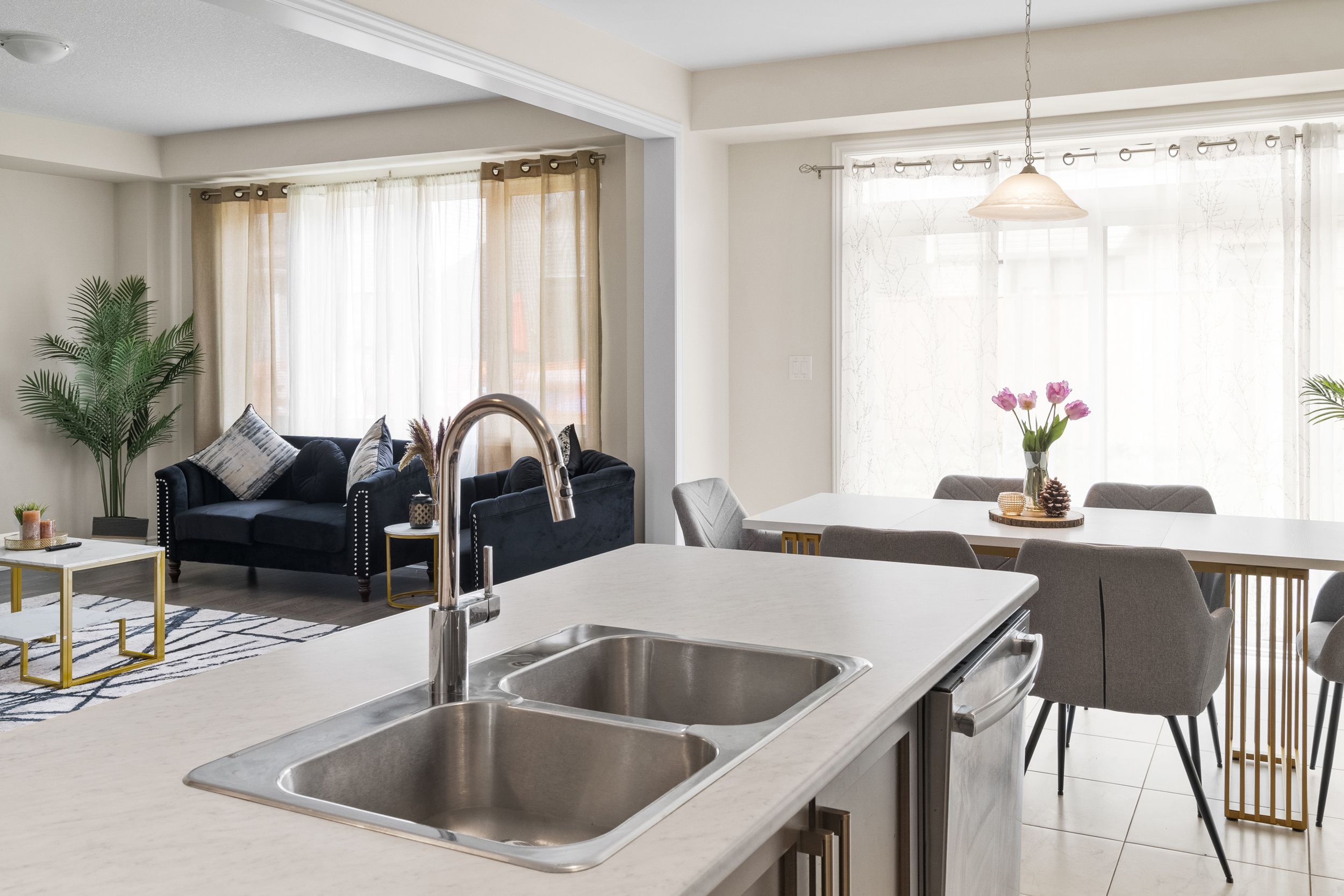 Stunning fully furnished, move-in-ready 4-bedroom detached home in thorold, finished like a model home and professionally designed by an interior designer with all furniture and decor included, what you see is what you get. Featuring a bright open-concept layout with 9-ft ceilings, engineered hardwood floors, a modern kitchen with stainless steel appliances, a large island, and inviting dining and family areas, plus convenient inside access from the garage. The second level offers four spacious bedrooms including a primary suite with a walk-in closet and an ensuite, a second walk-in bedroom, and second-floor laundry. Patio doors lead to a private backyard with a patio ideal for entertaining. The unfinished basement features large windows and a 3-piece rough-in, offering excellent future potential. Ideally located minutes from niagara falls, brock university, niagara college, hwy 406/qew, shopping, dining, parks, and wineries-perfect for families or investors seeking strong short-term rental potential.