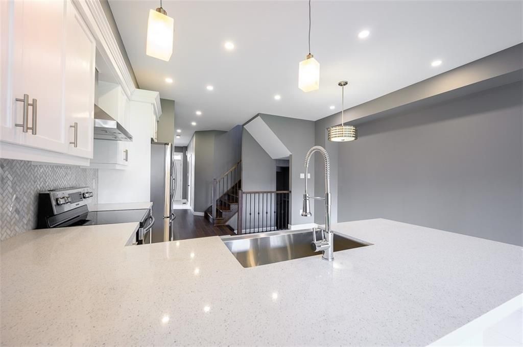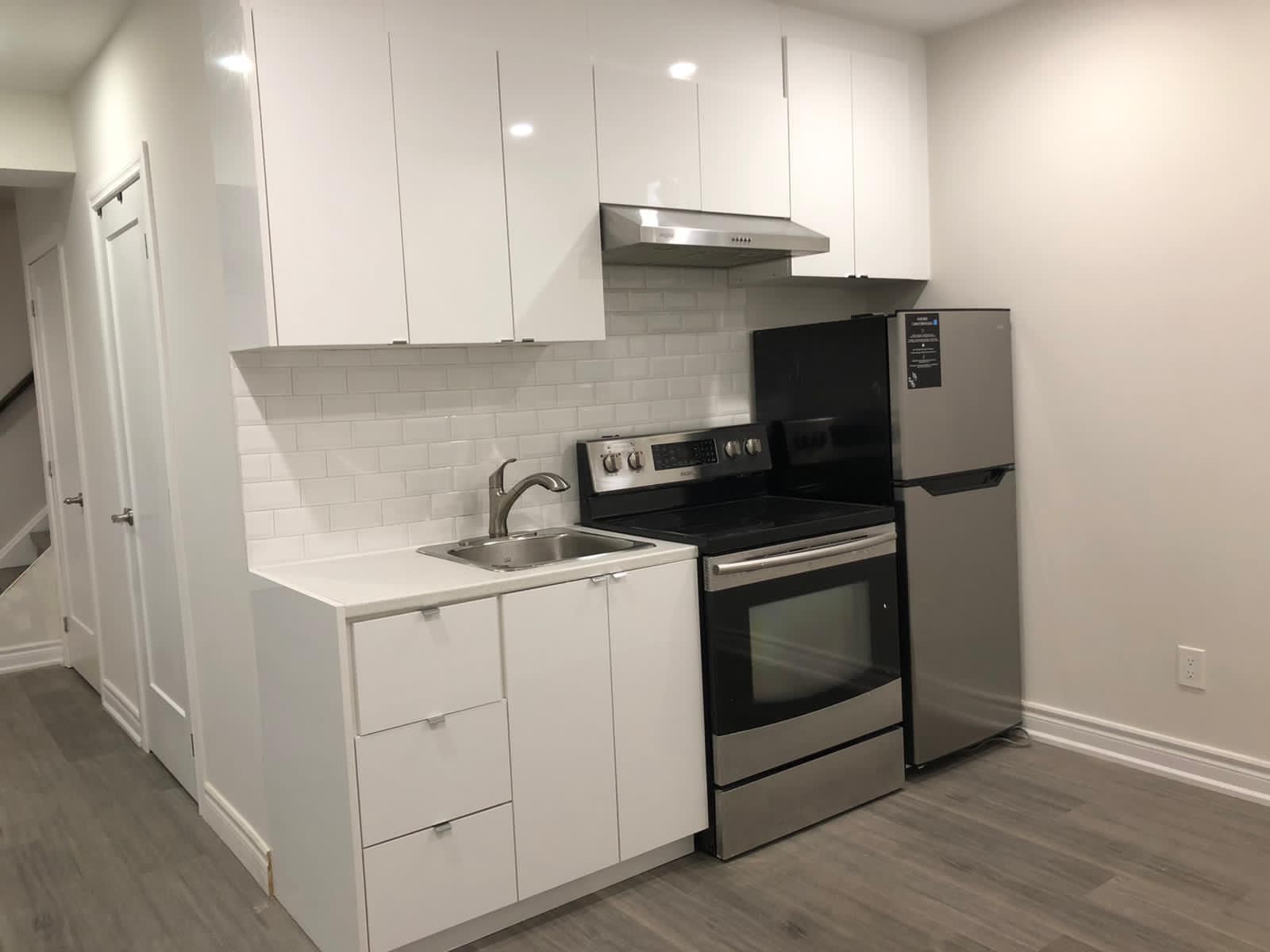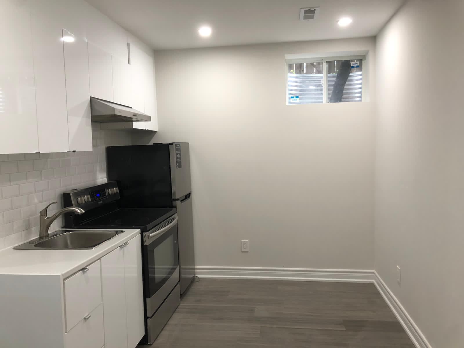 • Finished basement apartment with a complete kitchen and living space.