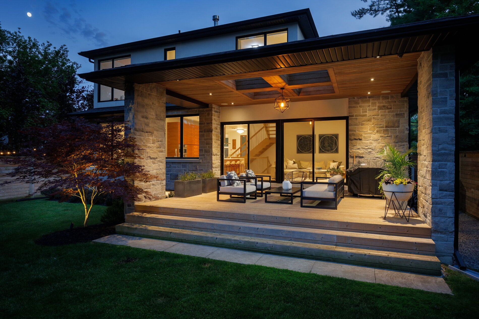 Discover the essence of timelessly designed contemporary living at 2121 harvest dr: a marvel that blends sophistication & modern comfort, nestled on a quiet street within south mississauga's coveted applewood acres. This luxurious 2-storey, 4+1-bed, 5-bath contemporary, sun-drenched home, custom-built in 2016, features just about 5,000 sq ft of total indoor living space on 3 levels & beautifully designed landscaped exteriors with a covered rear deck. It utilizes its remarkable scale to balance family life with space & features for unparalleled entertainment. Every inch of this spacious home is usable for quiet retreat & leisure while merging quality workmanship with clever design - the home's main level features soaring 10-ft ceilings, floor-to-ceiling windows that flood the space with natural light, white oak hardwood floors, solid wood doors, dramatic fireplaces & premium custom built-in walnut finishes throughout. The home's 2nd level features 4 bedrooms & 3 serene, spa-inspired bathrooms. The primary bedroom features a dramatic double-sided gas fireplace, creating a calm, focused space in which to start or end the day. The primary also features a 5-piece ensuite with double sinks & quartz vanities, a standalone soaker tub, & an oversized glass walk-in shower. The primary has the perfect walk-in wardrobe room with floor-to-ceiling, wall-to-wall, his-and-hers, custom walnut cabinetry. Retreat downstairs to the lower level, featuring wide windows for natural light, in-floor heating & white oak hardwood flooring. The lower level includes a spacious media room with custom-built-in walnut cabinetry, built-in speakers, & a designer gas fireplace. Also included is a well-proportioned bedroom with an adjacent 3-piece bathroom. Another unique feature is the sound-treated music studio. The glass-walled gym provides an ideal backdrop in which to be invigorated. After a workout or at the end of a busy day, unwind by the adjacent wet bar with family & friends.