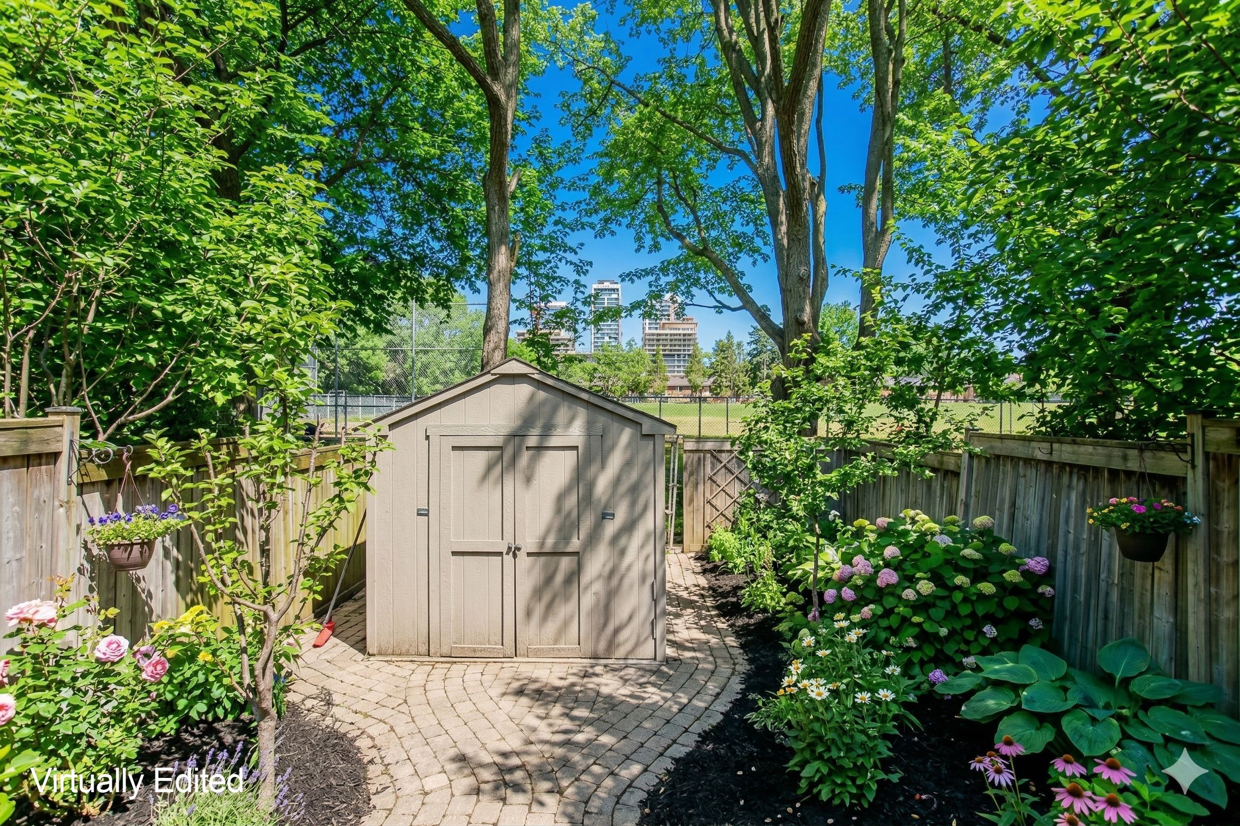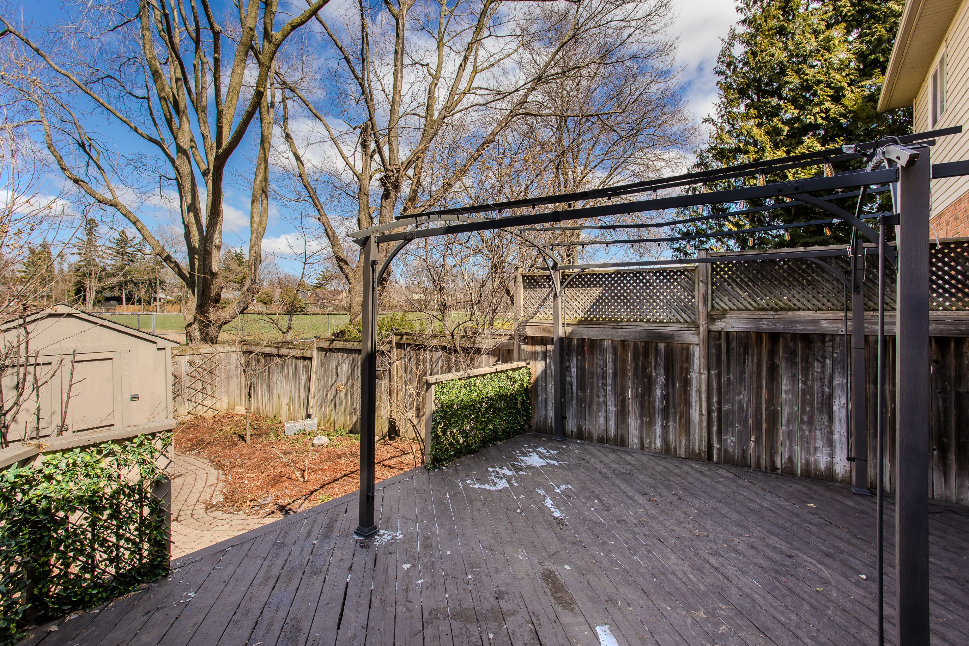 • Fully fenced backyard featuring a deck and direct park access.
