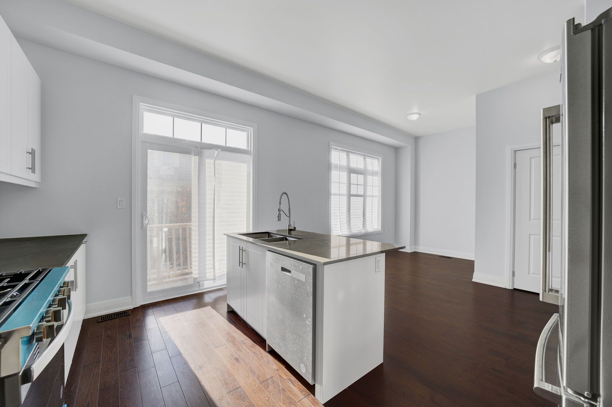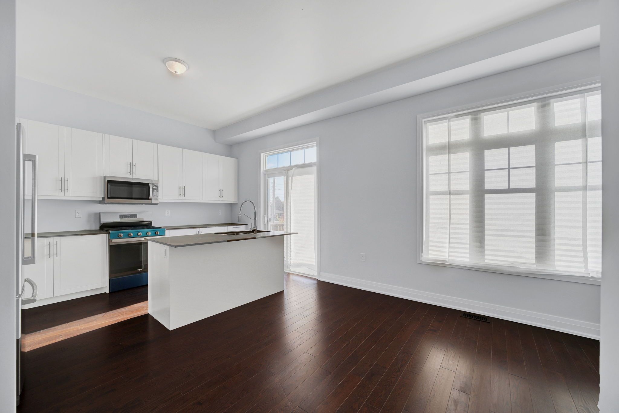 • Open-concept great room and chef's kitchen with modern finishes.