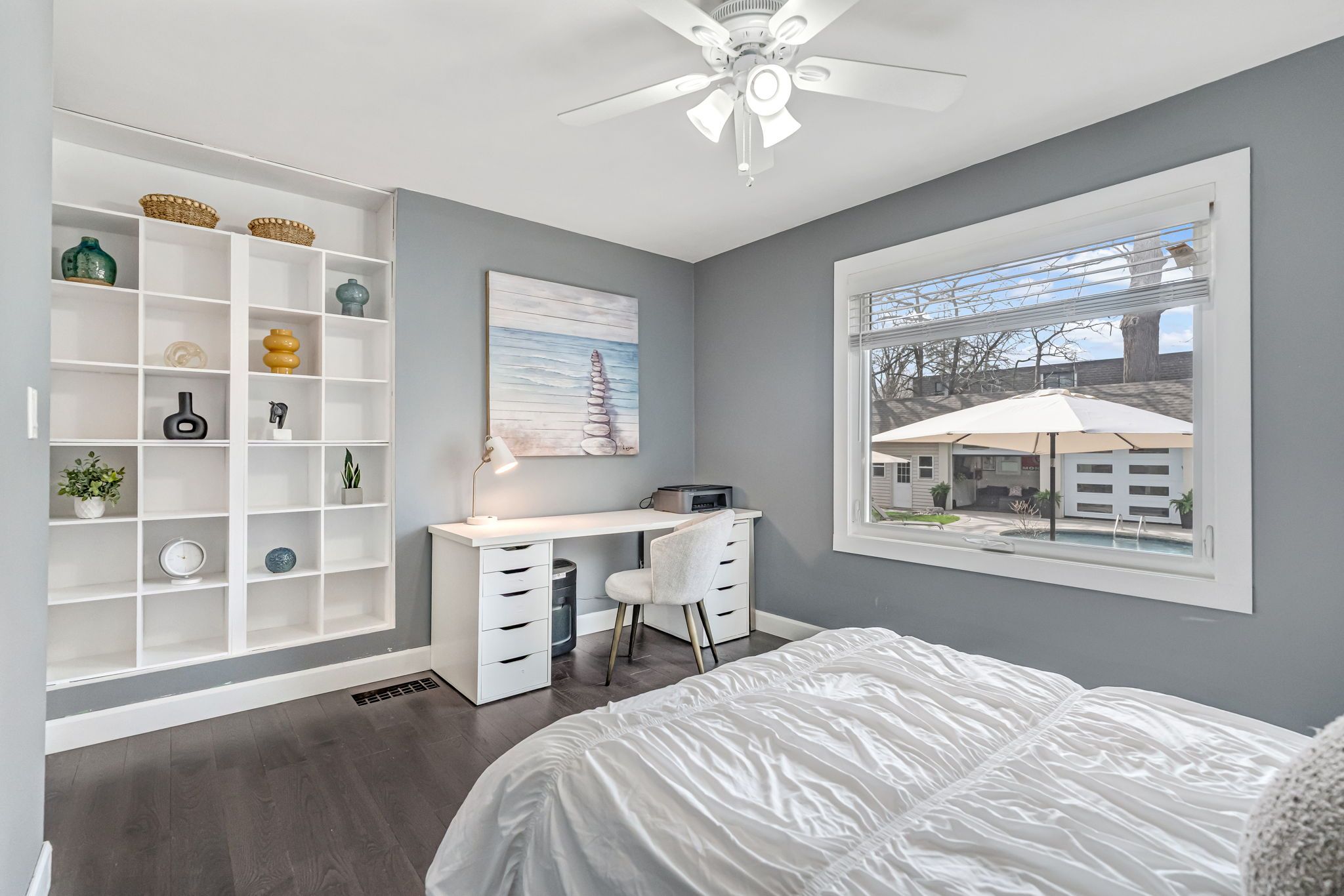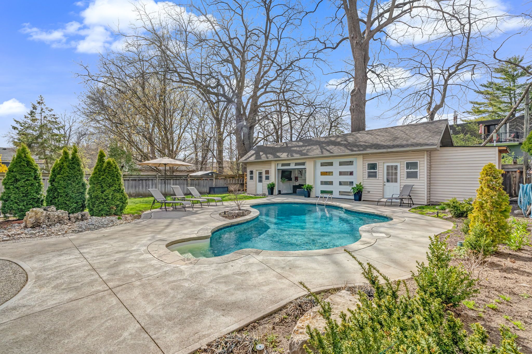 • Backyard oasis with saltwater pool, sauna, and versatile heated pool house.