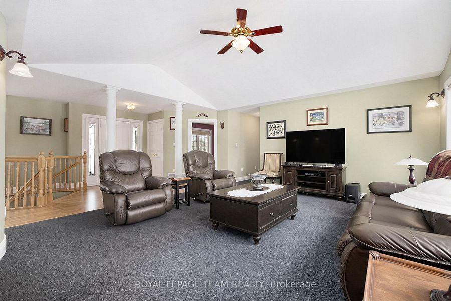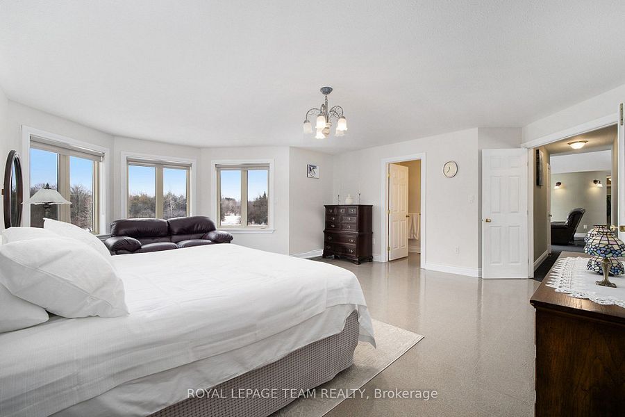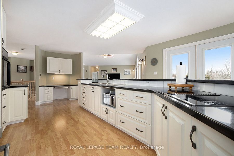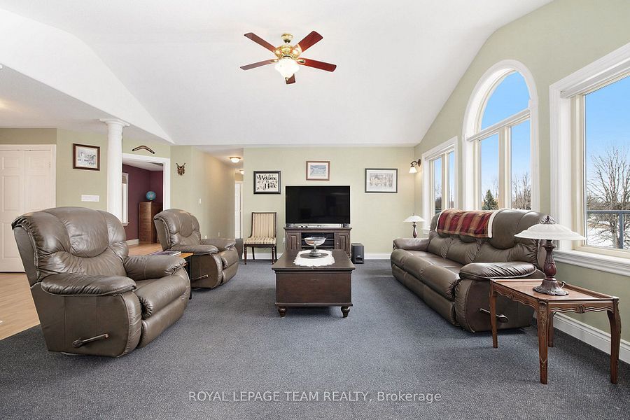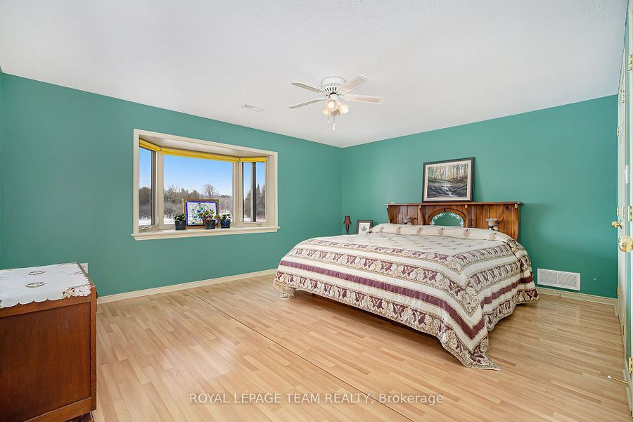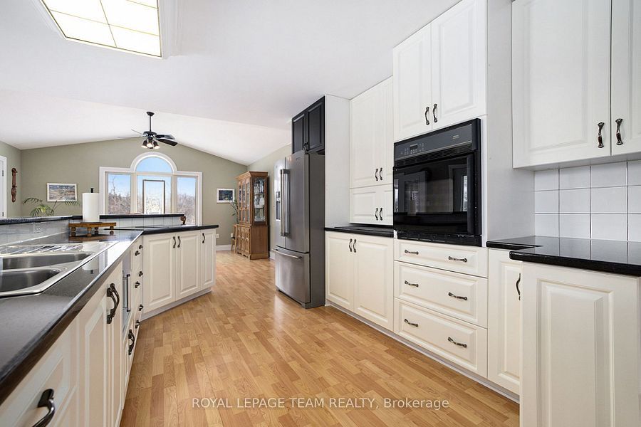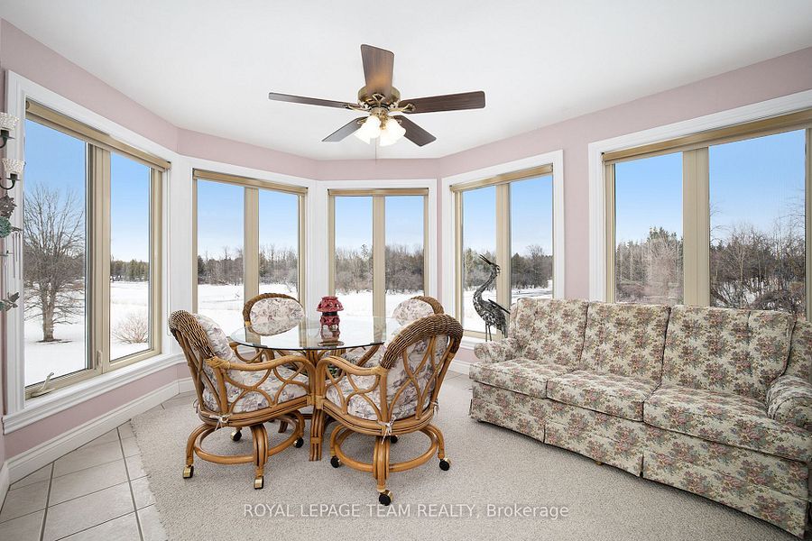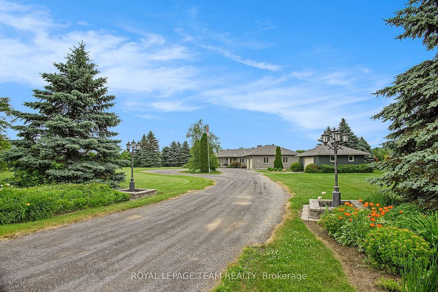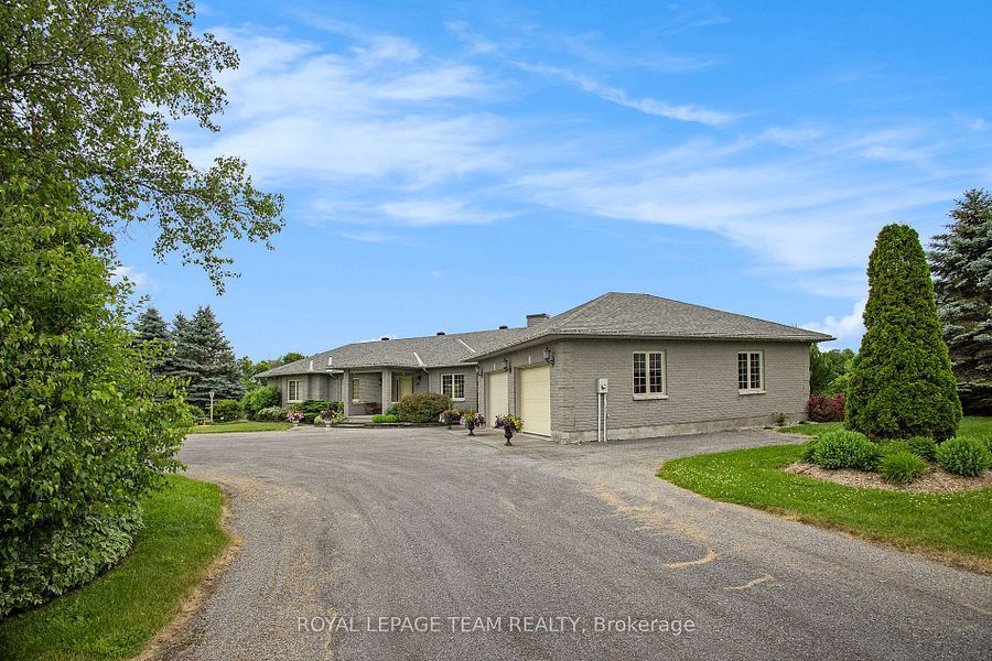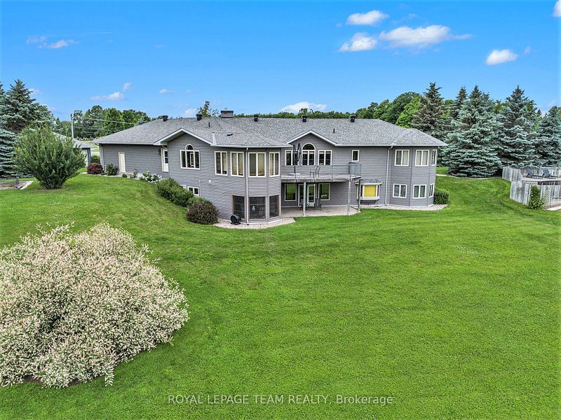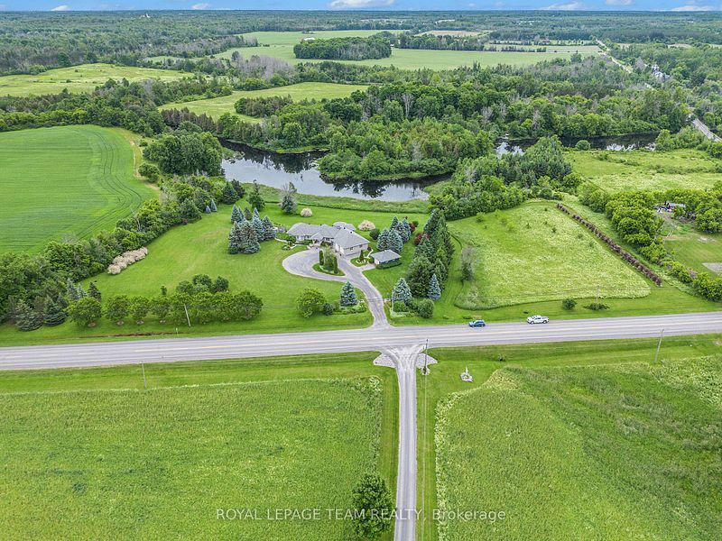 Executive custom-built home located on the south branch of the rideau river, this exceptional home offers approx 4800 square feet of space on a stunning 7+ acre waterfront property. Great opportunity for multi generational family living. Designed to capture breathtaking south-facing views, this home is perfectly positioned to enjoy spectacular morning sunrises and nature viewing from nearly every room. The main level boasts 2,400 square feet of open-concept living with vaulted ceilings in the great room and spacious eat-in kitchen and dining area and access to a four season sunroom. The kitchen features granite counter tops, cooktop and built in oven with generous cupboard space, including access to a butlers pantry . The main area also boasts a large primary suite with a walk-in closet and a 5 piece ensuite with a built-in vanity, . Additional rooms on the main level include 2 additional bedrooms , laundry room, mudroom and a 2 piece bathroom. A grand curved staircase leads to approx 1500 square feet of finished living space which includes a large rec room with a kitchenette/bar area, 2 well sized bedrooms, and a 5 piece bathroom which makes this area a self contained living space for relaxation or entertaining. Additional mechanical and storage room . A highly efficient ground-source geothermal heating and cooling system combined with lower level in-floor radiant heating ensures energy efficient comfort all year round. The attached oversized two-car garage is insulated and provides inside access to both upper and lower levels, while a detached single car garage offers additional storage and workshop space. Outdoor living is just as impressive with a generous upper deck and a lower patio area overlooking the south branch of the rideau river. This rare executive home seamlessly combines energy efficiency and natural beauty, making it a truly exceptional find. To fully appreciate the property make sure to view the attached videos