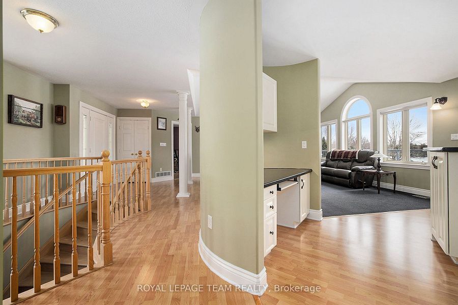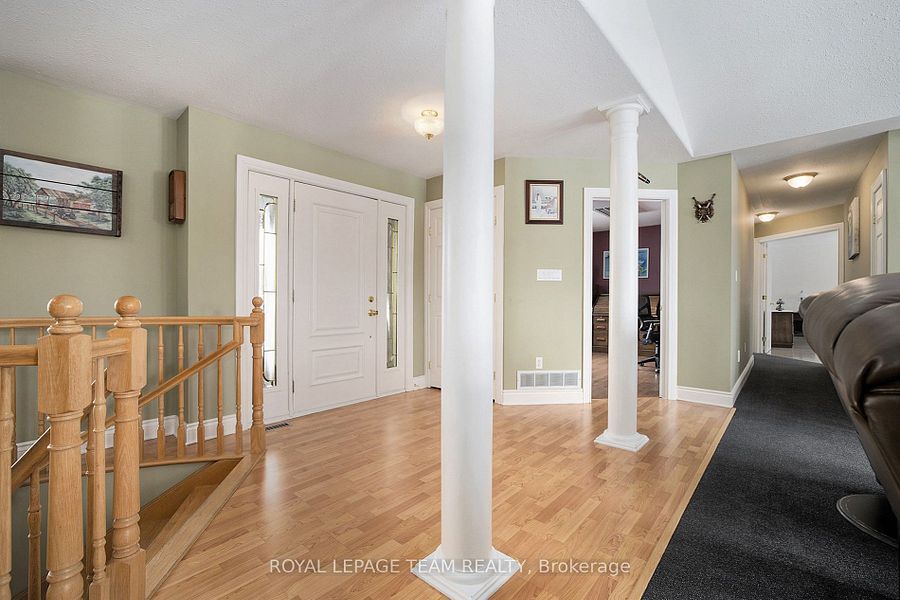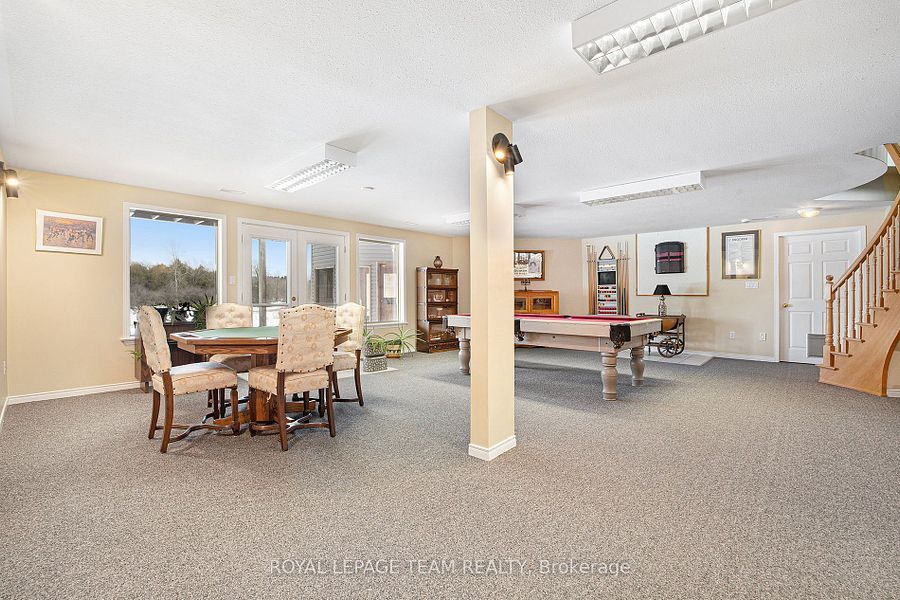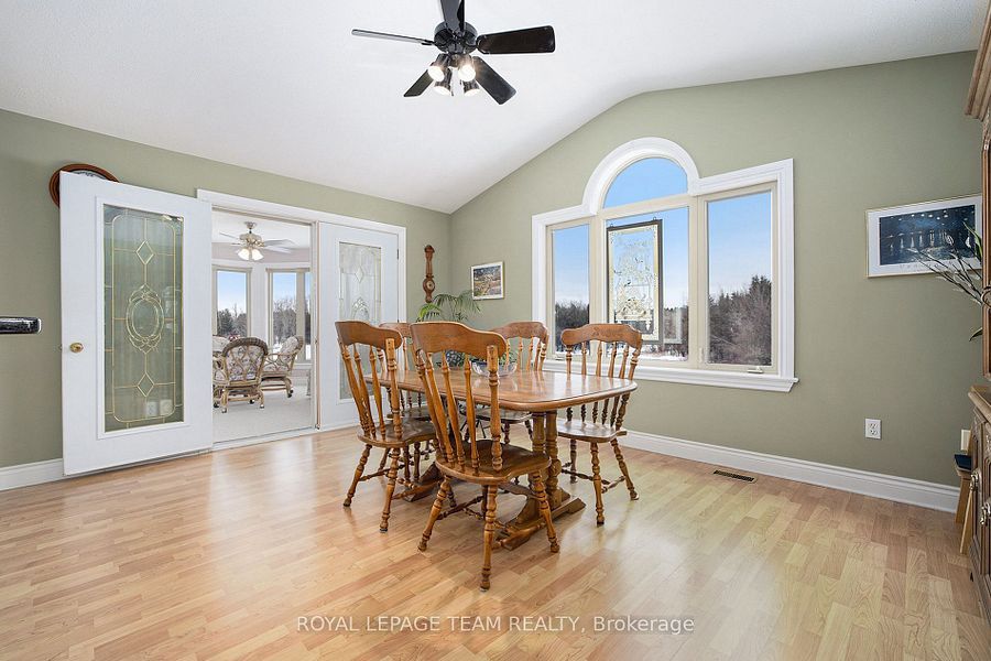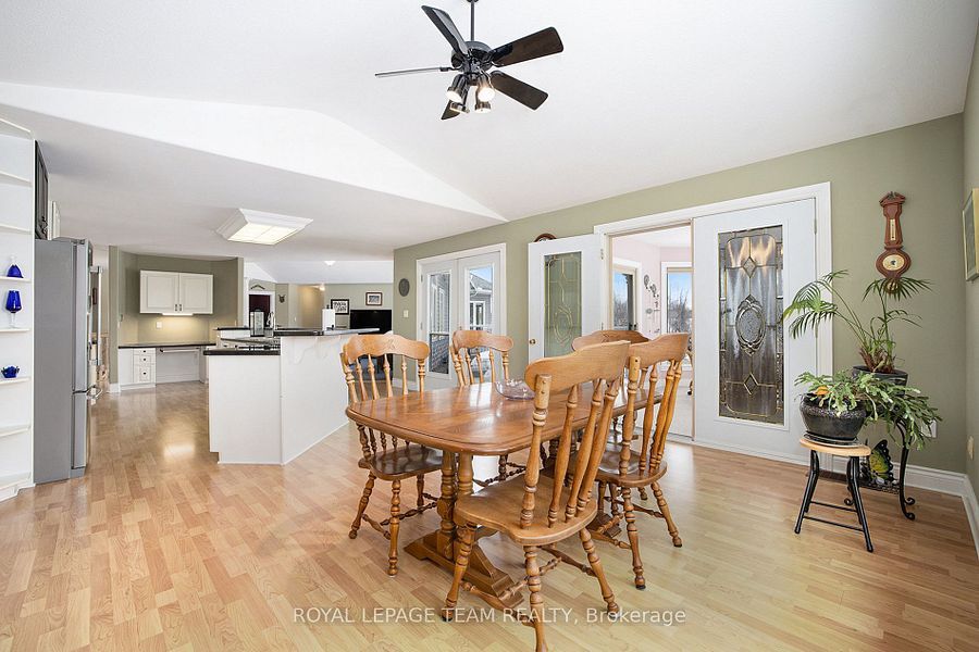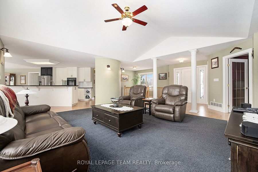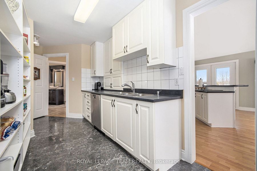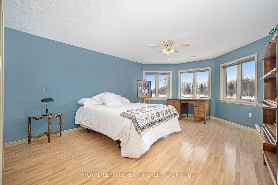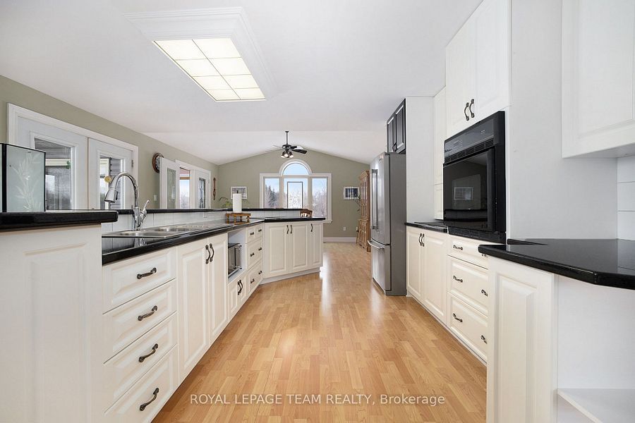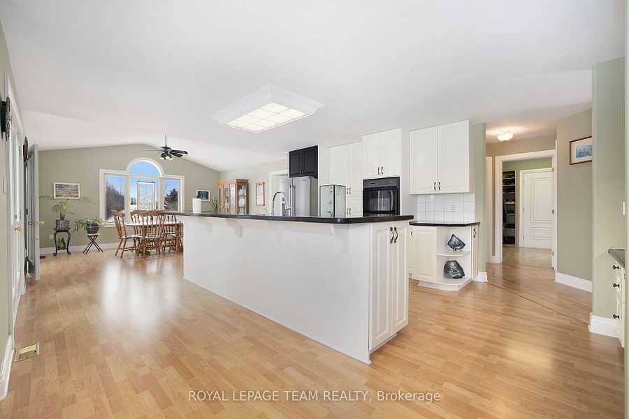 Executive custom-built home located on the south branch of the rideau river, this exceptional home offers approx 4800 square feet of space on a stunning 7+ acre waterfront property. Great opportunity for multi generational family living. Designed to capture breathtaking south-facing views, this home is perfectly positioned to enjoy spectacular morning sunrises and nature viewing from nearly every room. The main level boasts 2,400 square feet of open-concept living with vaulted ceilings in the great room and spacious eat-in kitchen and dining area and access to a four season sunroom. The kitchen features granite counter tops, cooktop and built in oven with generous cupboard space, including access to a butlers pantry . The main area also boasts a large primary suite with a walk-in closet and a 5 piece ensuite with a built-in vanity, . Additional rooms on the main level include 2 additional bedrooms , laundry room, mudroom and a 2 piece bathroom. A grand curved staircase leads to approx 1500 square feet of finished living space which includes a large rec room with a kitchenette/bar area, 2 well sized bedrooms, and a 5 piece bathroom which makes this area a self contained living space for relaxation or entertaining. Additional mechanical and storage room . A highly efficient ground-source geothermal heating and cooling system combined with lower level in-floor radiant heating ensures energy efficient comfort all year round. The attached oversized two-car garage is insulated and provides inside access to both upper and lower levels, while a detached single car garage offers additional storage and workshop space. Outdoor living is just as impressive with a generous upper deck and a lower patio area overlooking the south branch of the rideau river. This rare executive home seamlessly combines energy efficiency and natural beauty, making it a truly exceptional find. To fully appreciate the property make sure to view the attached videos