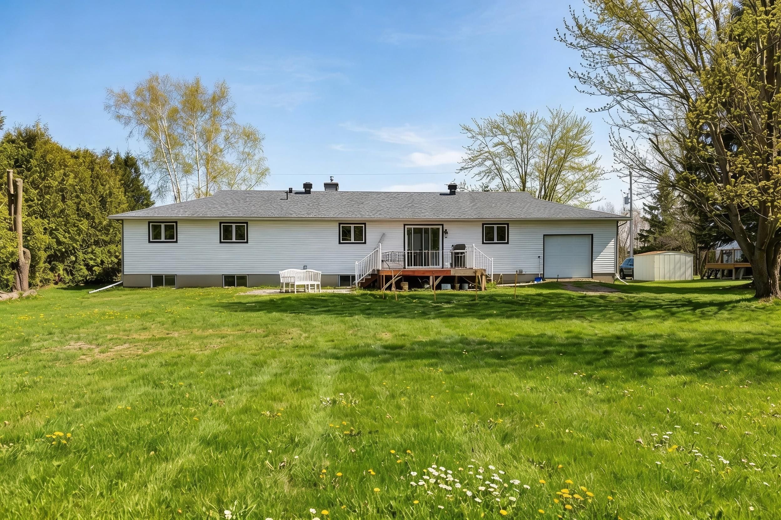 Absolutely stunning 3+1 bedroom upgraded bungalow perfectly situated on a quiet street in the heart of bourget, directly across from the park, community centre, baseball and soccer fields, and just steps to the bourget station recreational trail. With snowmobile trails nearby and village amenities within walking distance, this location offers an unbeatable lifestyle. From the moment you enter, the home impresses with gleaming hardwood and ceramic flooring flowing throughout the open-concept living, dining and eat-in kitchen. Designed to entertain and inspire, the gourmet kitchen features quartz countertops, abundant cabinetry with soft-close drawers, generous prep space, a gas range, and a convenient pot filler tap-bringing both style and function together seamlessly. The main floor offers three generous bedrooms, including a bright and spacious primary retreat complete with walk-in closet and a beautifully updated ensuite showcasing a massive walk-in shower. The updated main bathroom includes double sinks, and main floor laundry is ideally located next to the mudroom, with access to a second staircase leading to the fully finished lower level. Downstairs, the bright and versatile basement delivers exceptional space with a large family room anchored by a cozy gas fireplace, an additional bedroom, a den perfect for a home office or gym, a stylish 3-piece bath, and an expansive storage room. With two separate staircases, the layout is ideal for in-law, guest, or multigenerational living. Car enthusiasts and hobbyists will appreciate the rare offering of three attached heated garages-two at the front and one rear garage connected from inside-plus a double detached garage with electricity. The mostly fenced yard completes this incredible package. A rare bourget opportunity offering space, flexibility, luxury finishes and location-this one truly stands out. This isn't just a house - it's where life happens.