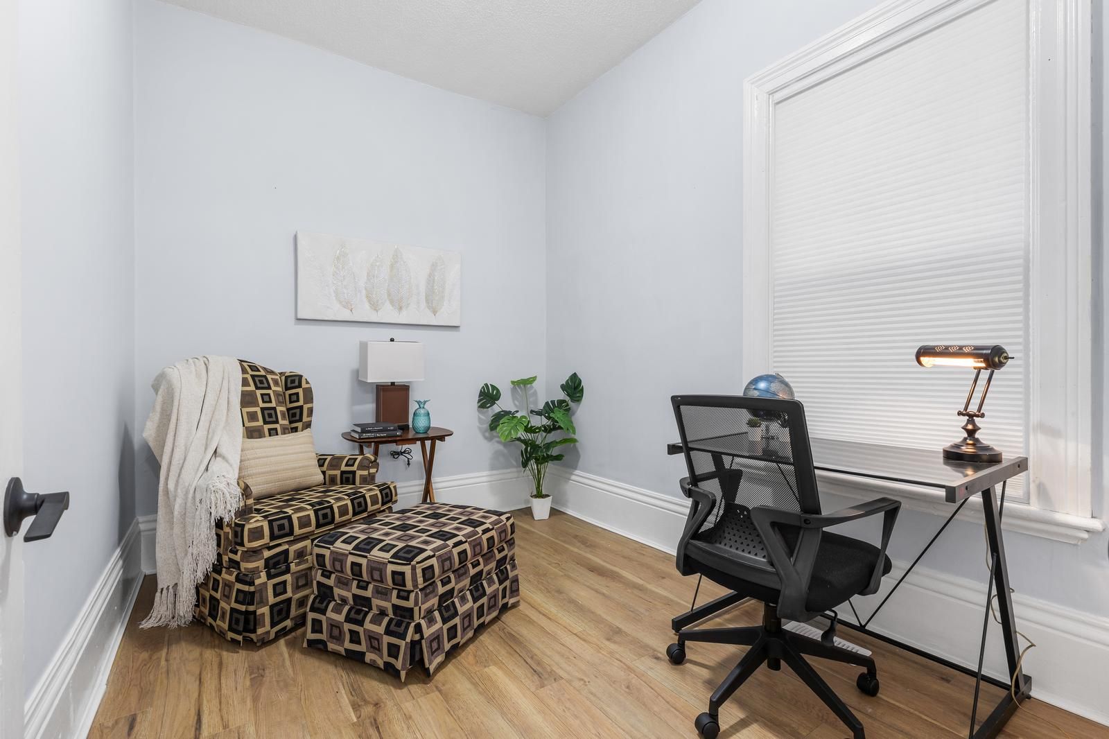 Welcome to this tastefully updated and move-in ready home that offers flexible living space - use it as a 4-bedroom plus den or a full 5-bedroom layout to suit your needs. The interior features large, airy rooms with soaring ceilings, fresh paint, and an updated kitchen perfect for everyday living or entertaining. Enjoy the convenience of main-level laundry and two full bathrooms. Whether you're looking for a spacious family home or a turnkey investment property, this home fits the bill. It was most recently used as a 5-bedroom student rental, generating a solid income of $3,650/month. Outside, you'll find a large, fully fenced yard-great for kids, pets, or gatherings-plus a gravel-topped parking pad accessible through double gates at the rear of the property via a rear laneway. There's also plenty of street parking and the home is across the road from a park. Updates include electrical, furnace, fence and gates, kitchen cabinets & counters, 3-piece bathroom vanity, faucet & mirror, and more. Don't miss this opportunity to own a refreshed, high-potential home with multiple living and income options!