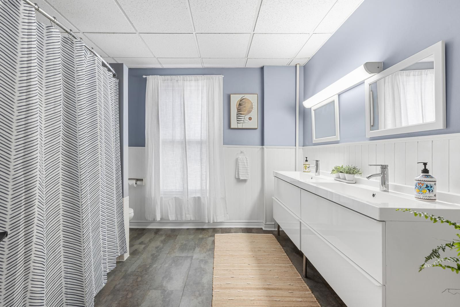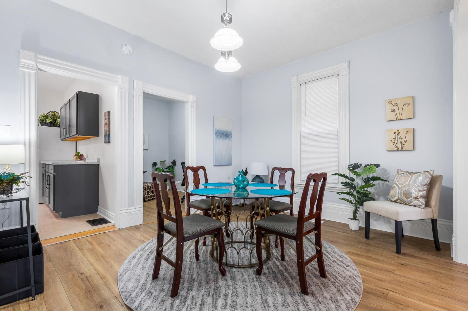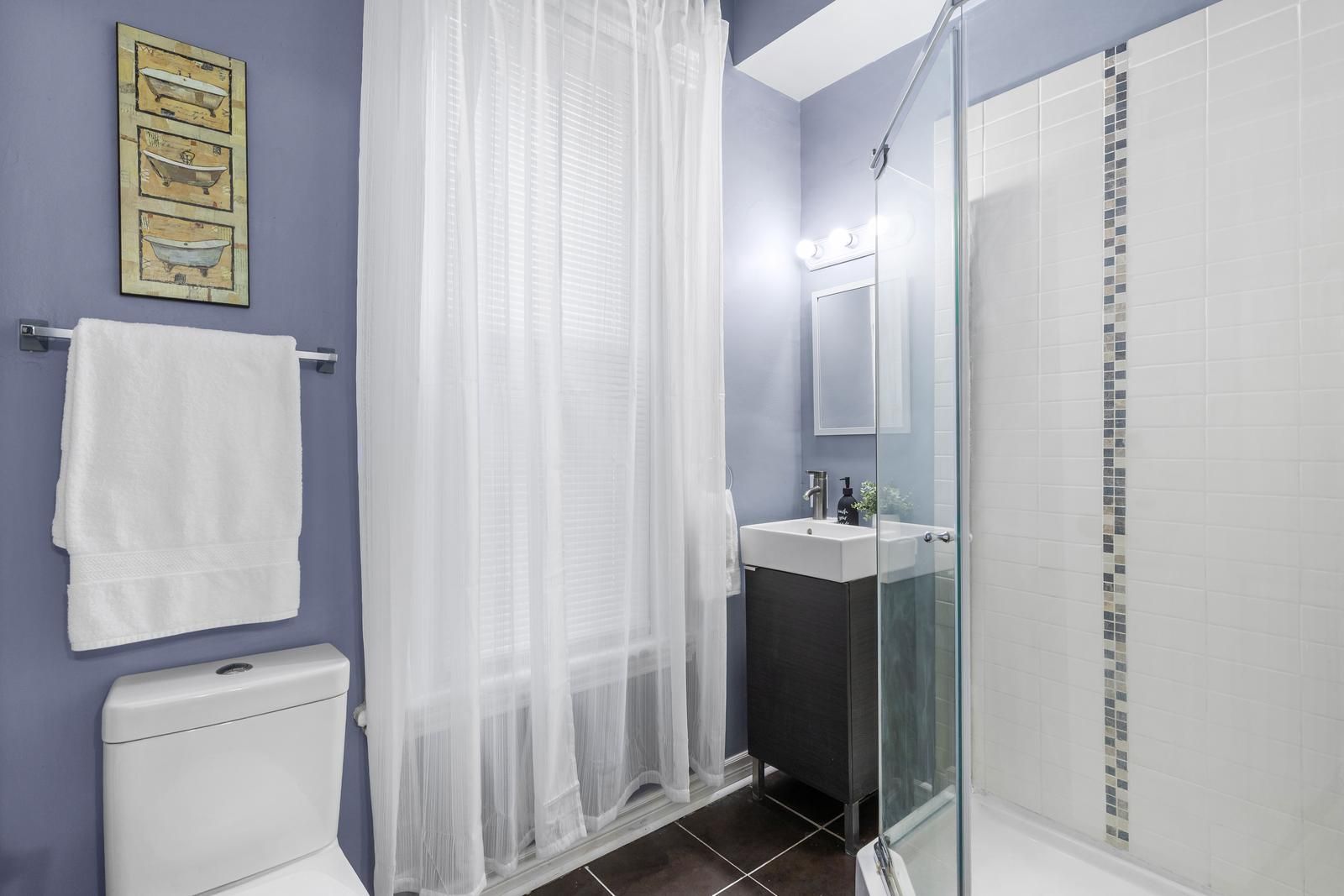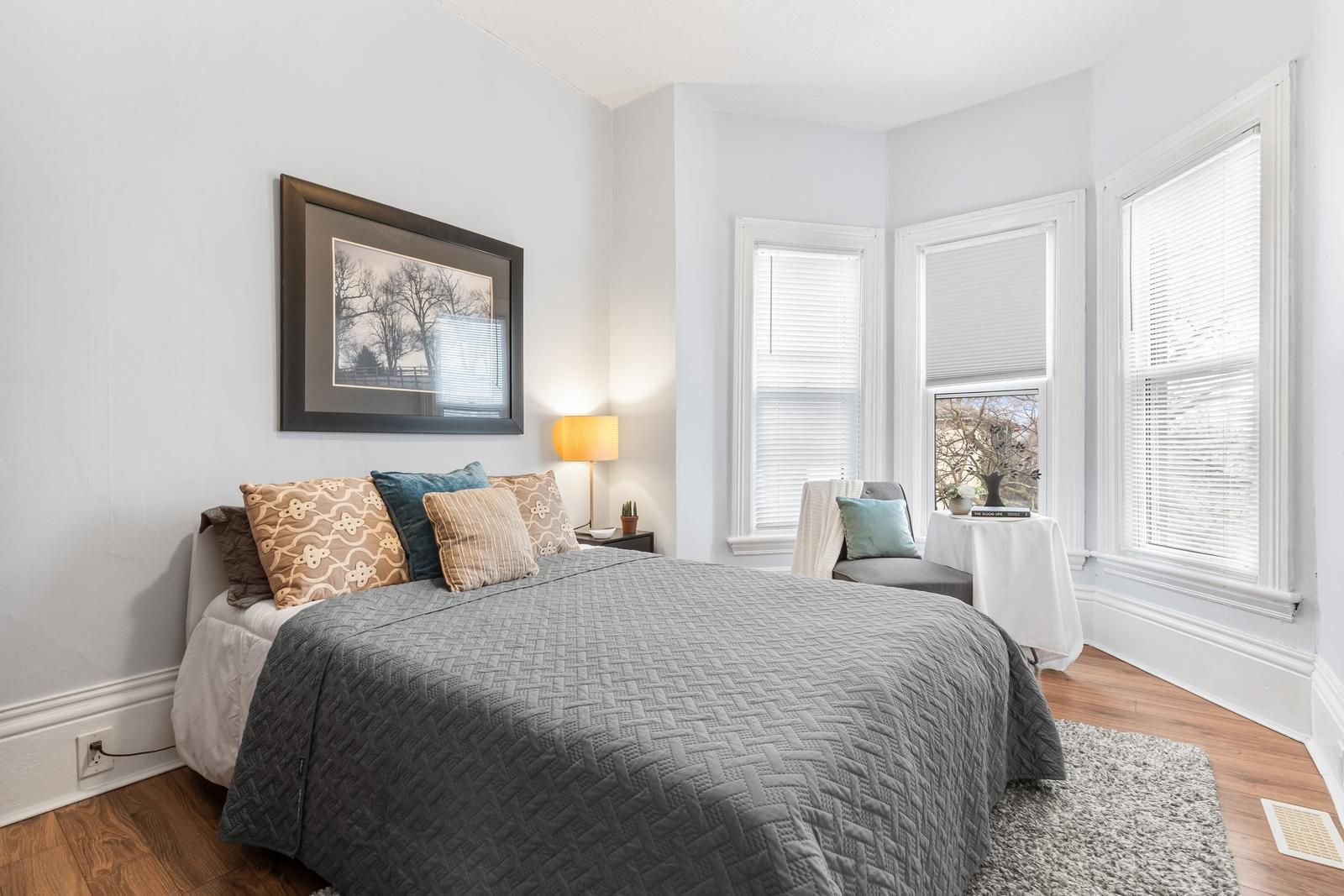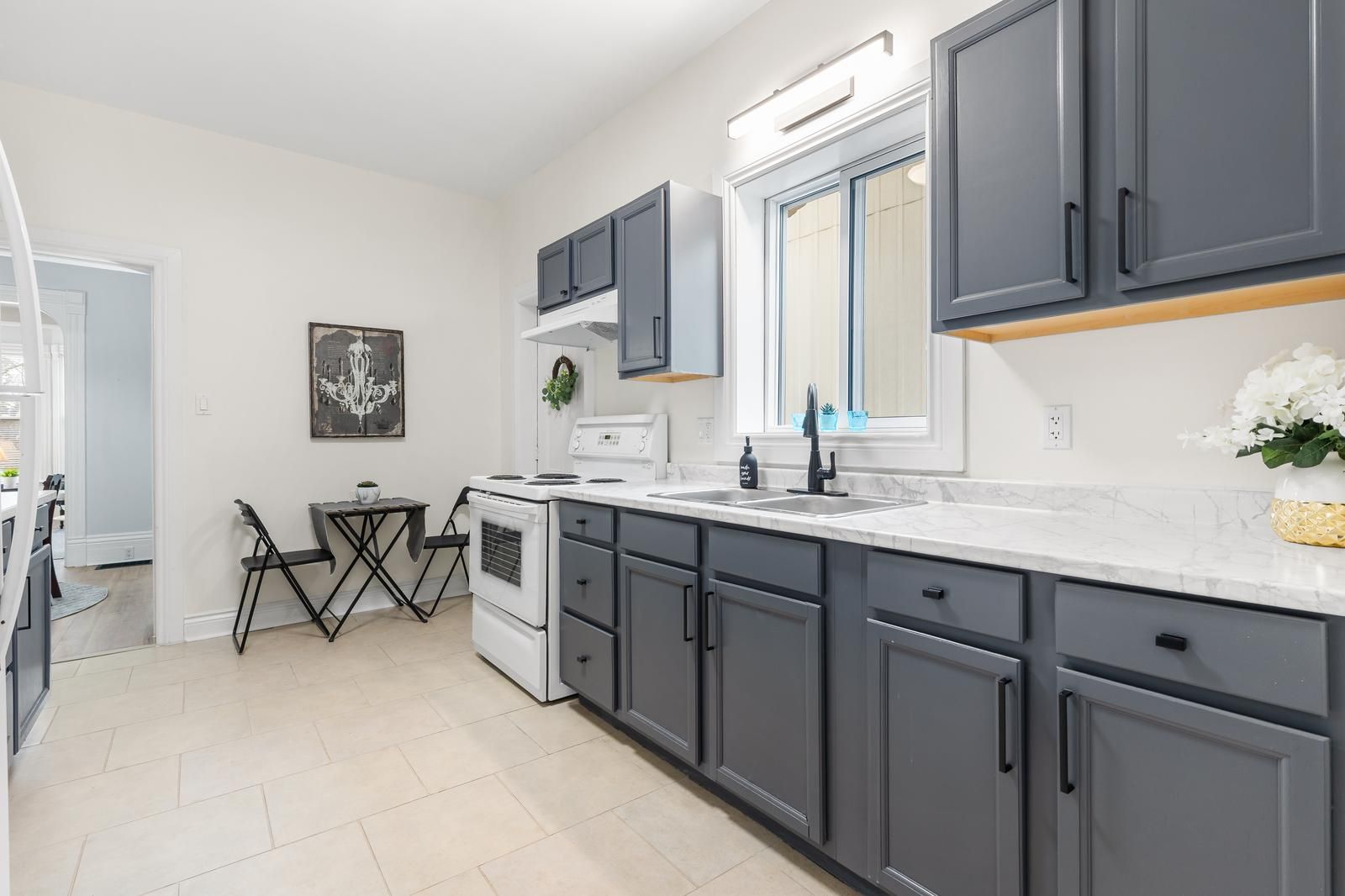• Updated kitchen and large rooms with high ceilings for comfortable living.