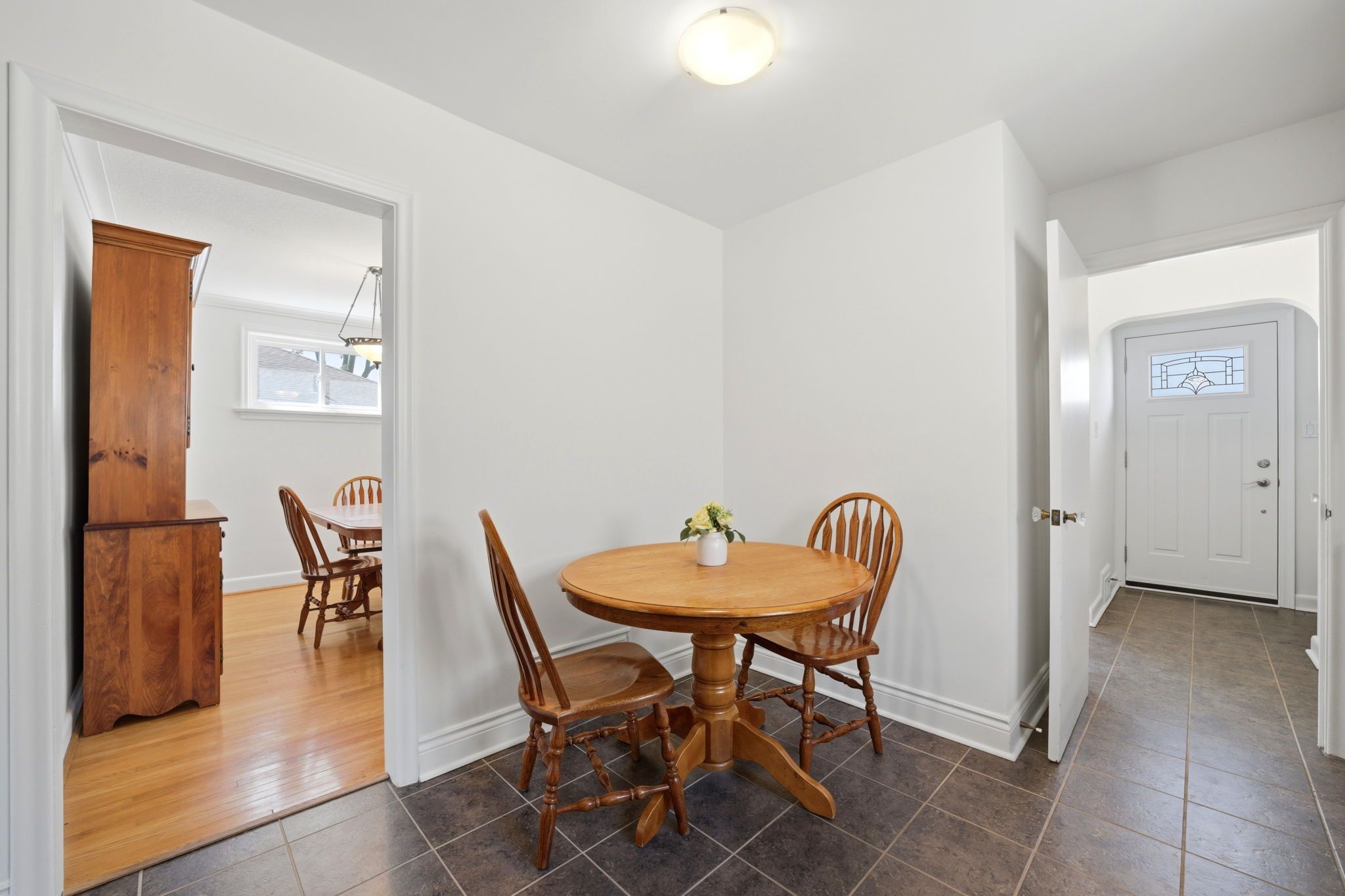 • Renovated eat-in kitchen with stainless steel appliances and ample storage.