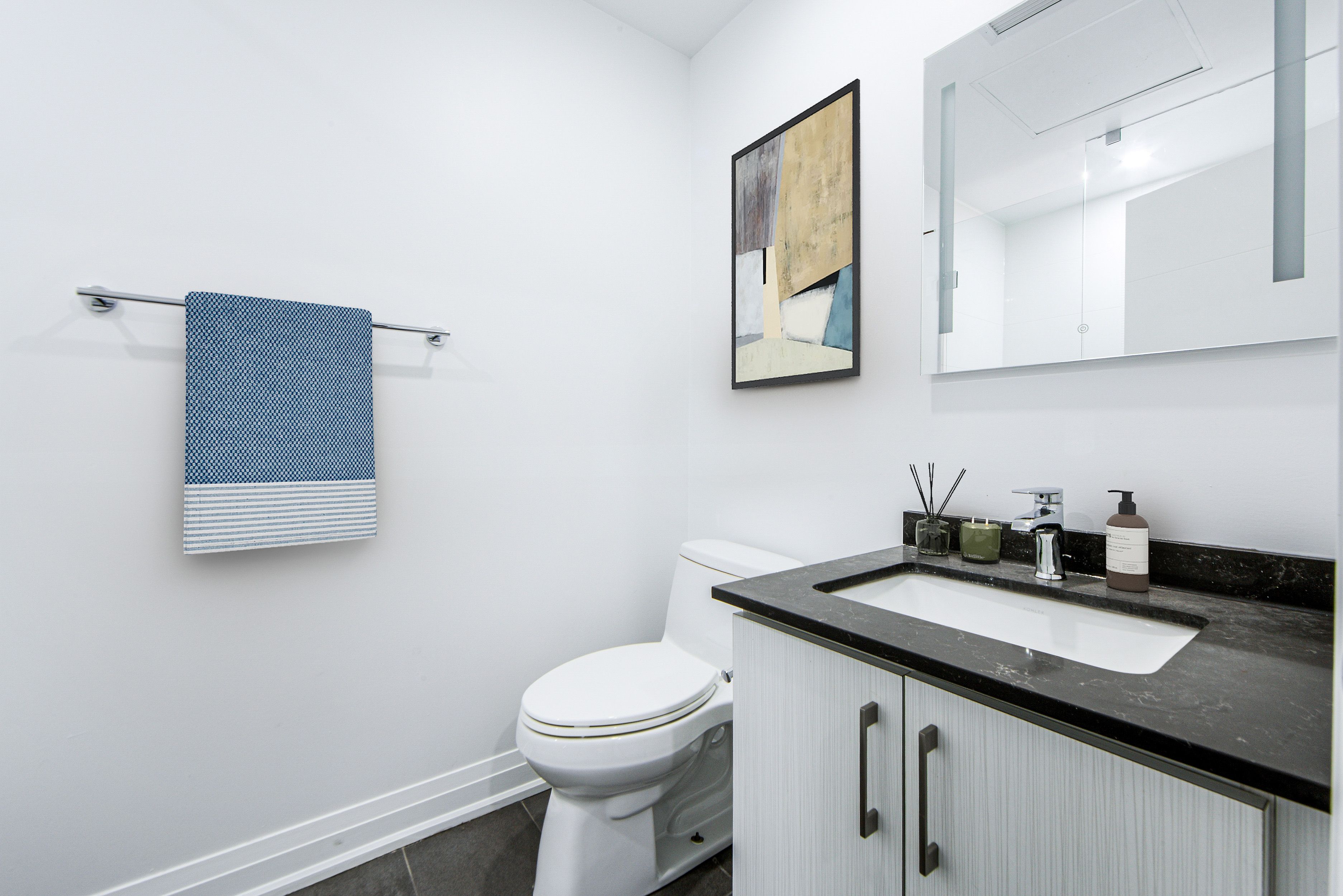 • Equipped with modern stainless steel appliances and quartz countertops.