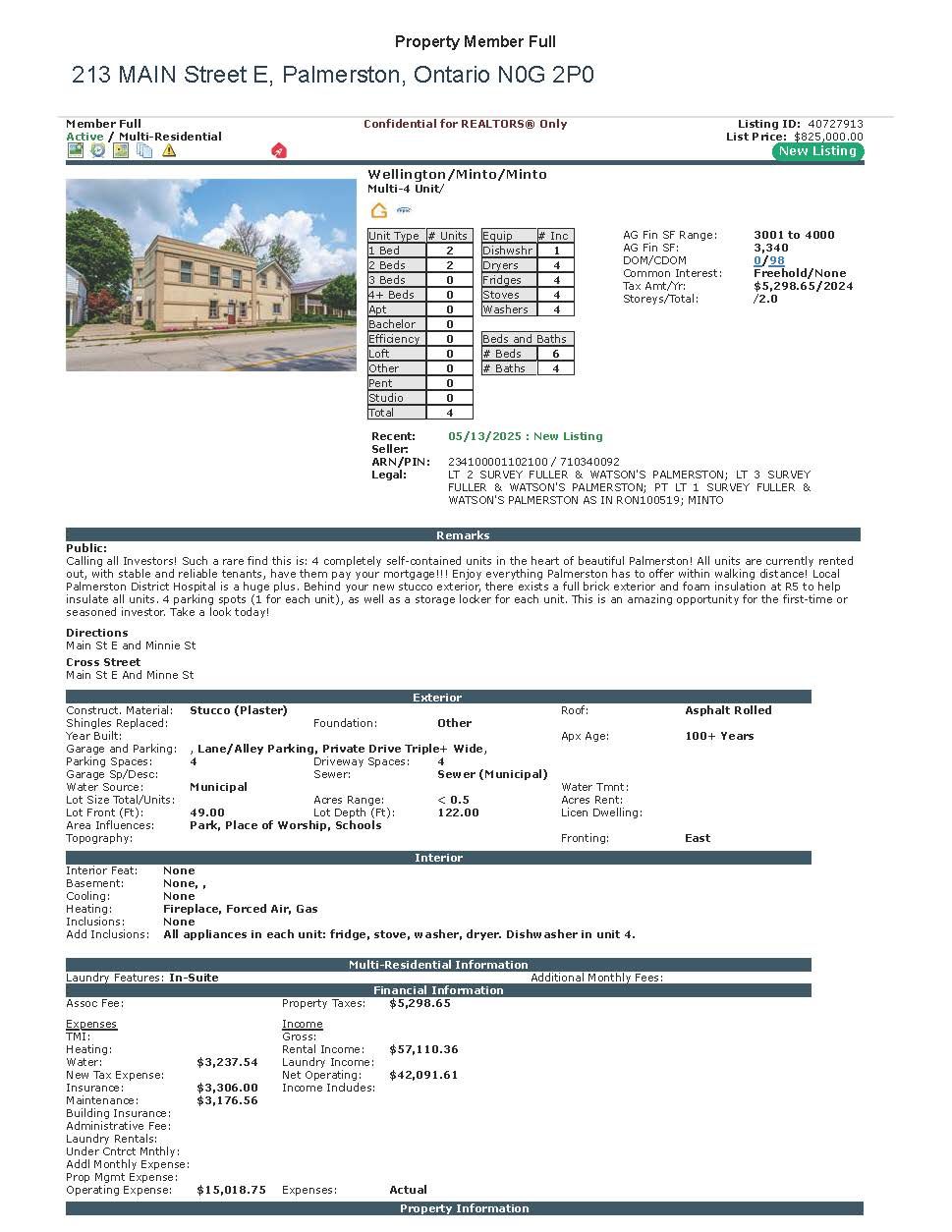 Calling all investors! Such a rare find this is: 4 completely self-contained units in the heart of beautiful palmerston! All units are currently rented out, with stable and reliable tenants, have them pay your mortgage!!! Enjoy everything palmerston has to offer within walking distance! Local palmerston district hospital is a huge plus. Behind your new stucco exterior, there exists a full brick exterior and foam insulation at r5 to help insulate all units. 4 parking spots (1 for each unit), as well as a storage locker for each unit. This is an amazing opportunity for the first-time or seasoned investor. Take a look today!