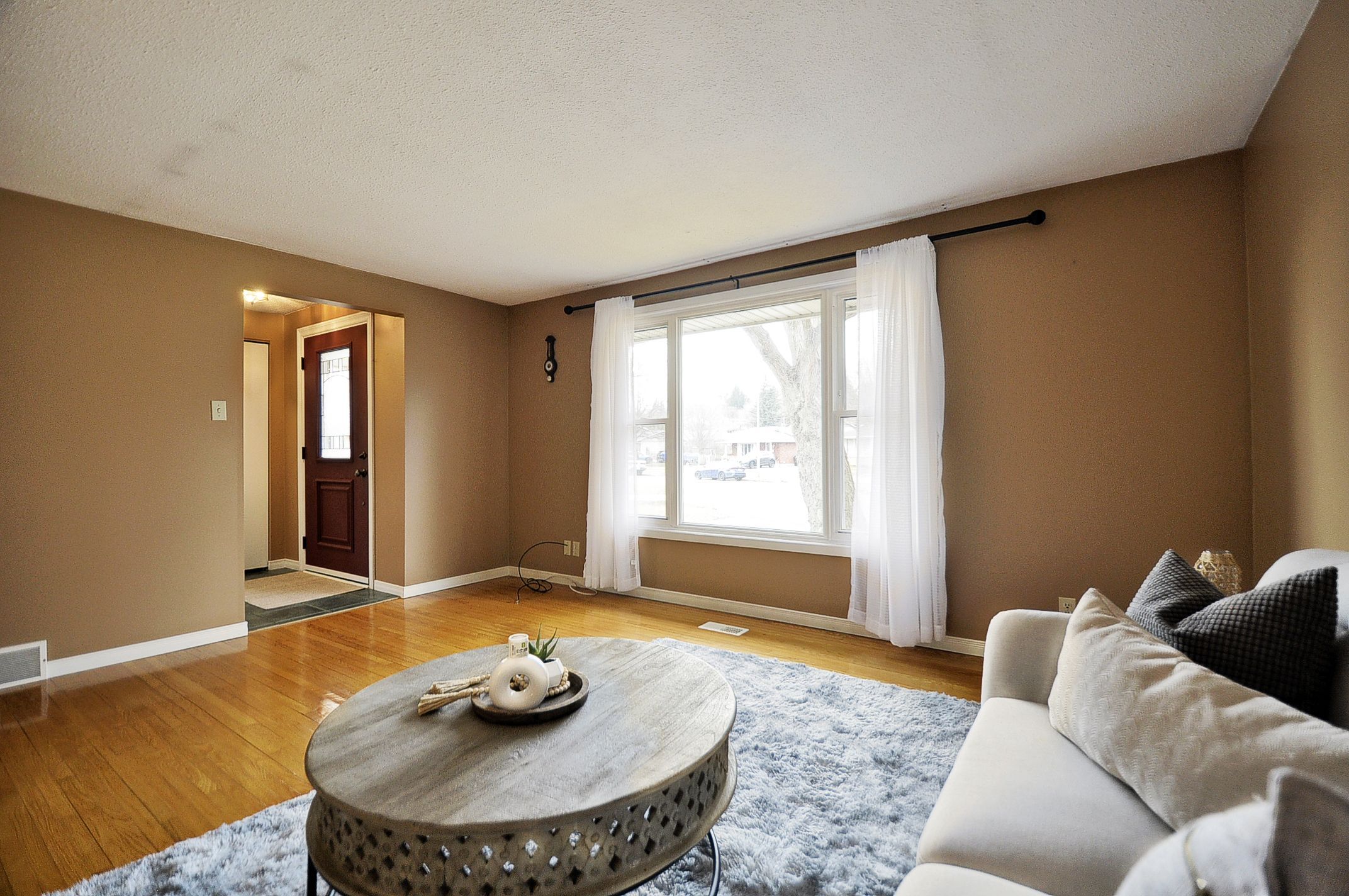• Spacious living room with large front window for natural light.