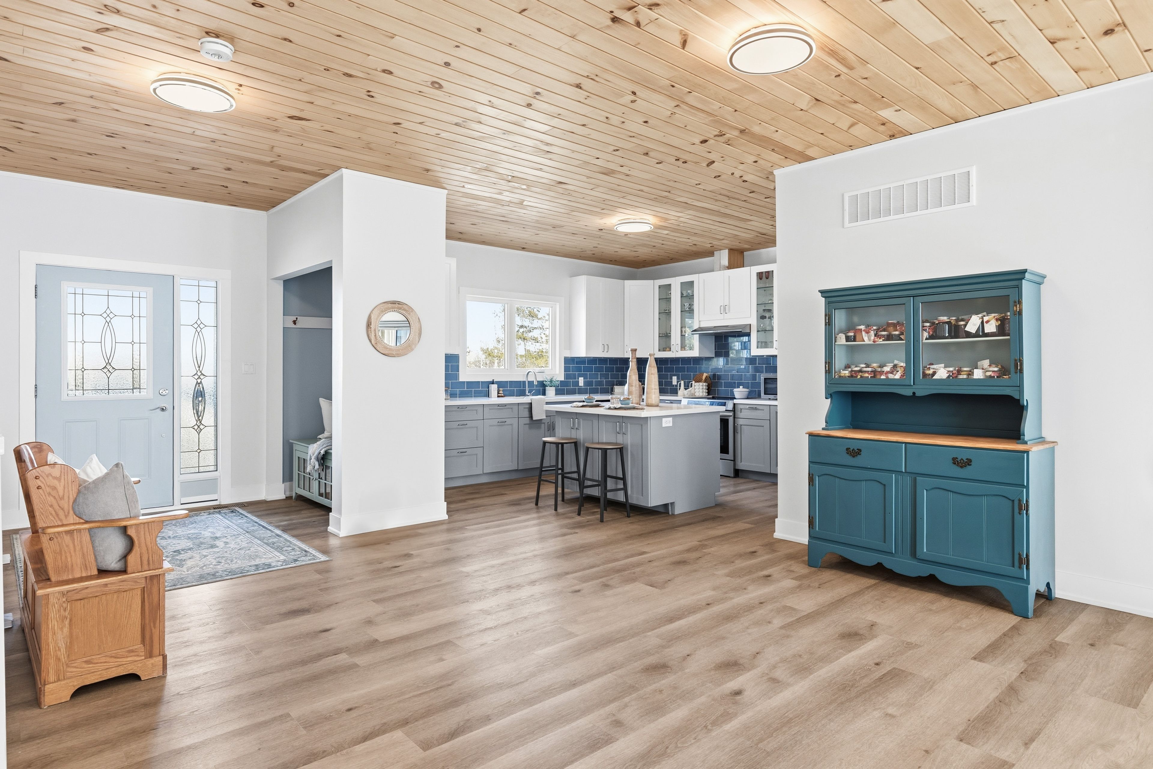 Welcome to 213 pleasant point. This beautiful custom newly built home is move-in ready and designed for effortless living. Enjoy the best lakeside lifestyle with a short walk to the residents' beach and boat launch on sturgeon lake. This bright, open-concept 3 bedroom, 2 bathroom home features a welcoming front foyer and a thoughtfully designed layout. Open concept kitchen, living, dining area with main floor laundry & direct access from the garage. This custom eat-in kitchen has a view of the lake while you are enjoying baking or entertaining. The spacious, unfinished walkout basement offers exceptional future potential and is already roughed-in for a bathroom. Whether you envision an in-law suite for multi generational living, home office, additional bedrooms, or a recreation and entertainment space, the walkout design provides abundant natural light and seamless outdoor access, an ideal blank canvas to customize and add value. Energy efficiency is a standout feature, with spray foam insulation throughout the home and an additional 20 inches of blown-in attic insulation, delivering an impressive r-60 insulation value for year-round comfort and efficiency. Metal roof, exterior metal siding, new septic system (2024) and drilled well (2019), offering peace of mind for years to come. A quick closing is available if required. This exceptional property blends quality construction, future flexibility, and an unbeatable location ready for you to move in and start enjoying lake-area living.
