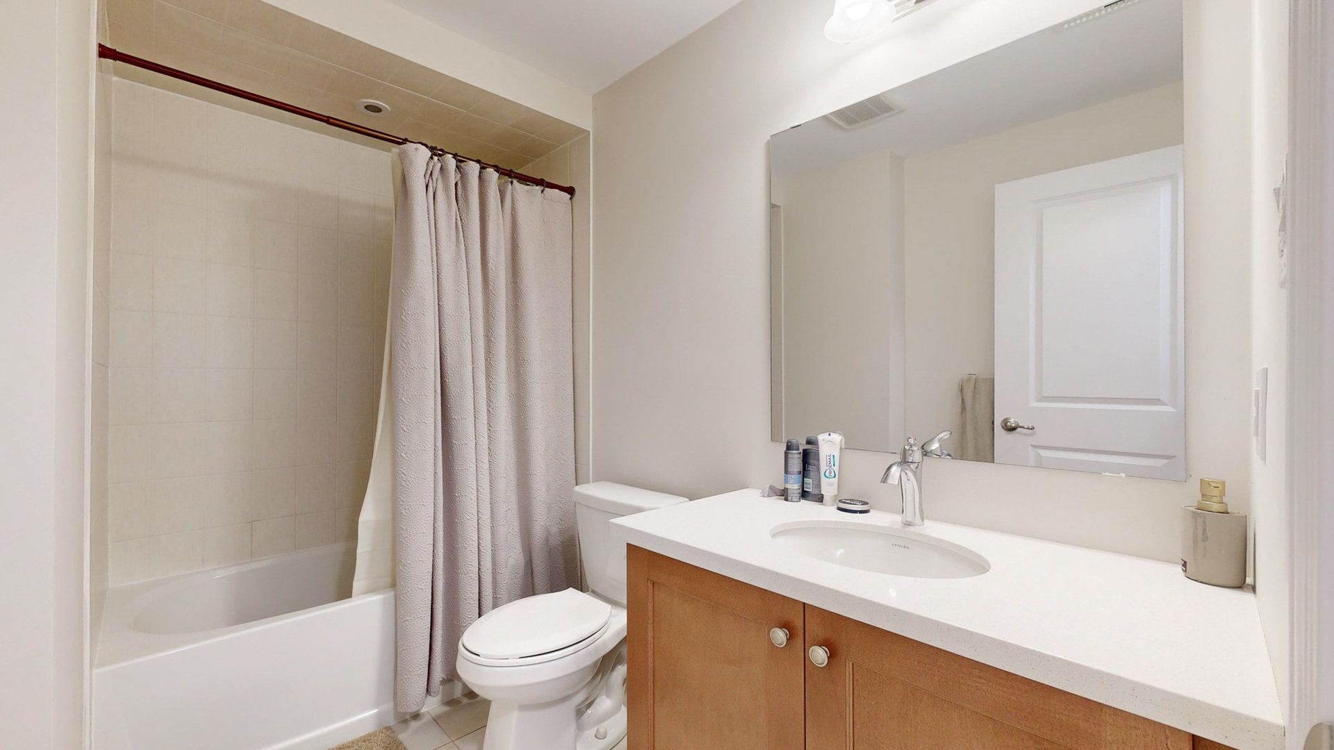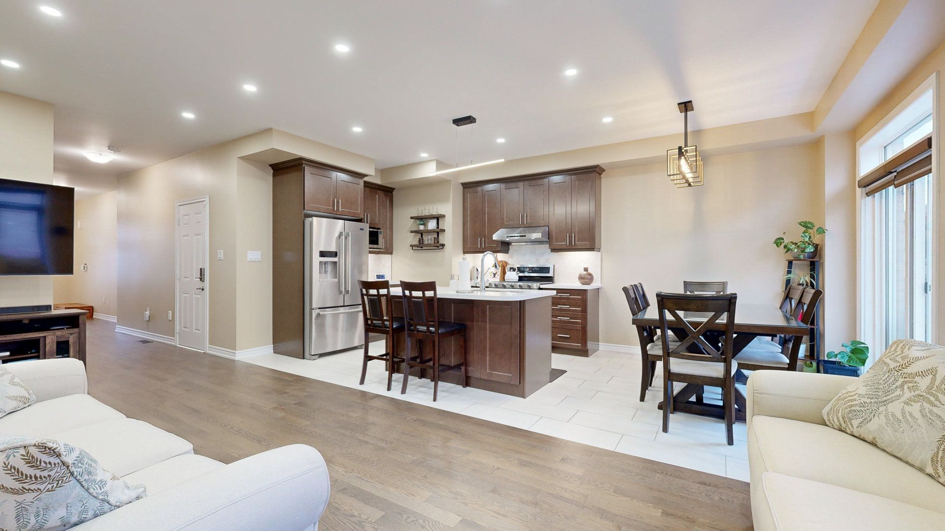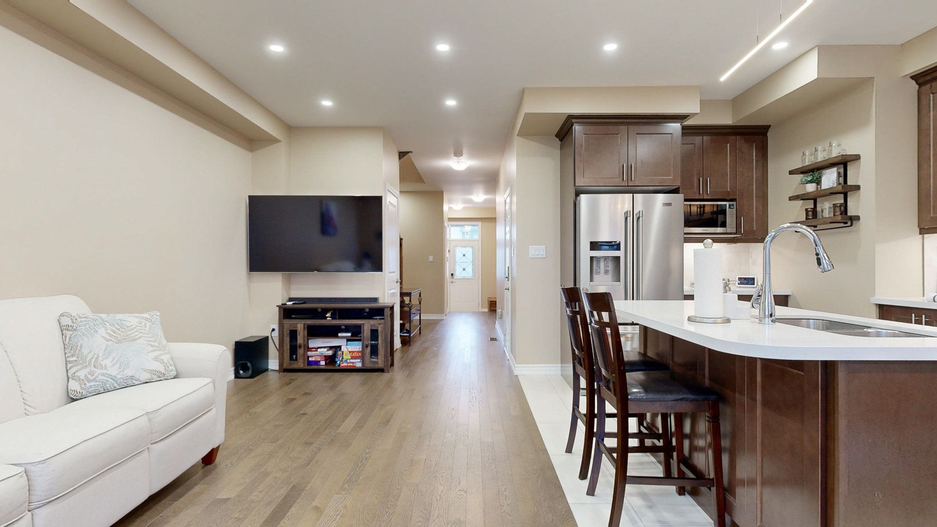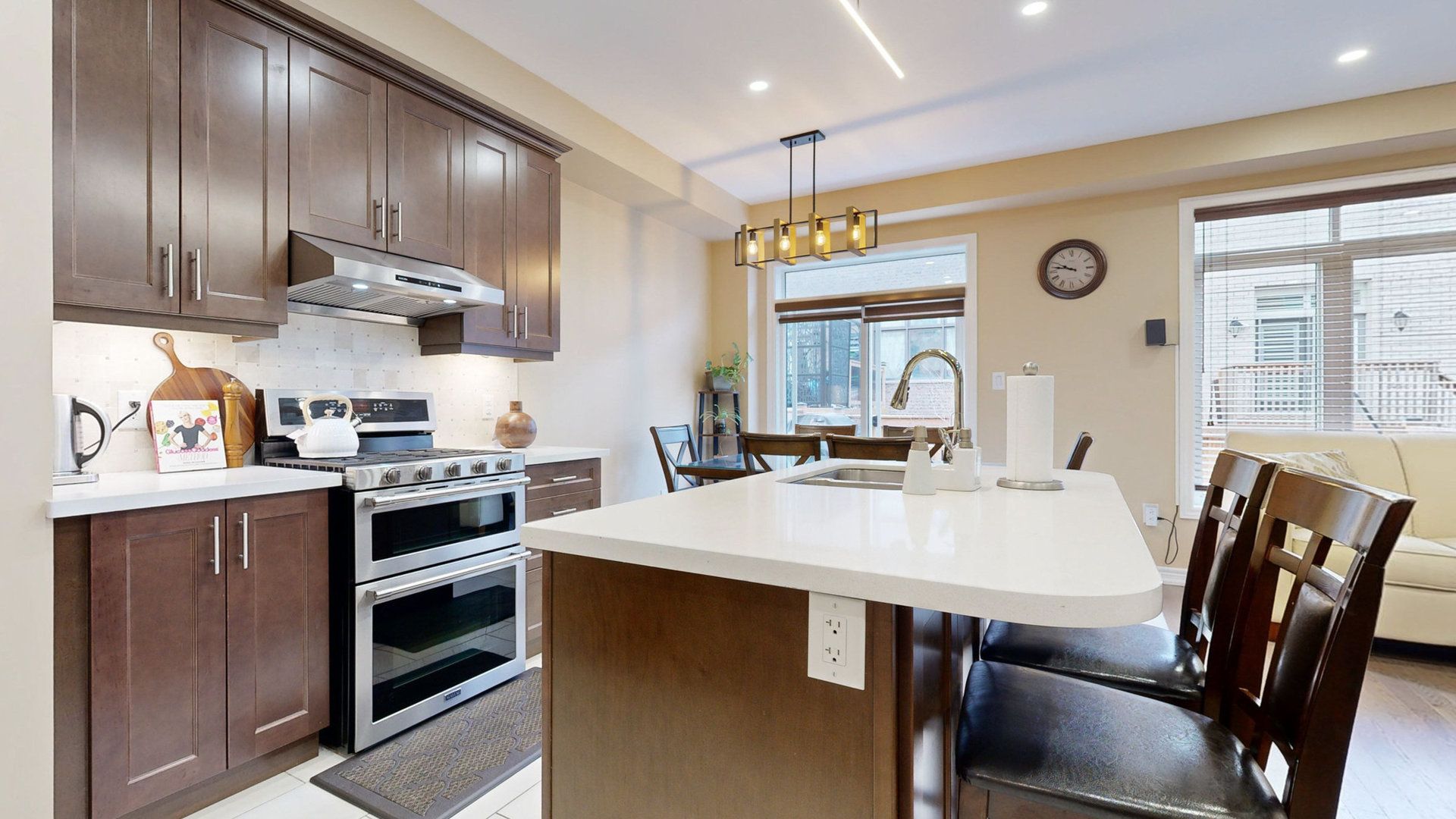 • Functional kitchen with quartz countertops and high-end Maytag appliances.