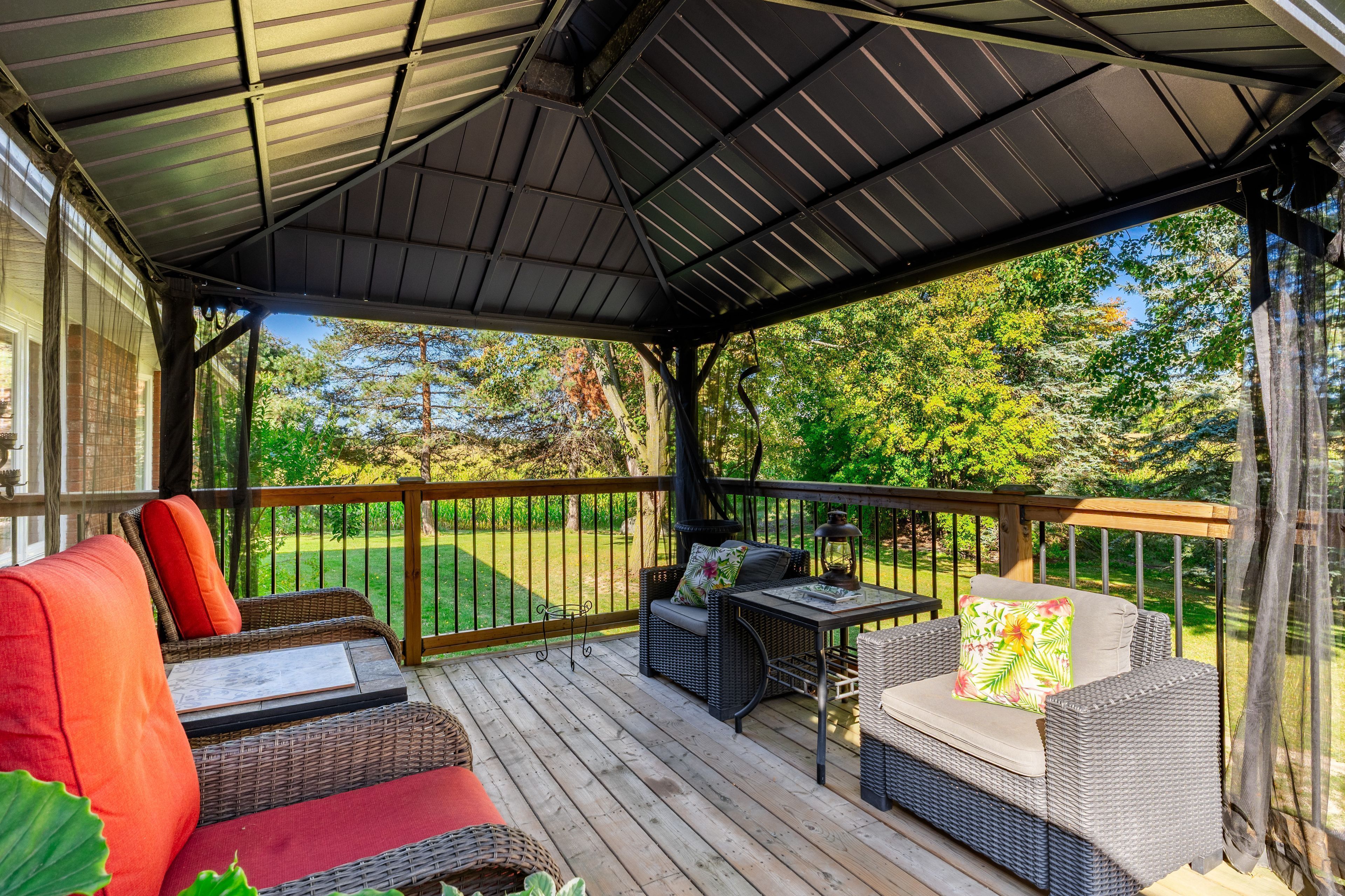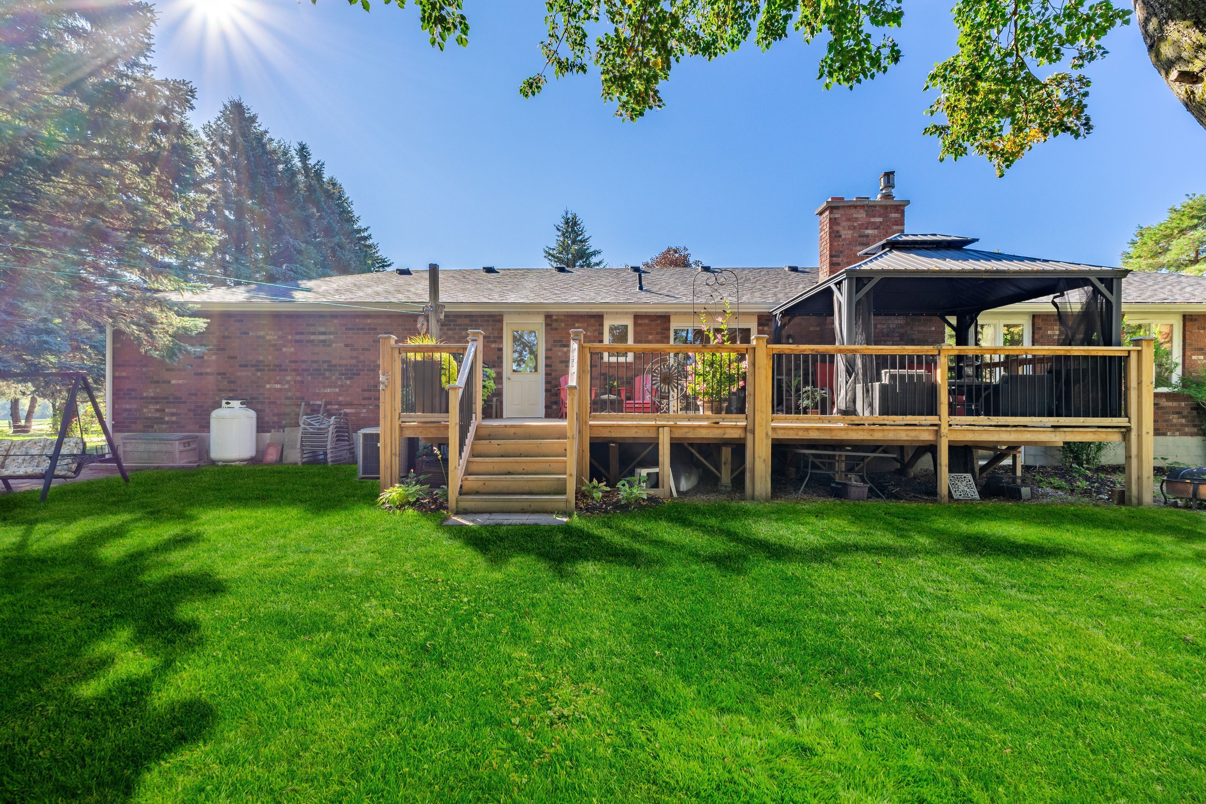 The perfect all brick 4 bedroom bungalow * premium lot w/ 150 ft frontage * 0. 7 acre featuring 2,245 sq ft on main level * ultimate privacy surrounded by green space w/ scenic views* wood f/p in family rm w/ w/o to deck ** all spacious bedrooms * true private backyard oasis backing onto open space * grand deck w/ resort style pergola * hardwood floors * potlights * 5 pc spa ensuite w/ frameless glass walk-in shower, porcelain tiles, built-in niche, modern double vanity w/ quartz counters + his & hers sinks & freestanding soaker tub * second bath renovated 2025 w/ new vanity, quartz counters & modern porcelain tiled shower * freshly painted throughout * new washer & dryer * all new trims * newly shingled roof 2025 * finished basement featuring gas fireplace* new gutter guards* new water treatment system 2025 * new light fixtures inside & out * brand new glass sliding door * professionally landscaped w/ stone walkway to entrance * sunfilled * massive driveway parks 10+ cars * must see! Don't miss!