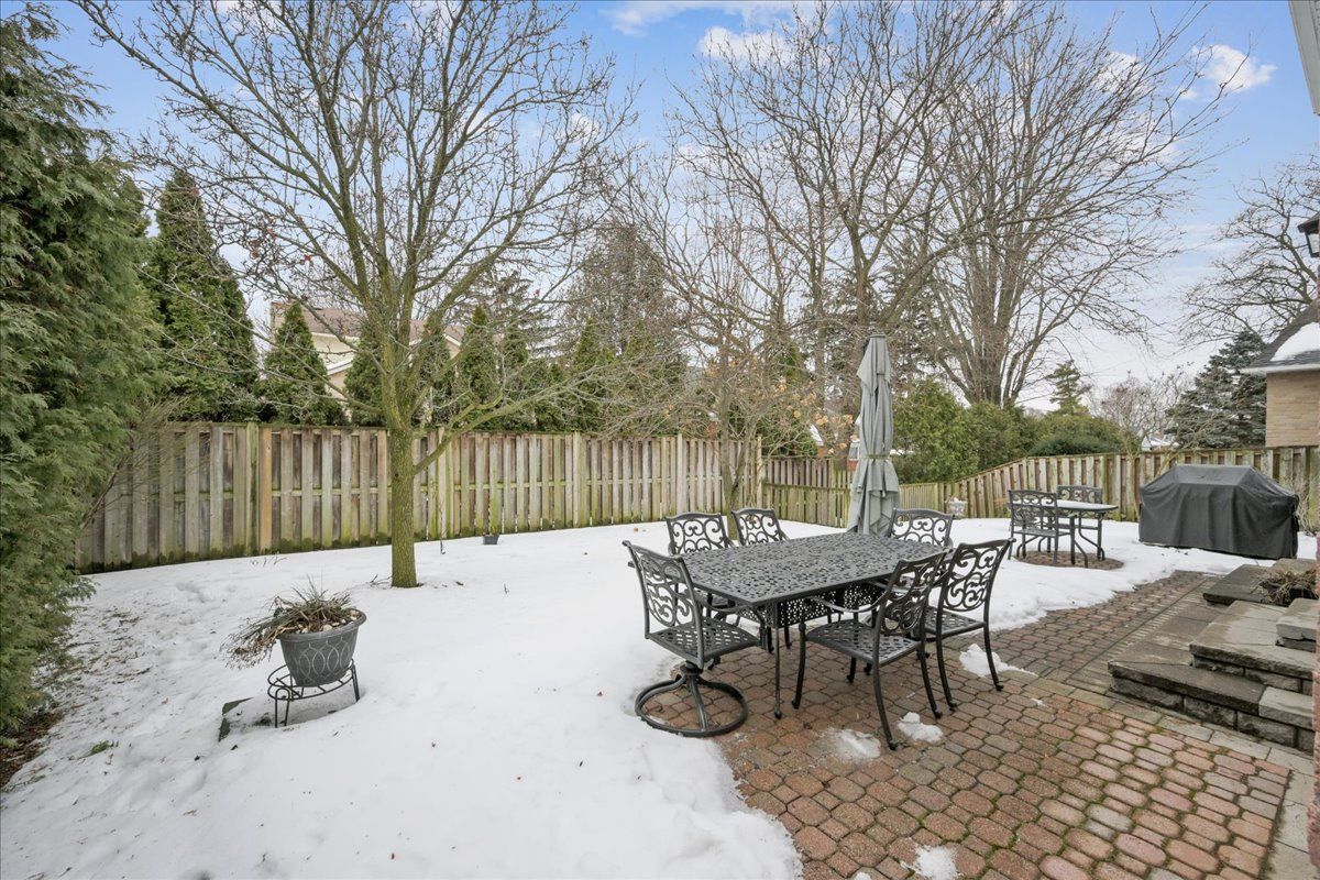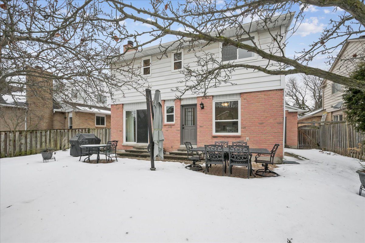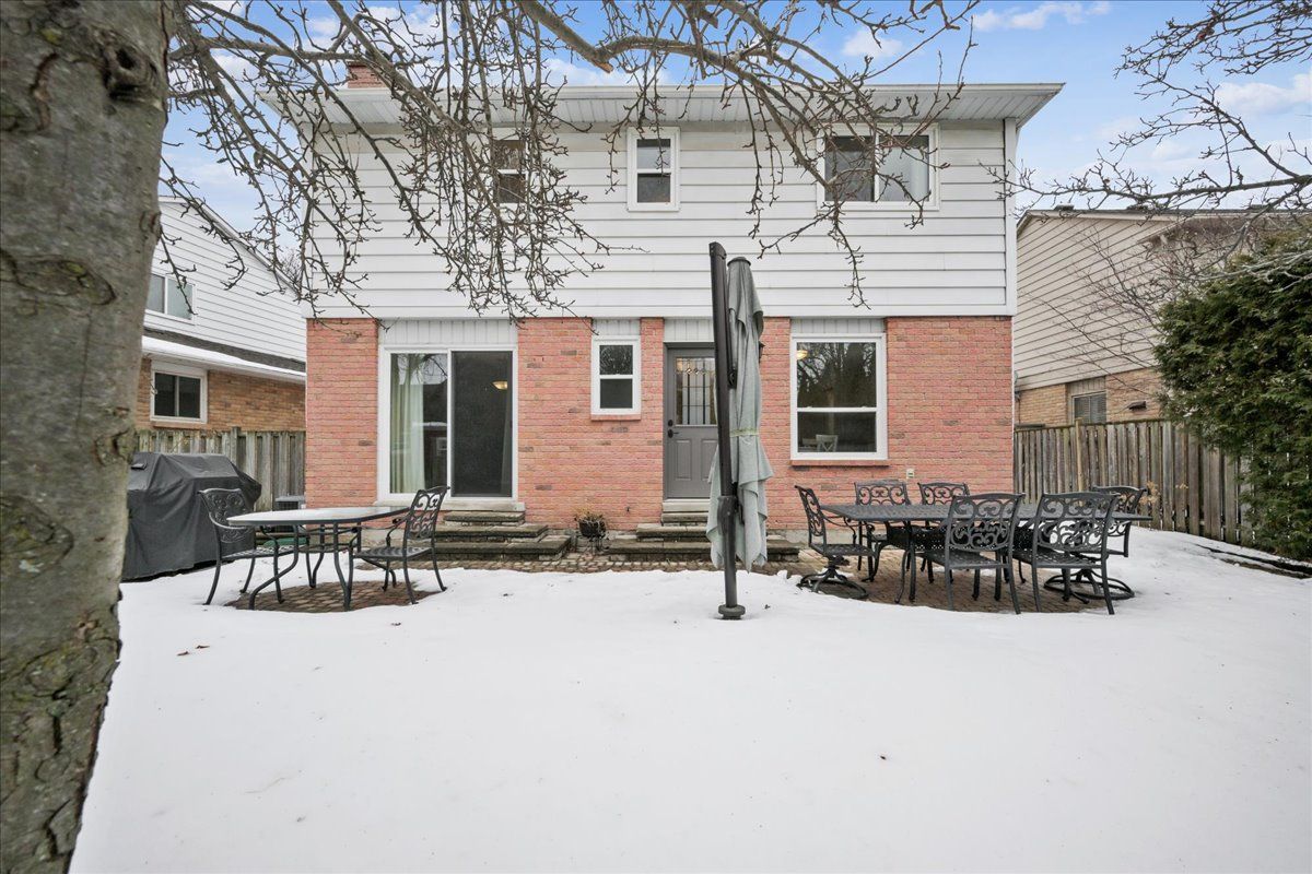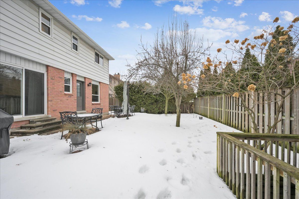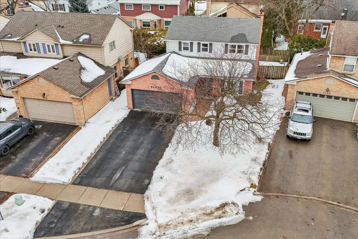 Nestled at the top of a quiet court in central burlington, this beautifully maintained monarch-built family home offers 3+1 bedrooms, 3. 5 bathrooms and approx. 2,432 sq. Ft. Of finished living space including the basement. An ideal location for families and commuters alike, just an 8-minute walk to tom thomson public school and minutes to downtown burlington's shops, restaurants, waterfront, spencer smith park, brant street pier, art gallery of burlington and joseph brant hospital. Quick access to burlington go station and hwy 403, with costco and walmart close by. Curb appeal is exceptional with a double driveway, parking for four vehicles, attached double garage, interlocking stone curbing, manicured gardens and a welcoming stone walkway. The private backyard is a tranquil retreat featuring a spacious interlocking patio, mature trees, lush perennial gardens and a fruit-bearing pear tree-perfect for entertaining or enjoying quiet summer evenings. Inside, a striking oak staircase with black metal spindles anchors the foyer. The formal living room with parquet flooring flows through french doors into the warm family room with gas fireplace and walkout to the patio. The bright eat-in kitchen offers ample white cabinetry, stainless steel appliances (except fridge), updated laminate flooring and a generous breakfast area with treetop views. A separate dining room and convenient 2-piece bath complete the main level. Upstairs, hardwood flooring (2021) extends throughout the hallway, bedrooms and closets. The primary suite features a walk-in closet and private 3-piece ensuite, while two additional bedrooms share the main 4-piece bath. The finished lower level offers a versatile rec/media room with wide-plank laminate flooring (2022), a fourth bedroom or home office, and a full 3-piece bath. Numerous updates including roof shingles, windows (except patio door), front and rear doors, furnace and a/c complete this move-in ready home in a premium court location.
