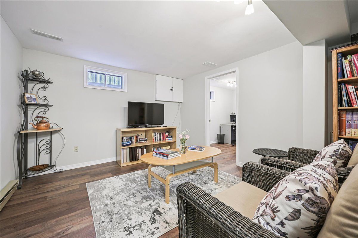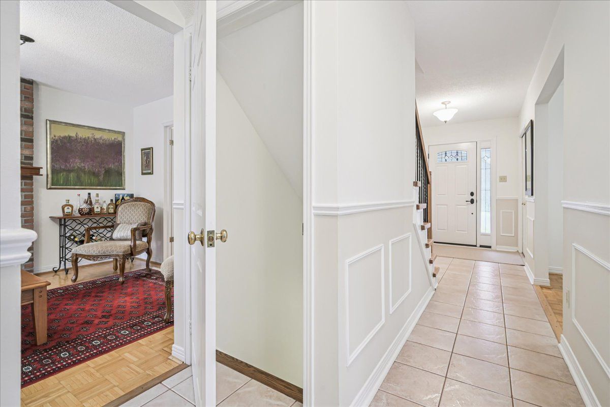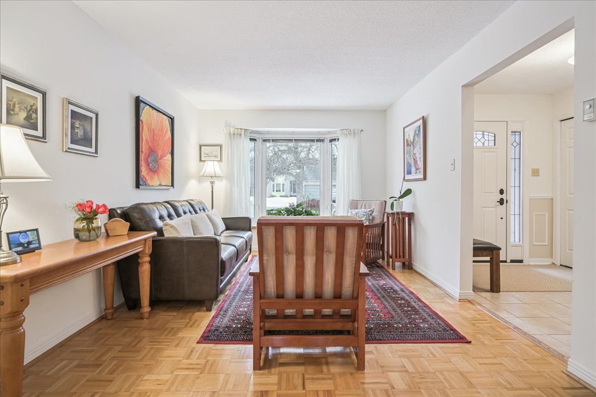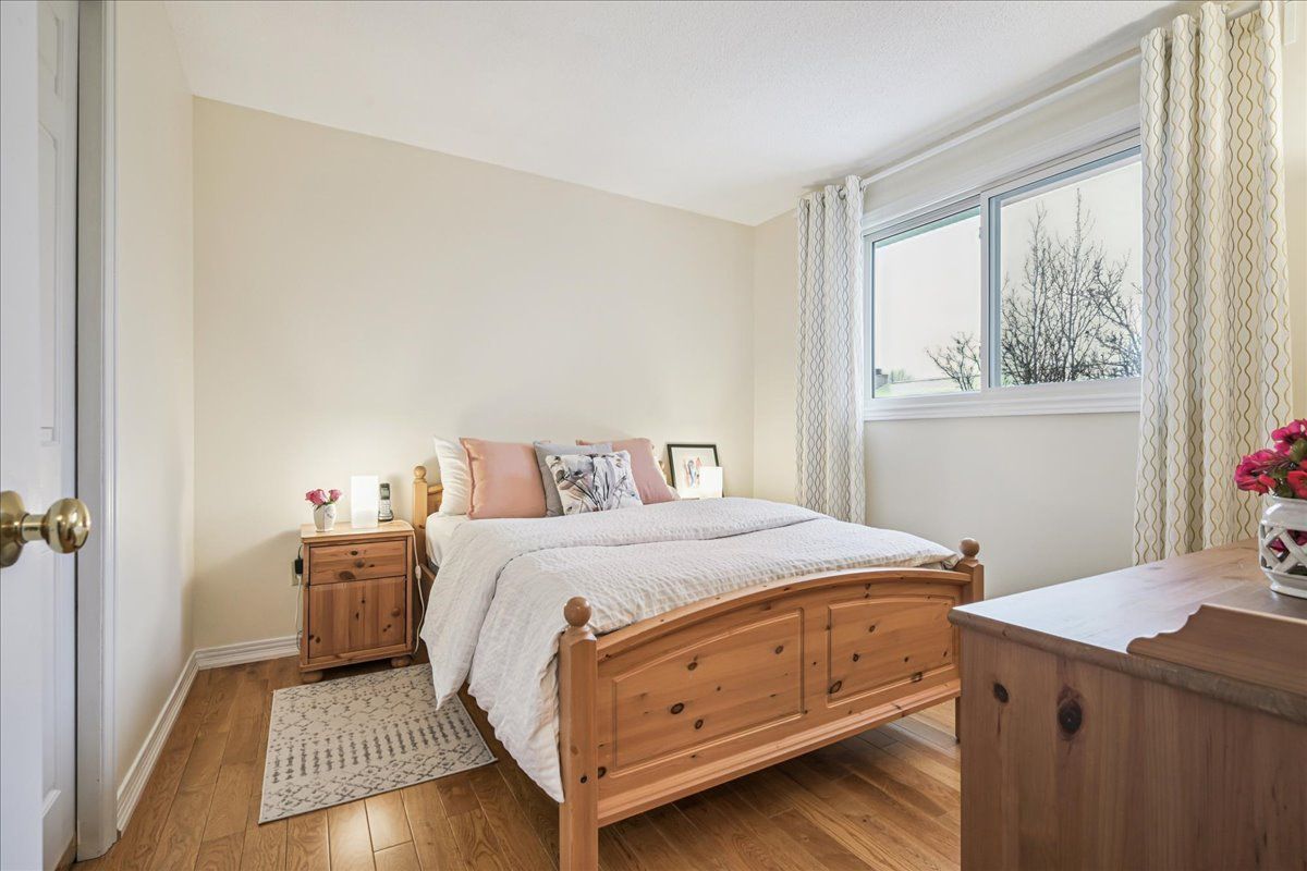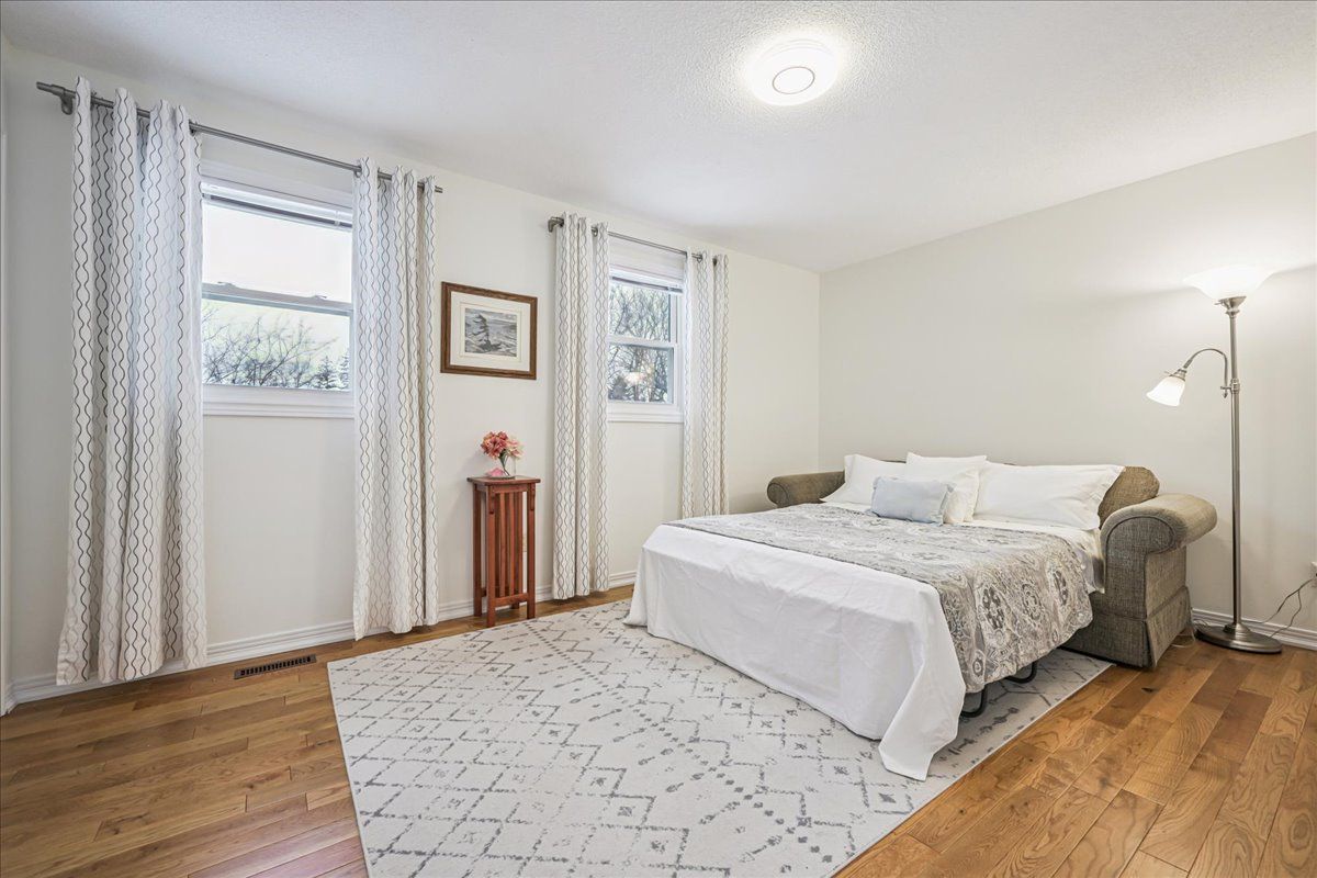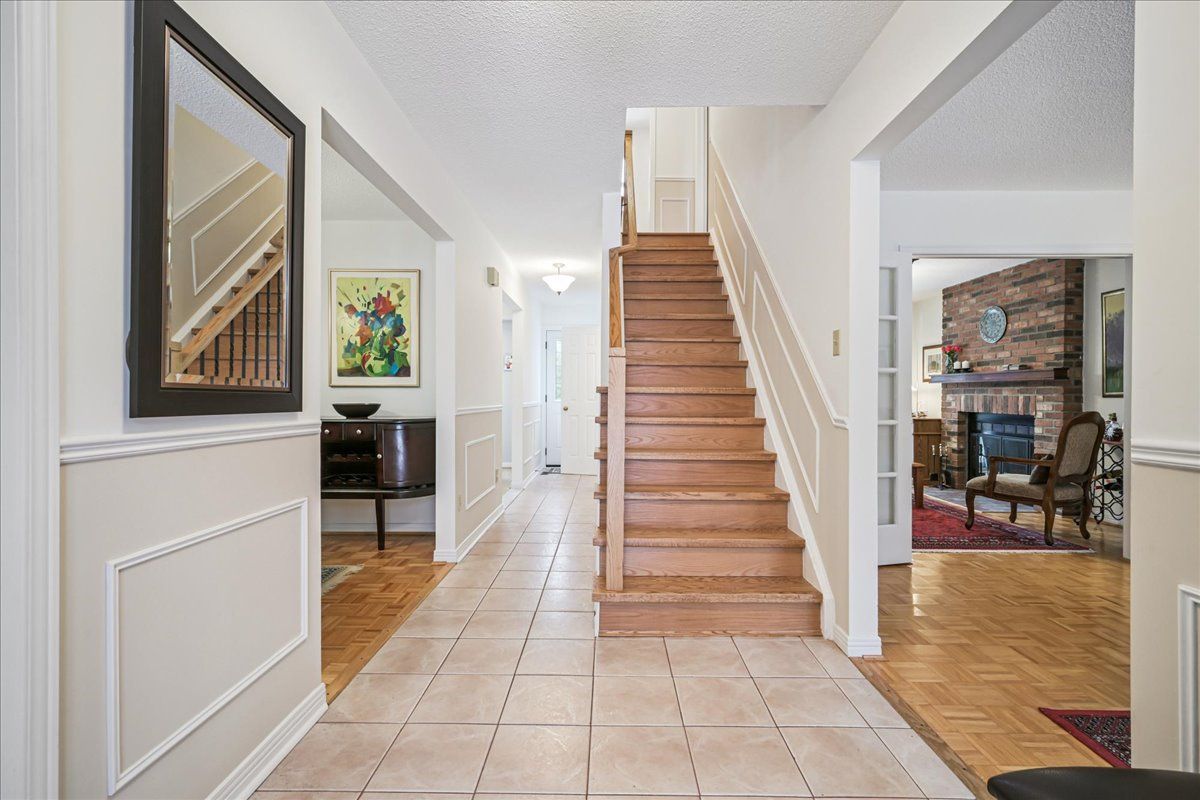Nestled at the top of a quiet court in central burlington, this beautifully maintained monarch-built family home offers 3+1 bedrooms, 3. 5 bathrooms and approx. 2,432 sq. Ft. Of finished living space including the basement. An ideal location for families and commuters alike, just an 8-minute walk to tom thomson public school and minutes to downtown burlington's shops, restaurants, waterfront, spencer smith park, brant street pier, art gallery of burlington and joseph brant hospital. Quick access to burlington go station and hwy 403, with costco and walmart close by. Curb appeal is exceptional with a double driveway, parking for four vehicles, attached double garage, interlocking stone curbing, manicured gardens and a welcoming stone walkway. The private backyard is a tranquil retreat featuring a spacious interlocking patio, mature trees, lush perennial gardens and a fruit-bearing pear tree-perfect for entertaining or enjoying quiet summer evenings. Inside, a striking oak staircase with black metal spindles anchors the foyer. The formal living room with parquet flooring flows through french doors into the warm family room with gas fireplace and walkout to the patio. The bright eat-in kitchen offers ample white cabinetry, stainless steel appliances (except fridge), updated laminate flooring and a generous breakfast area with treetop views. A separate dining room and convenient 2-piece bath complete the main level. Upstairs, hardwood flooring (2021) extends throughout the hallway, bedrooms and closets. The primary suite features a walk-in closet and private 3-piece ensuite, while two additional bedrooms share the main 4-piece bath. The finished lower level offers a versatile rec/media room with wide-plank laminate flooring (2022), a fourth bedroom or home office, and a full 3-piece bath. Numerous updates including roof shingles, windows (except patio door), front and rear doors, furnace and a/c complete this move-in ready home in a premium court location.