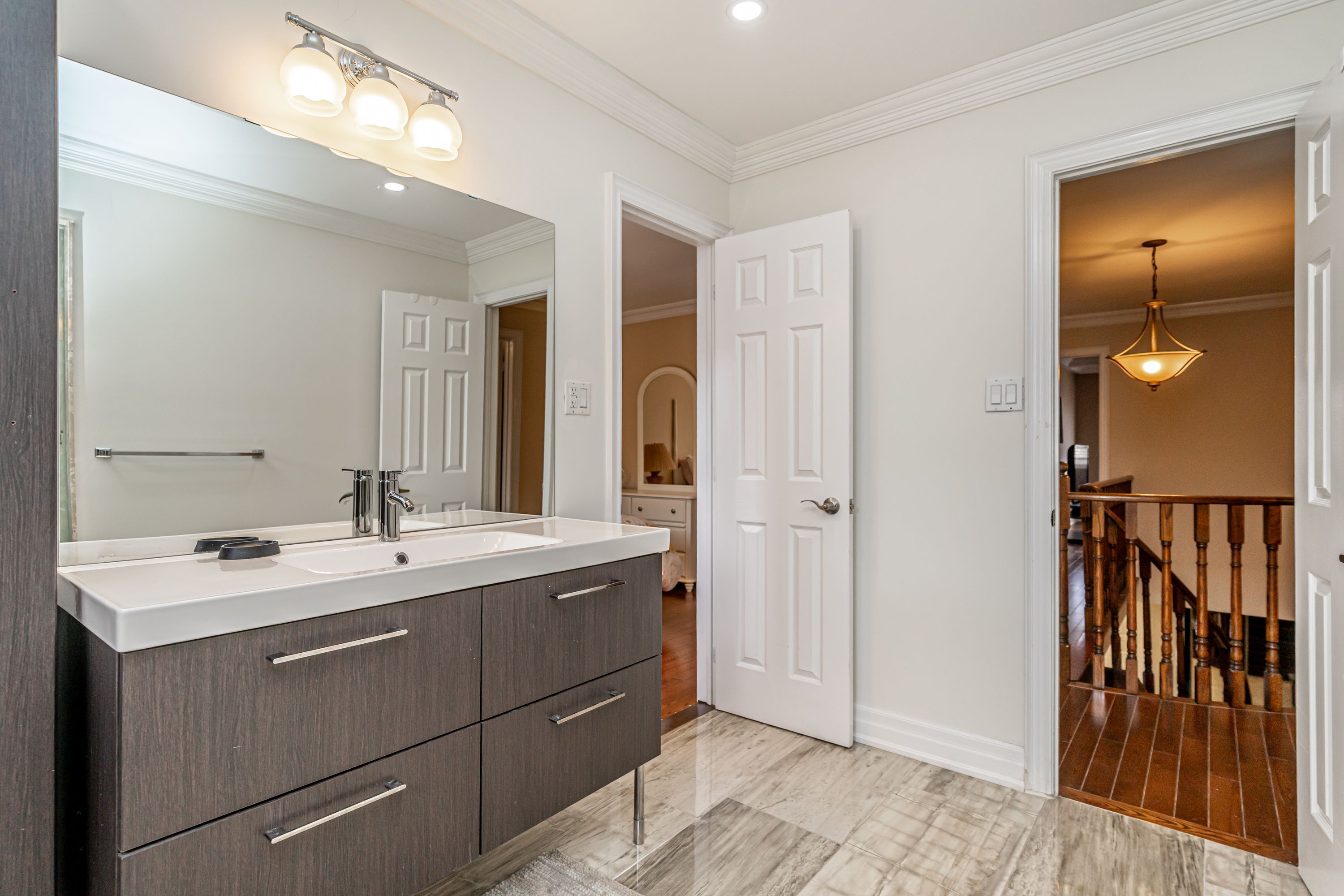 Next to credit valley hospital in popular "the chase" neighborhood in erin mills * totally upgraded* newer white kitchen with granite counters, tons of cupboard space,large eating area, w/o to deck and private fenced back garden * basement recreation room is also part of rental* main floor 3pc. Bath * all newer renovated baths* hardwood floors* minutes to407 and erin mills towne centre*highly rated public and catholic schools* quiet cresent* the basement apartment is currently rented to 2 male students