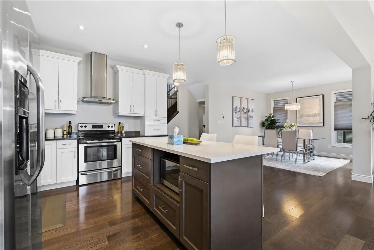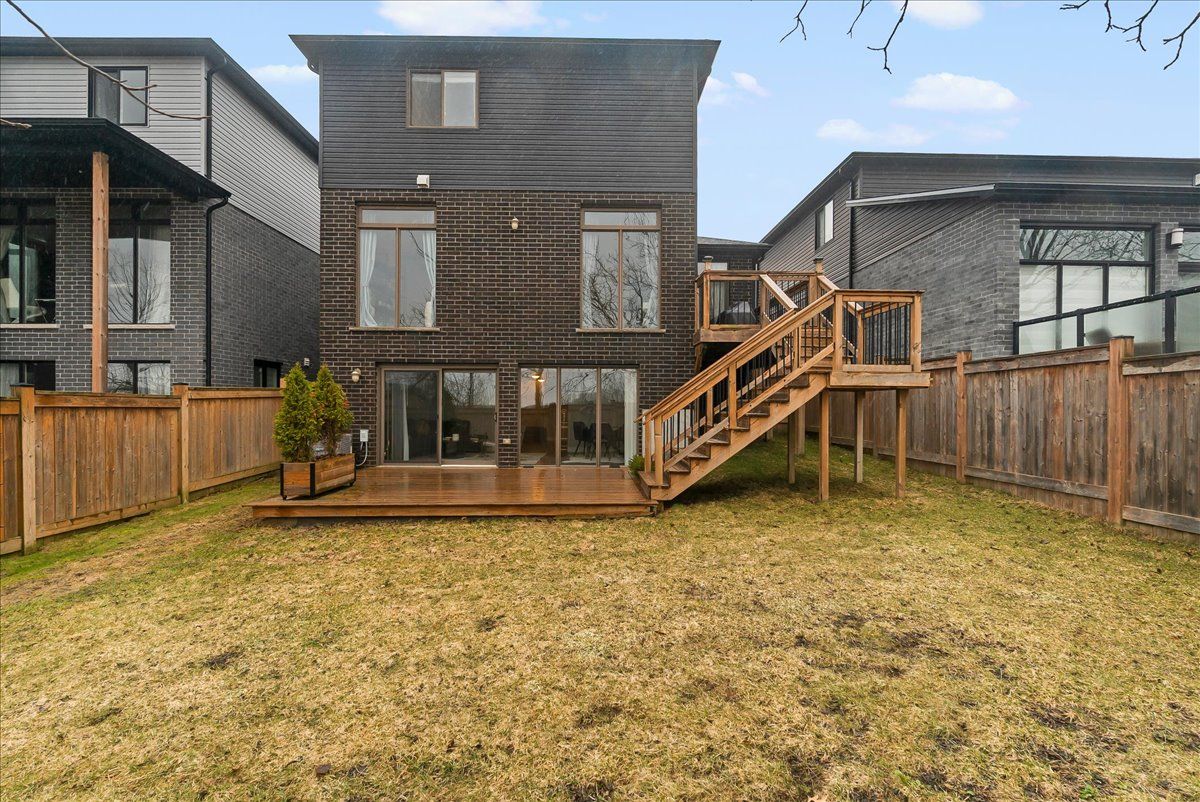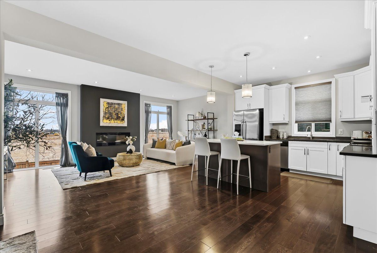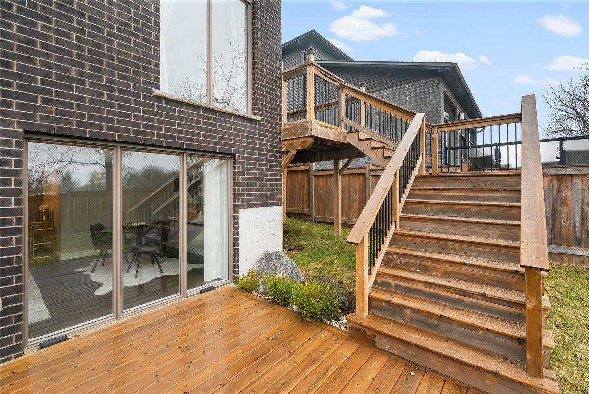 Built by patrick hazzard custom homes, this beautifully finished 2-storey home with a walkout basement is in foxfield, one of north london's most desirable family communities. A bright, open concept main floor features hardwood throughout, a spacious great room with a fireplace, and a chef-inspired kitchen with white and black cabinetry, quartz countertops, crown molding, a chimney-style range hood, and a large island designed for entertaining. The dining area leads to a private raised deck that connects to a lower deck and backyard, creating seamless indoor outdoor living across multiple levels. Upstairs offers three generous bedrooms, a versatile bonus family room, second-floor laundry, and a primary suite with walk in closet and an ensuite with double sinks and glass tiled shower. The fully finished walkout basement adds valuable living space with direct backyard access, ideal for a rec room, home office, or extended family. Quartz counters throughout, ceramic in all wet areas, and solid wood stairs with metal spindles highlight the high level of craftsmanship. Situated minutes from top-rated schools, parks, walking trails, masonville mall, western university, university hospital, and quick access to highway 402, this move-in-ready home delivers space, function, and location for today's growing family and is a must-see in foxfield.