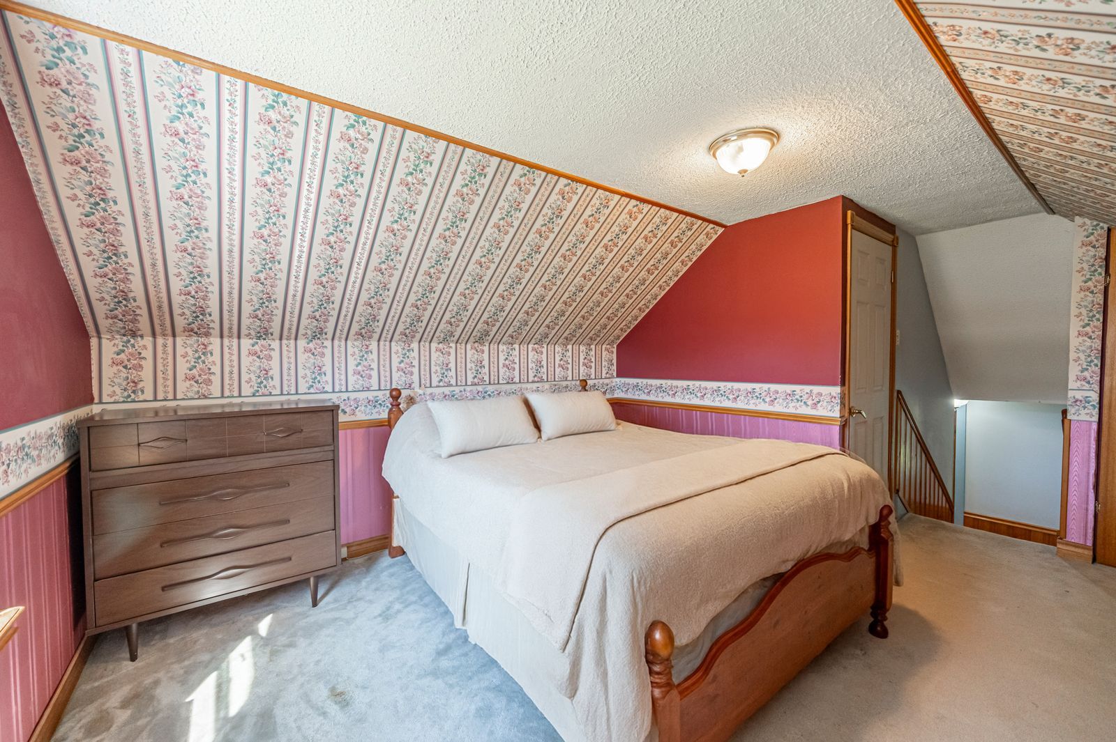• Five bedrooms and two bathrooms offer flexibility for family living.