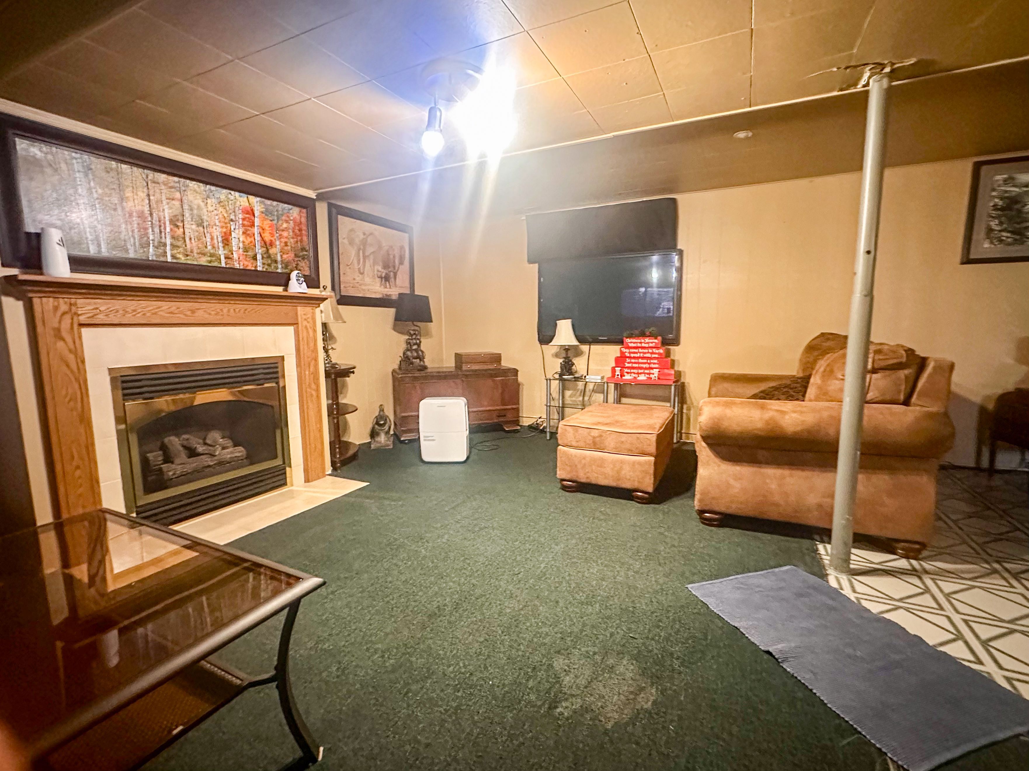 • Fully finished lower level with large rec room and cozy gas fireplace.