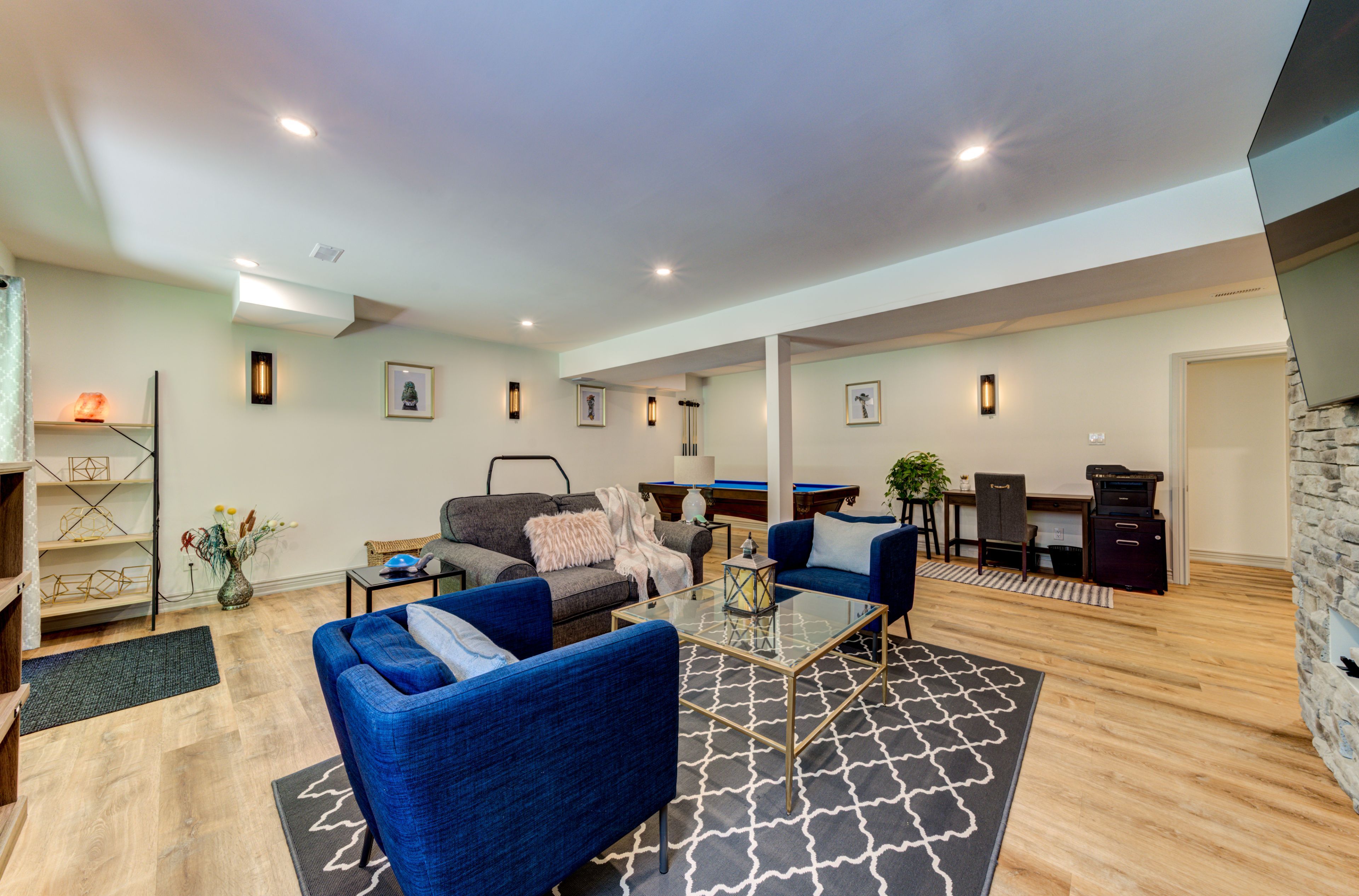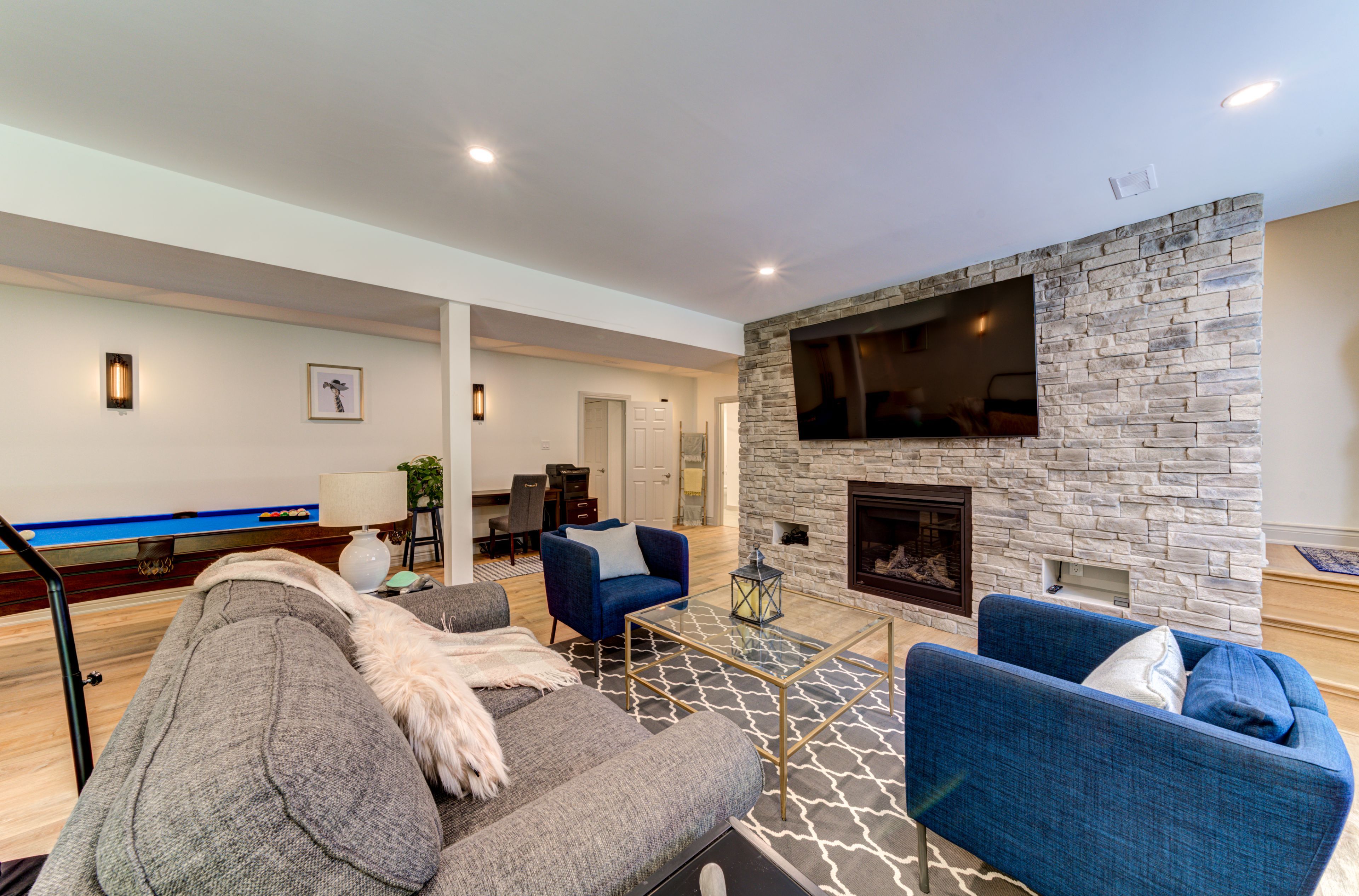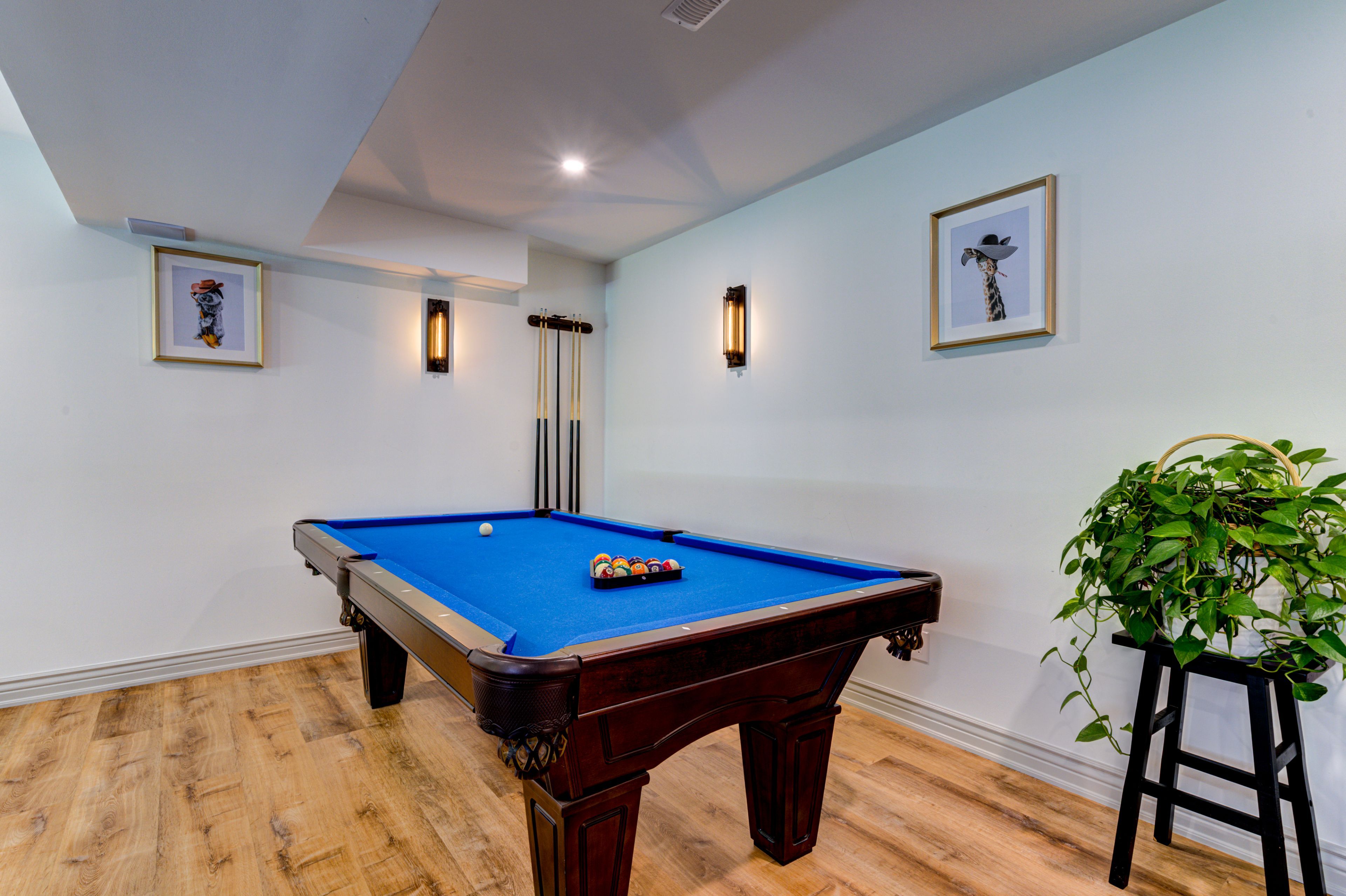 • Walk-out basement designed for comfort with gas fireplace and billiards area.
