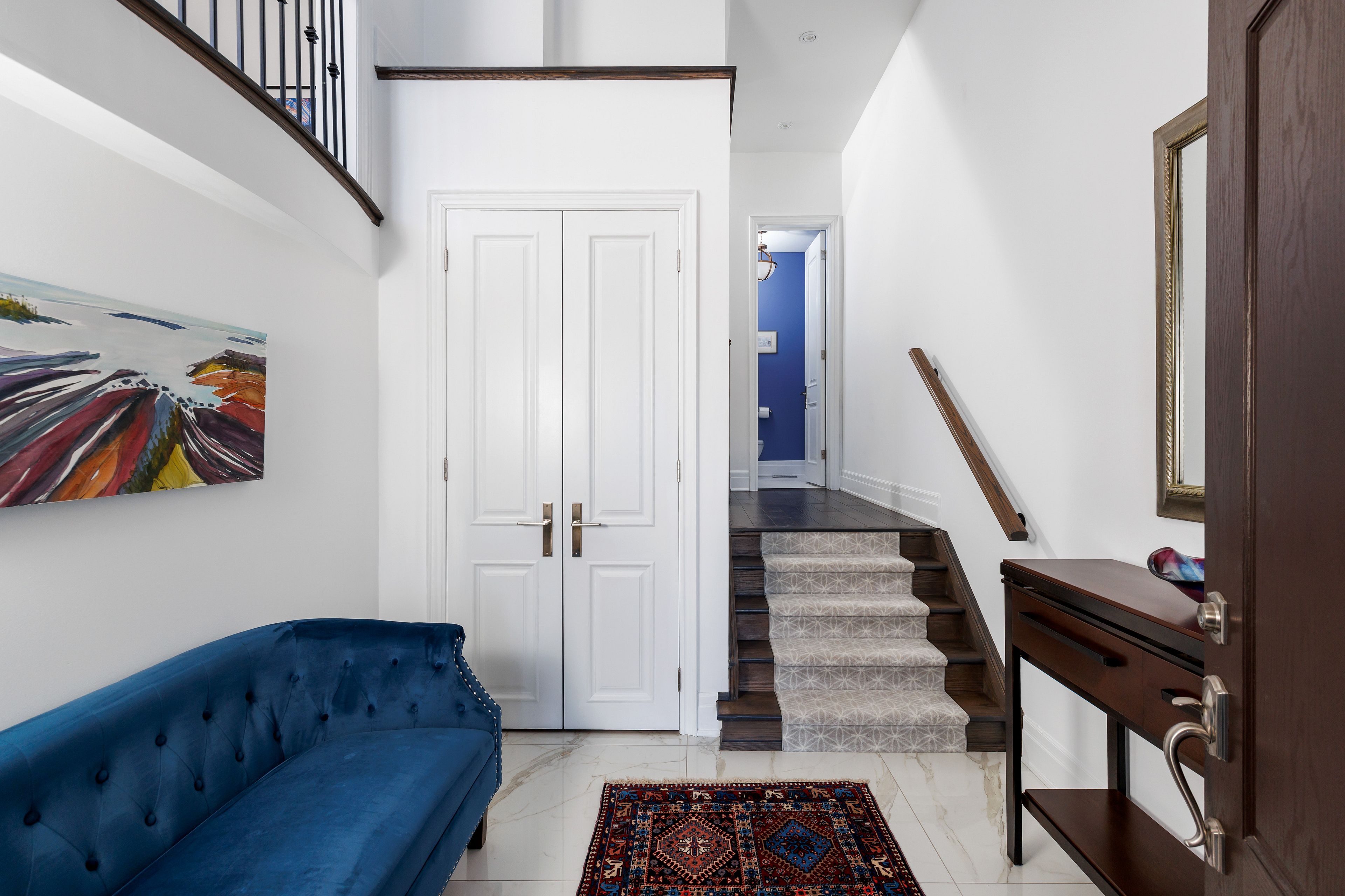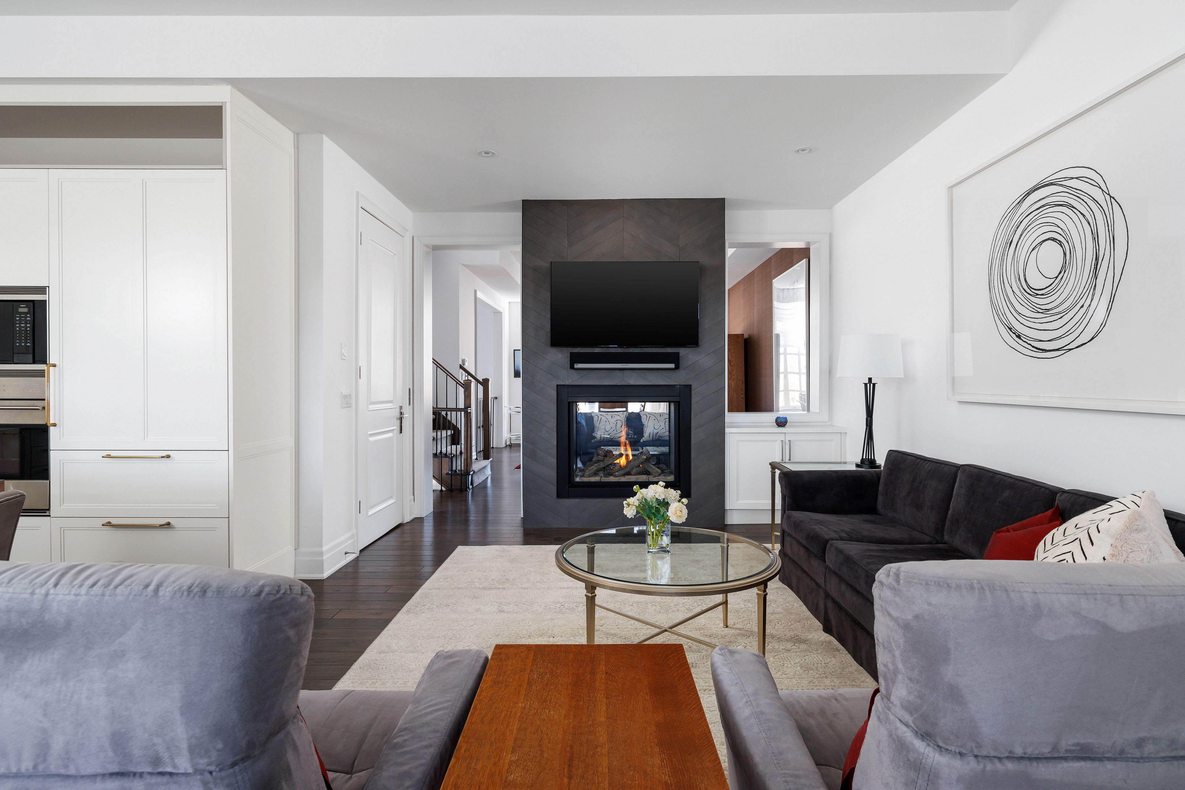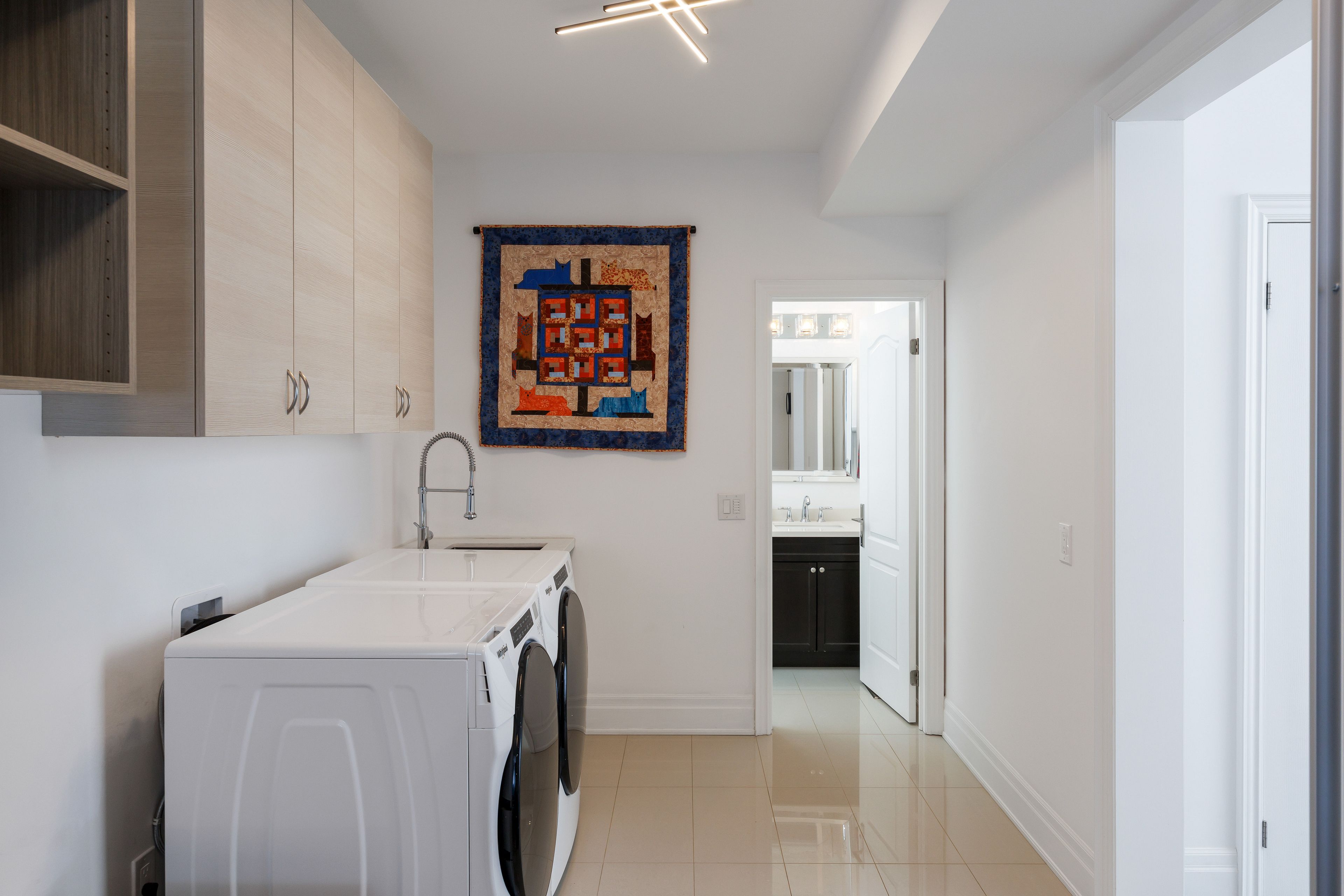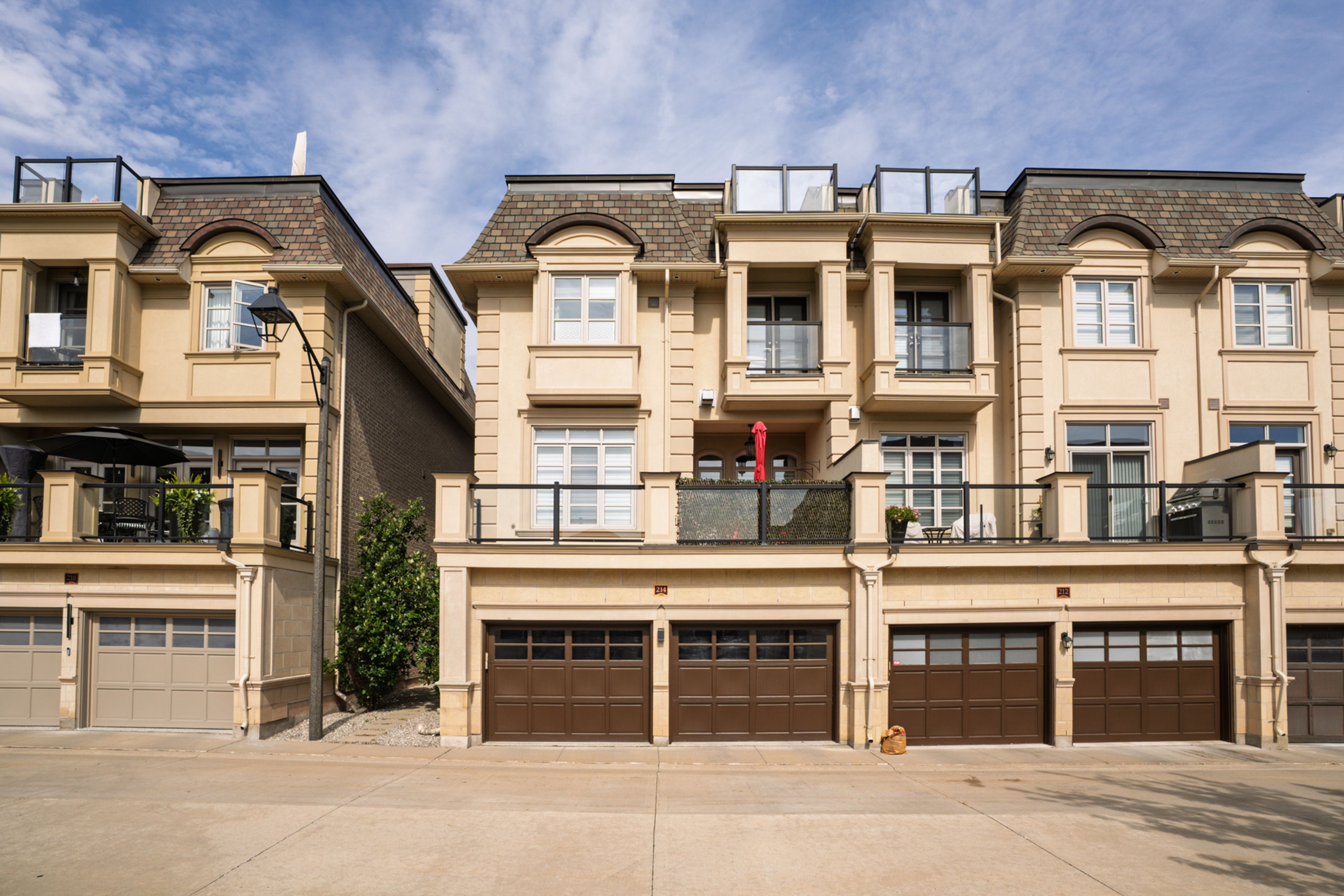 Exceptional end-unit townhome in oakville's prestigious royal oakville club, where refined design meets effortless luxury living. Offering 4341 livable square feet, home elevator to all levels, custom finishes throughout, and sprawling rooftop terrace with sunny west exposure. At the heart of the home is the stunning downsview kitchen complete with a premium appliance package (subzero fridge, wolf gas range, hood vent, wolf wall oven, built-in wolf microwave, bosch dishwasher), sleek cabinetry with custom organization, and an expansive layout designed with cambria quartz countertops with integrated walnut overhang for both everyday living and elegant entertaining. The principal spaces are enhanced by built-in speakers, sonos sound system, 2-way gas fireplace, designer lighting, and walk-out to one of three outdoor terraces. The primary suite offers a 5-piece ensuite, walk-in closet, and private balcony to enjoy your morning coffee. The second level is complete with two further bedrooms with impressive vaulted-ceilings and a thoughtfully designed laundry room equipped with a built-in dishwasher, refrigerator, folding counter, laundry sink, and generous linen storage. Ground level features a fourth bedroom/home office with soundproof windows, sitting room, and spacious mudroom with second laundry, closet organizers, and access to the double car garage with epoxy flooring, ev charger, and central vacuum. Enjoy your evenings entertaining on the expansive third-level terrace with unobstructed views. Timeless in design and meticulously curated, this home caters to those seeking elevated finishes paired with effortless, low-maintenance living. Welcome home