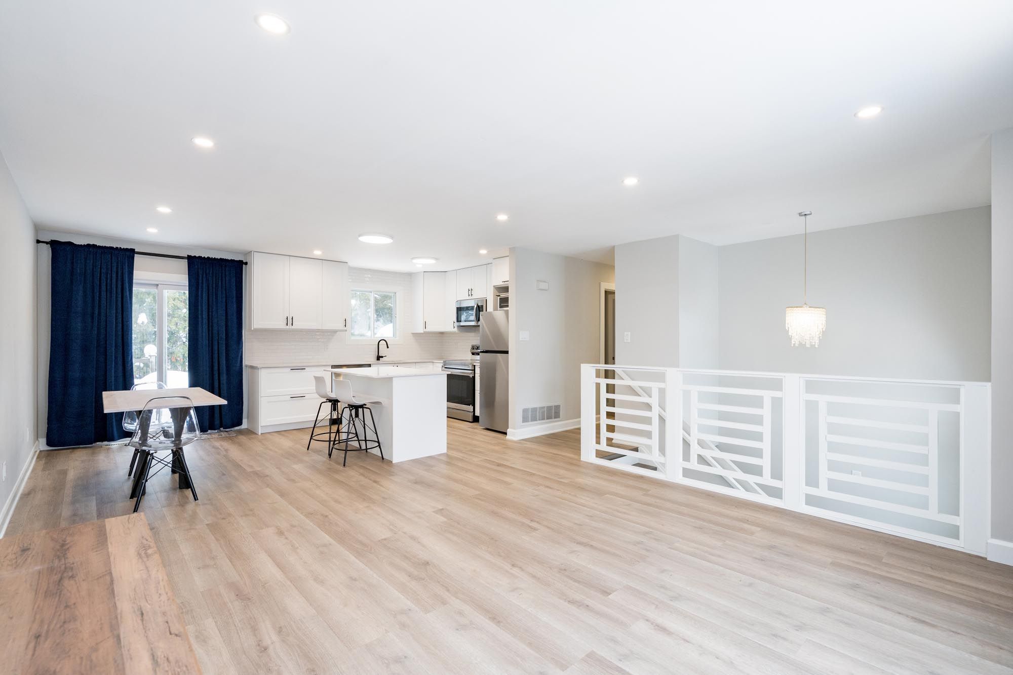Top 5 reasons you will love this home: 1) step inside and immediately feel the care that's gone into this home, with thoughtful updates throughout, including new flooring on both the main and lower levels and a refreshed kitchen designed for gathering, featuring quartz countertops, a centre island, and stainless-steel appliances 2) perfectly positioned for convenience, this home offers quick access to highway 400 while keeping everyday essentials close at hand, with shopping, dining, and services just minutes away in the vibrant mapleview area 3) the backyard feels like a private retreat, fully fenced and complete with a deck for summer barbeques, morning coffees, or quiet evenings outdoors, all with the added bonus of no rear neighbours 4) finished lower level expanding your living space with a generous recreation room and a full bathroom, made even brighter by two large above-grade windows and the ease of inside entry access 5) open-concept main level flowing effortlessly for both daily living and entertaining, while the primary bedroom offers a comfortable escape with direct access to a semi-ensuite. 1,176 above grade sq. Ft. Plus a finished lower level. *please note some images have been virtually staged to show the potential of the home.